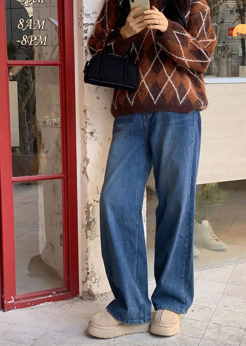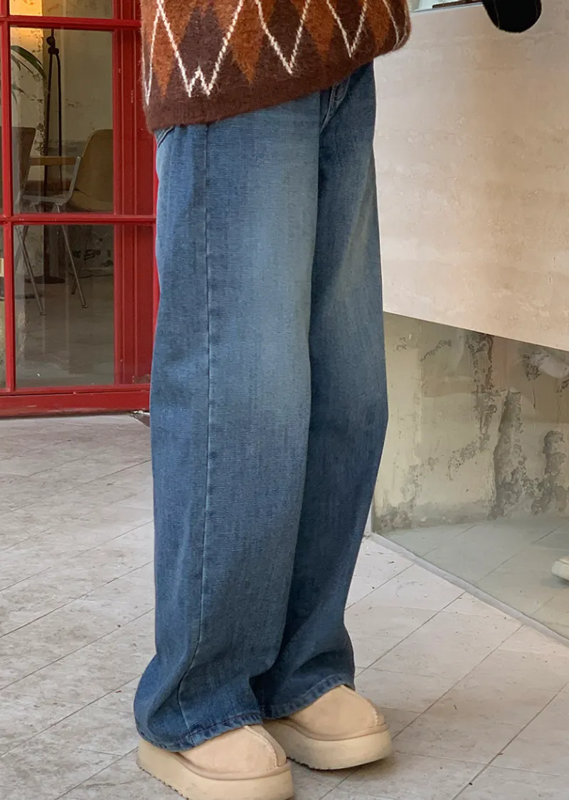 溫暖舒適休閒寬鬆版型百搭牛仔褲