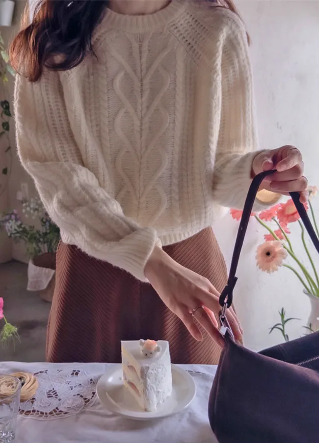 漂亮質感心形扭紋編織溫暖舒適針織上衣