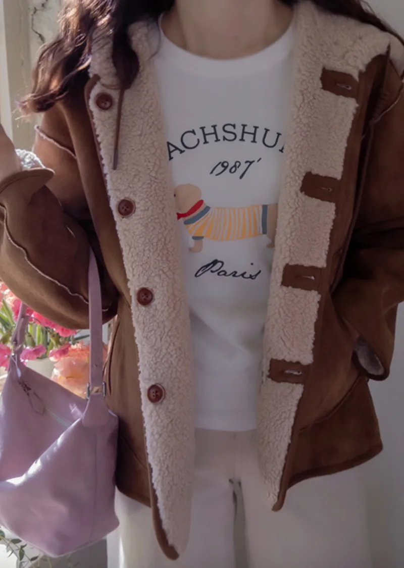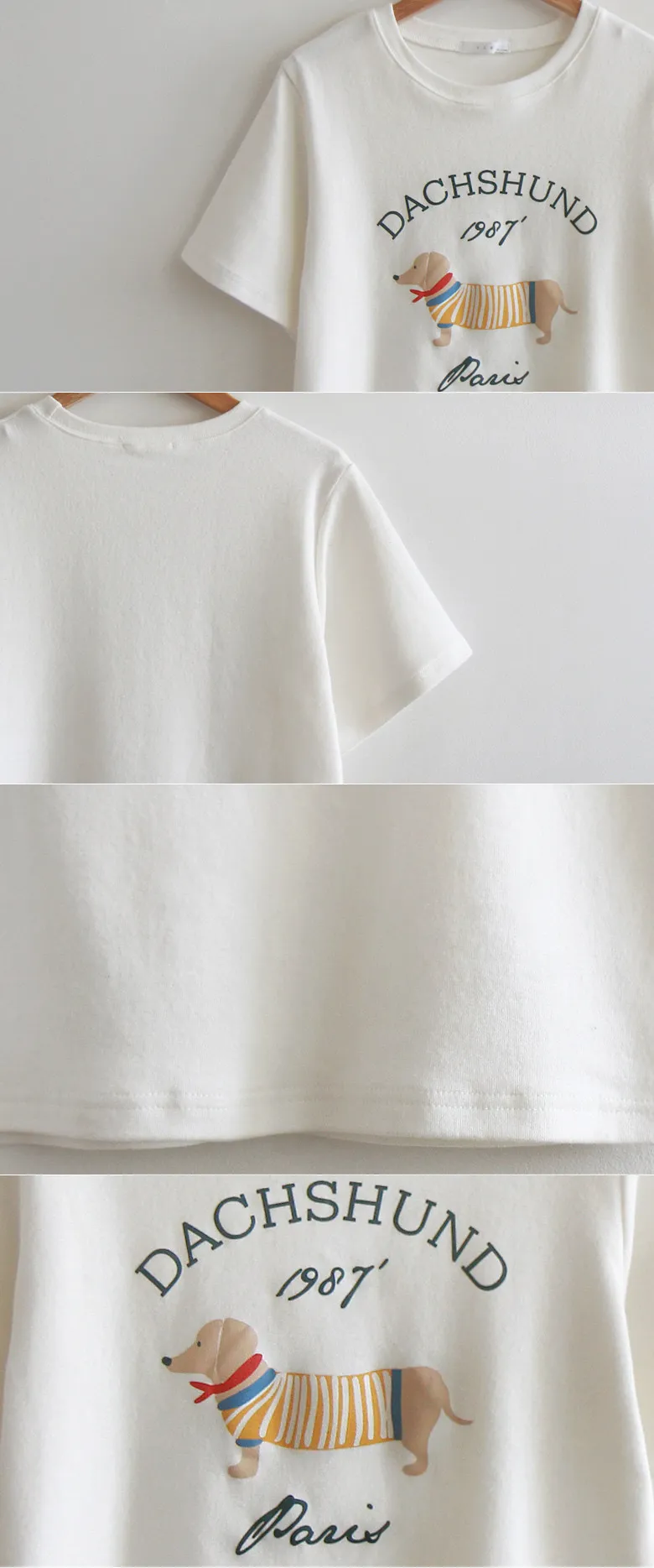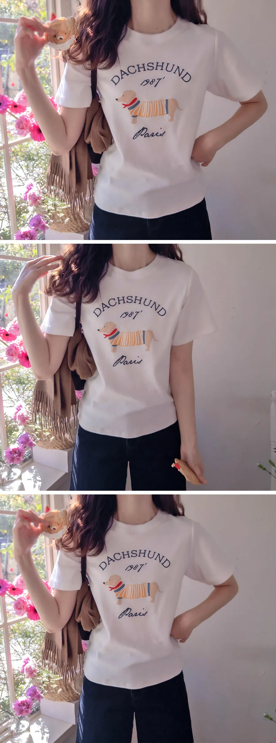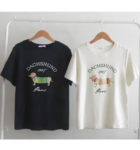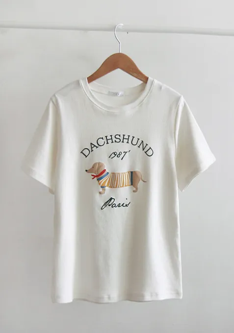 【秋冬短袖T卹】【柔軟舒適的桃絨布料】【字母印花與可愛的狗狗圖案,吸睛十足】【彈性好,布料厚實,是秋冬短袖T恤的理想之選】【推薦這款時尚短袖T卹,色彩應季,極具季節感】
