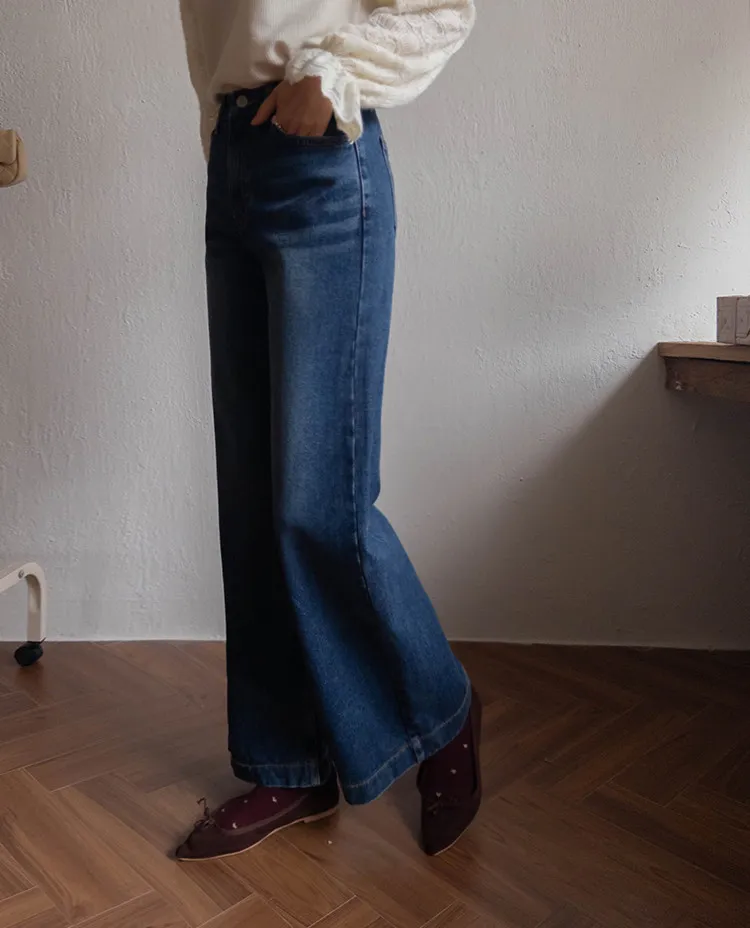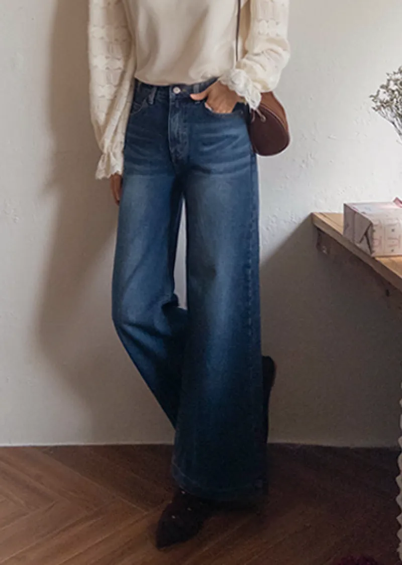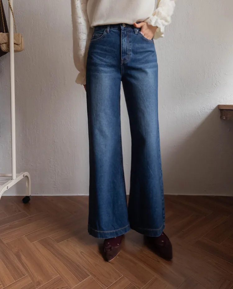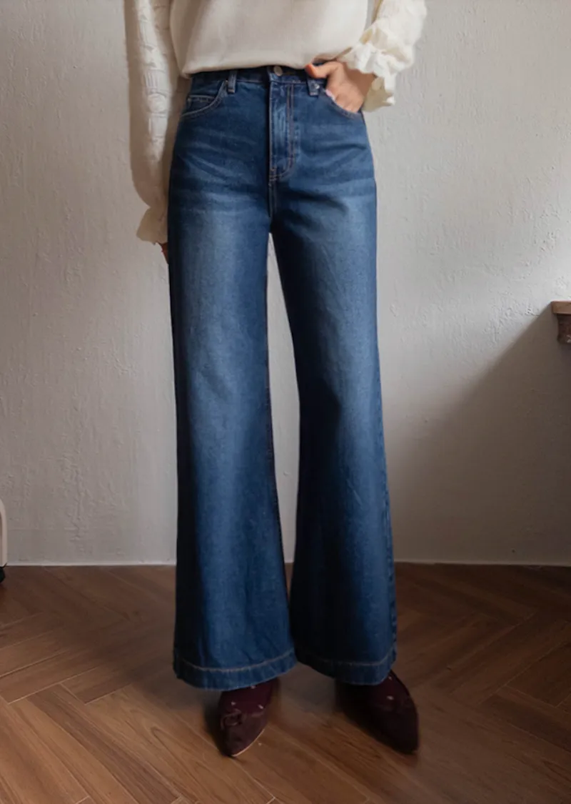 冬季溫暖流暢修身線條靴型剪裁牛仔褲