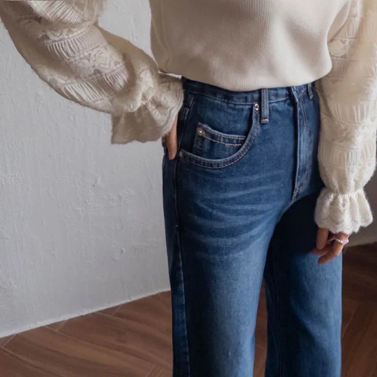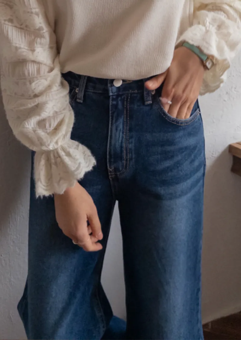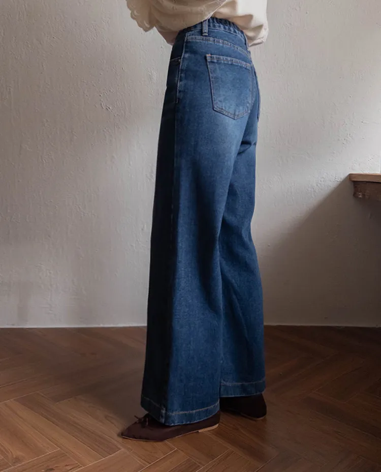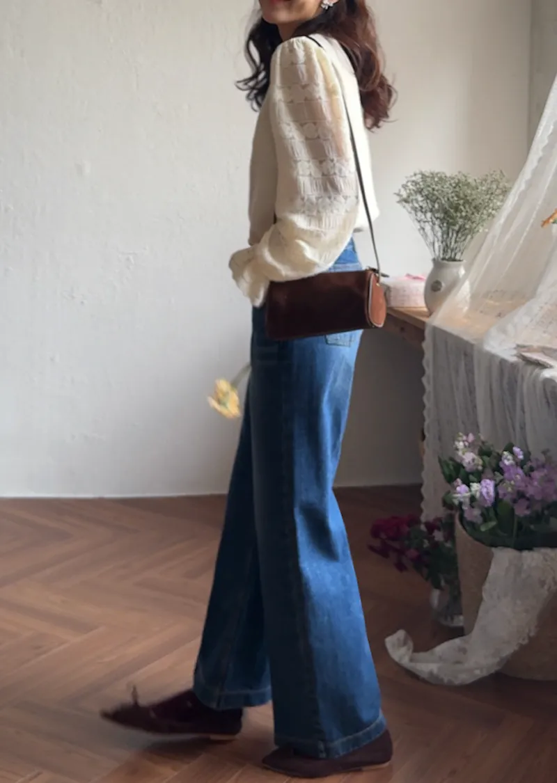 冬季溫暖流暢修身線條靴型剪裁牛仔褲