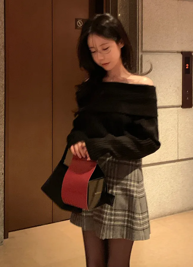 精緻優雅露肩柔和氣質羅紋針織上衣