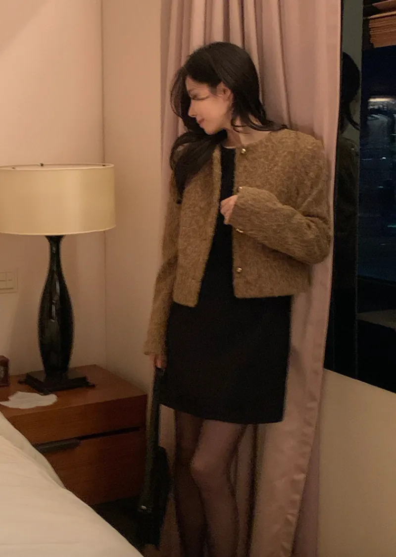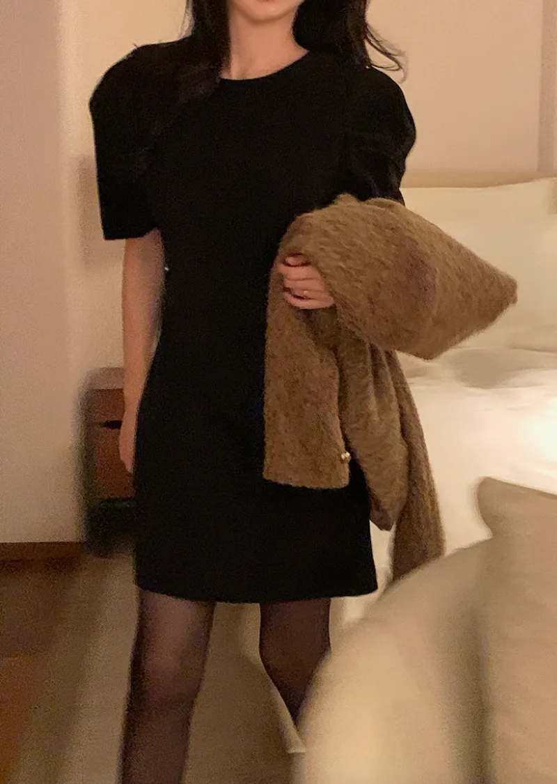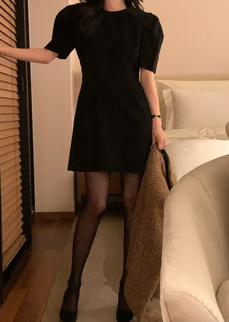 浪漫氣息收腰線條柔美身形絨質連身裙