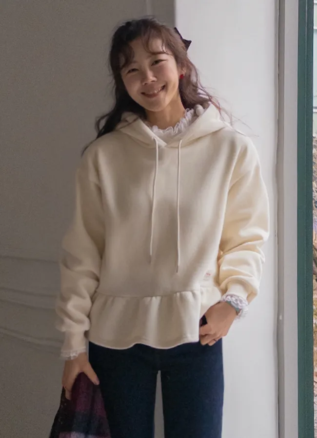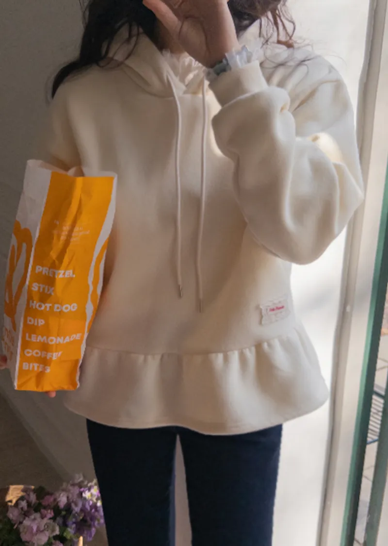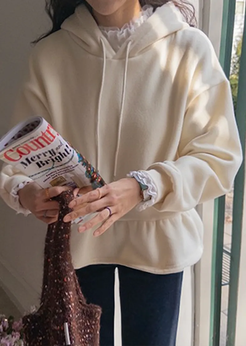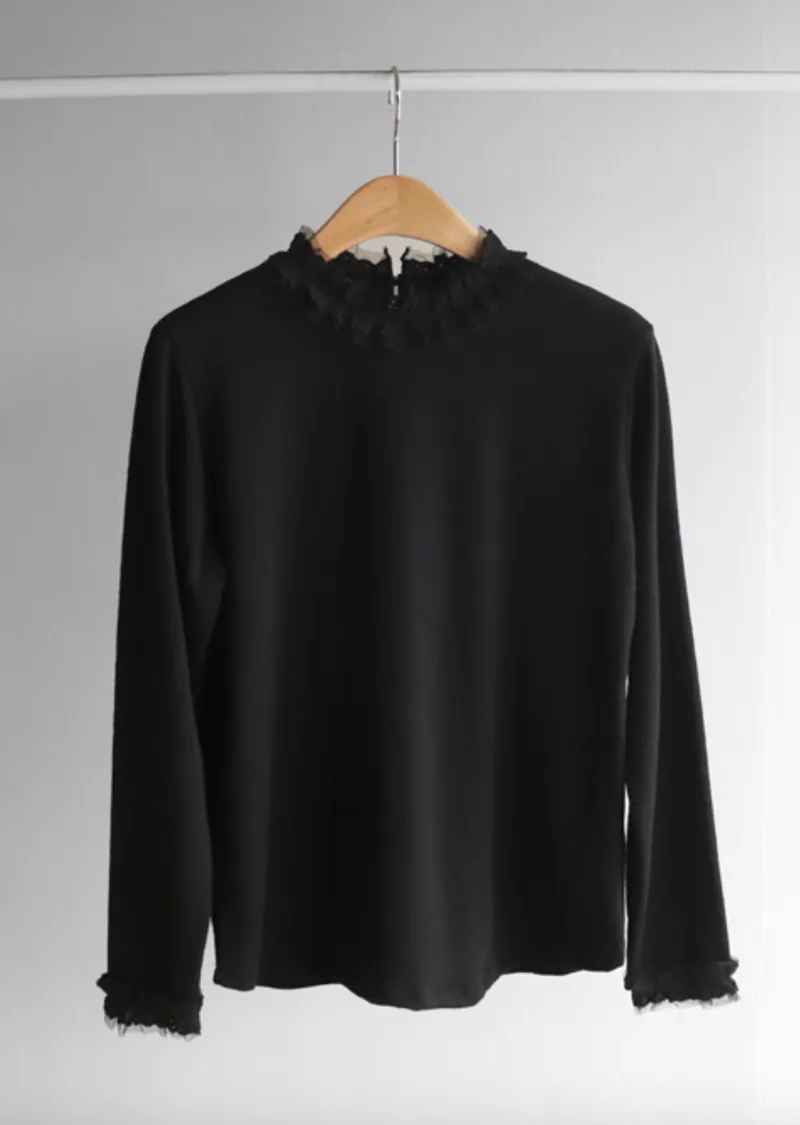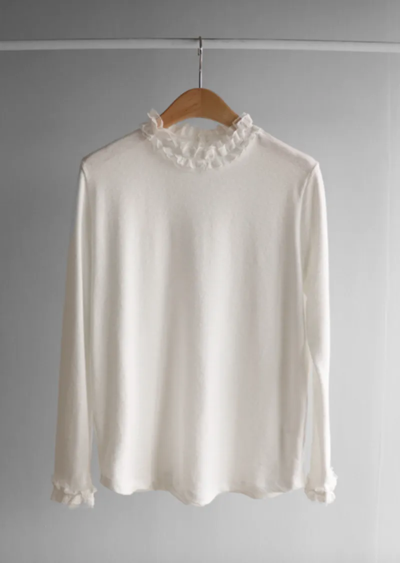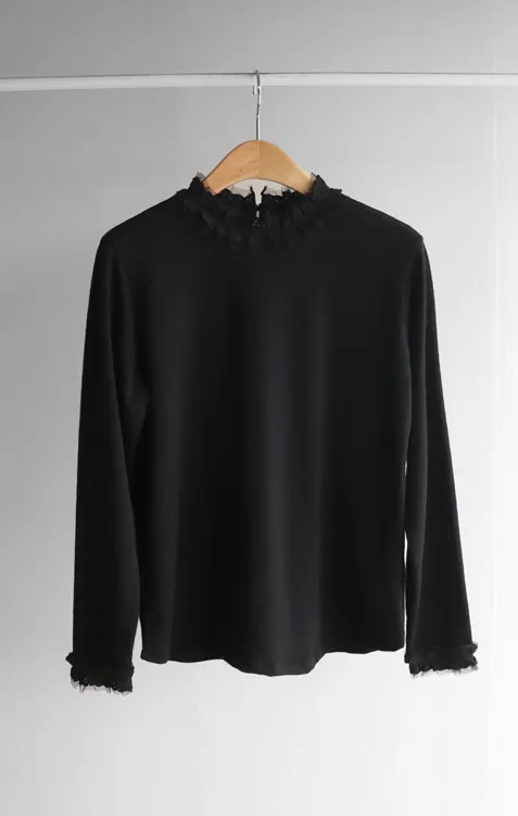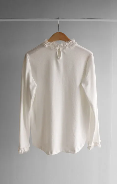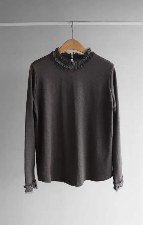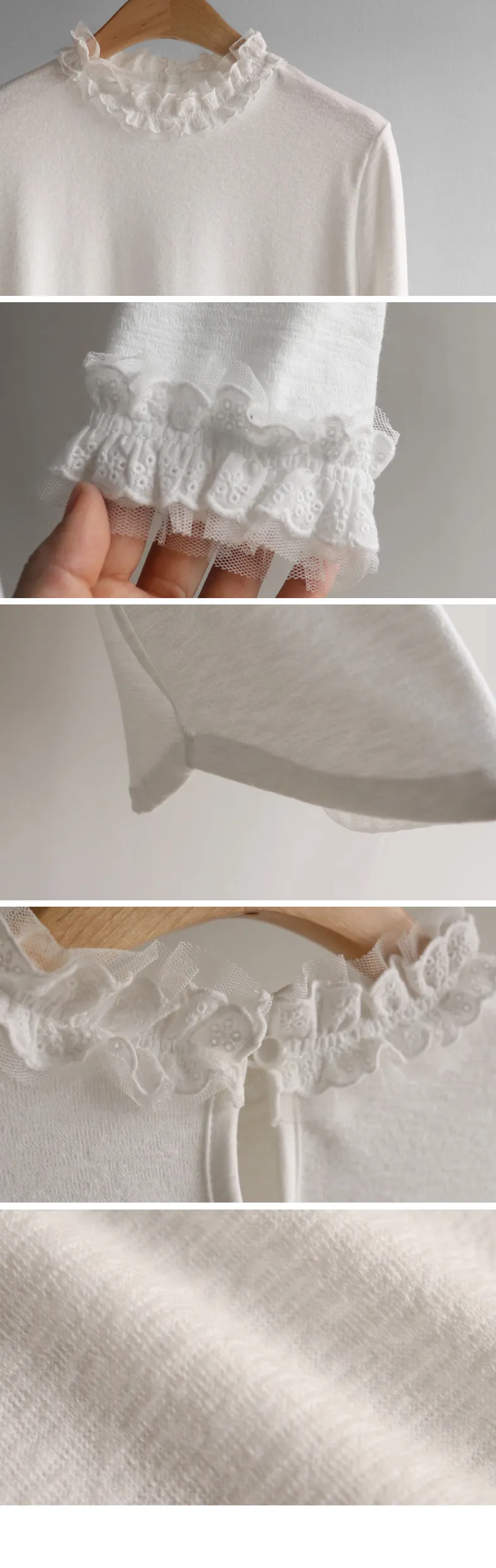 柔美領口袖末荷葉褶邊冬季疊穿舒適上衣