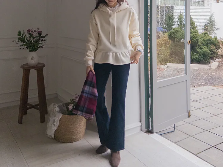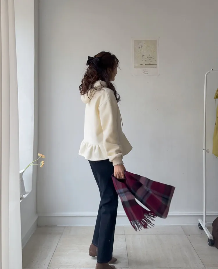 【柔軟棉質布料,日常穿著舒適♡】【領口和袖口飾有荷葉邊,展現甜美女性氣質💕】【非常適合作為內搭】【冬季必備單品,為您的穿搭增添時尚感♥】