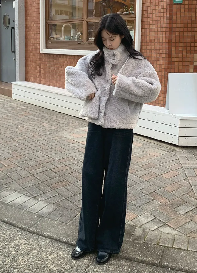 冬季溫暖寬鬆舒適百搭深色牛仔褲