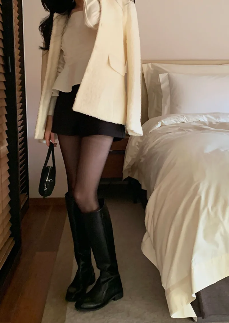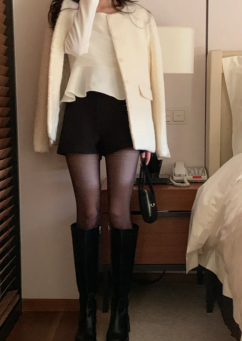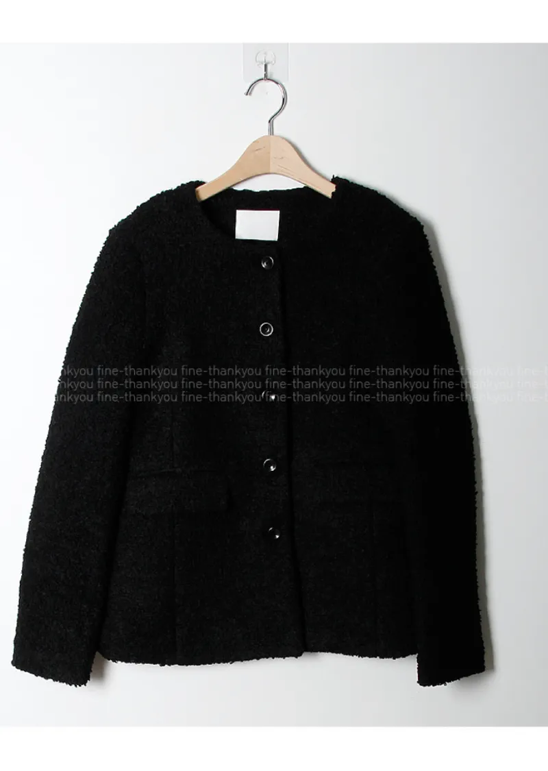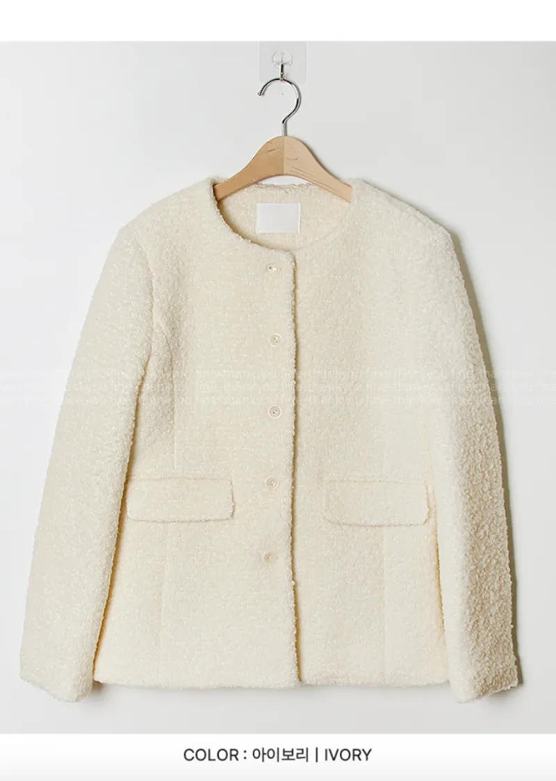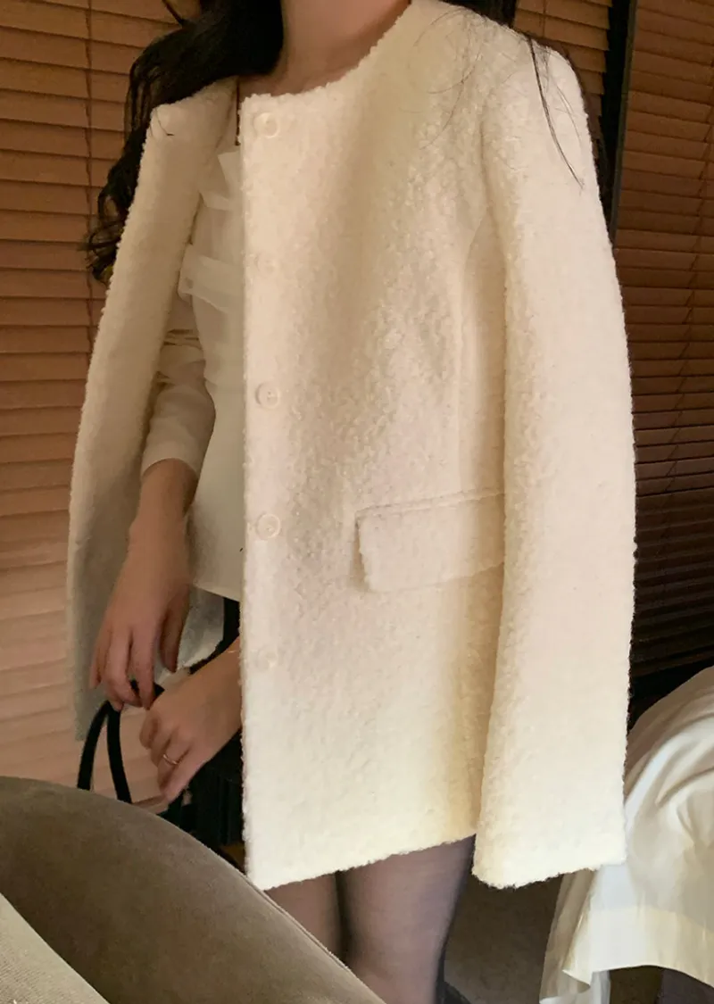 精緻優雅羊毛混紡圓領百搭外套