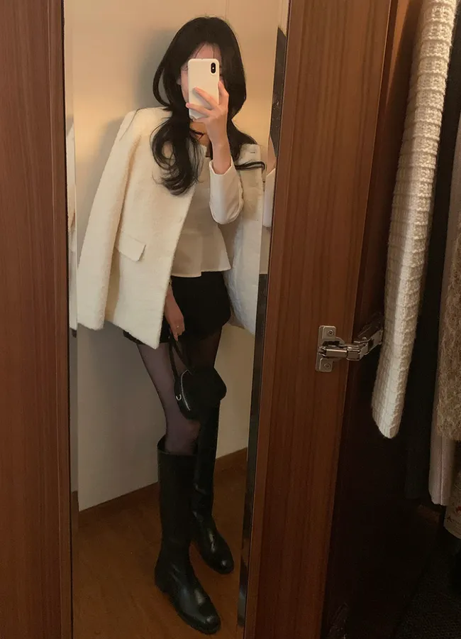 精緻優雅羊毛混紡圓領百搭外套