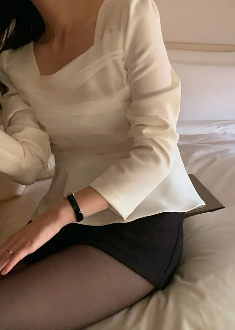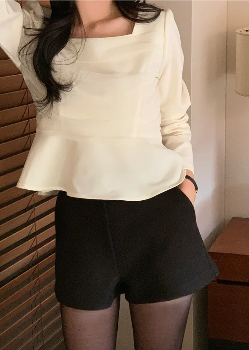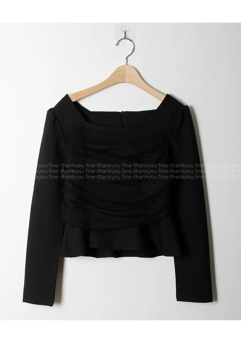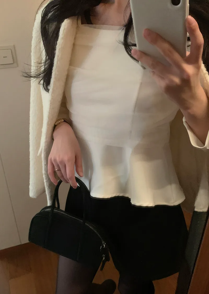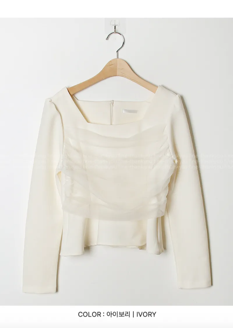 柔美身形胸前層疊褶皺紗收腰散擺下擺上衣