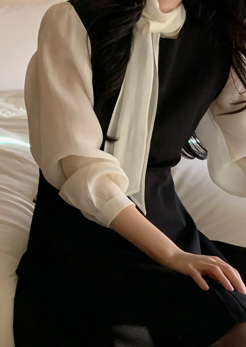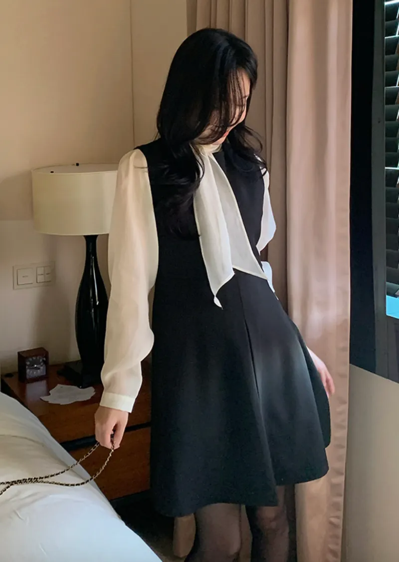 也可以將絲帶繞頸,拉到前面兩種綁帶使用,輕鬆打造兩種不同的甜美可愛的造型