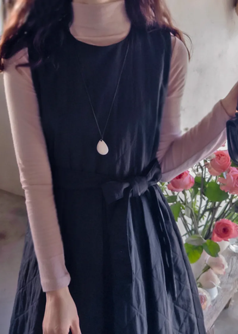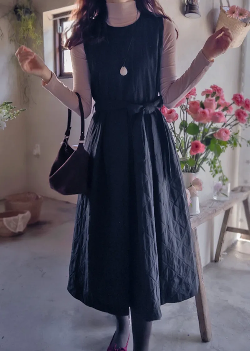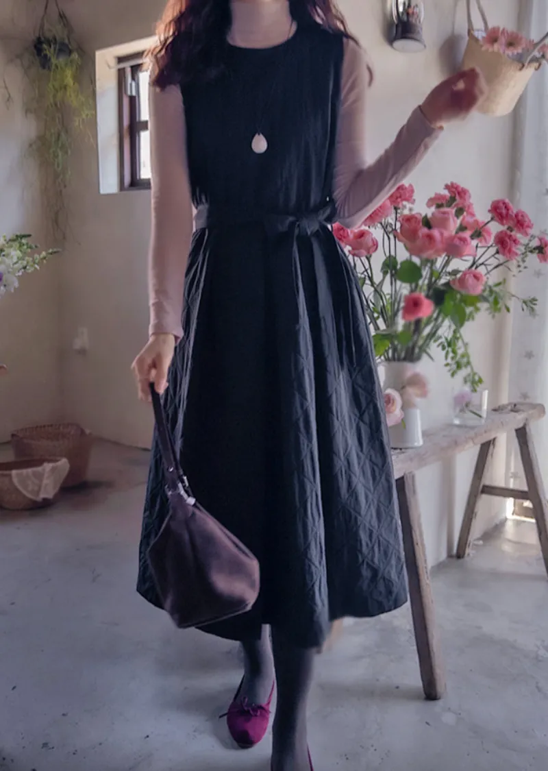 冬季浪漫腰部繫帶修身絎縫連身裙