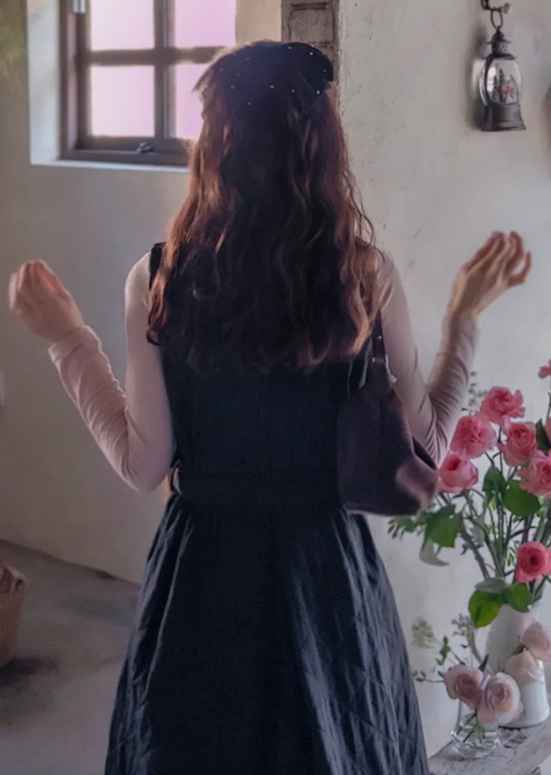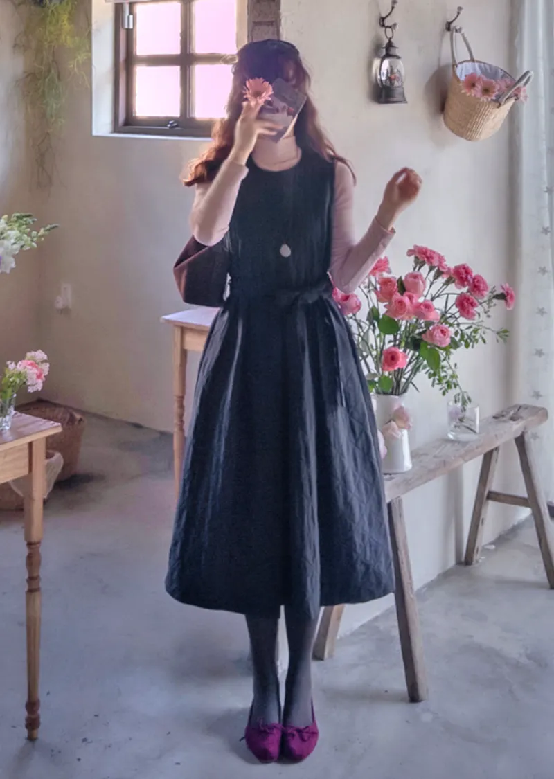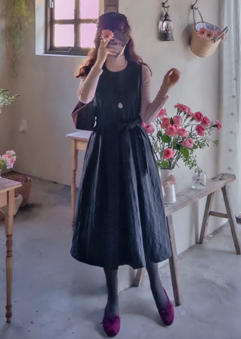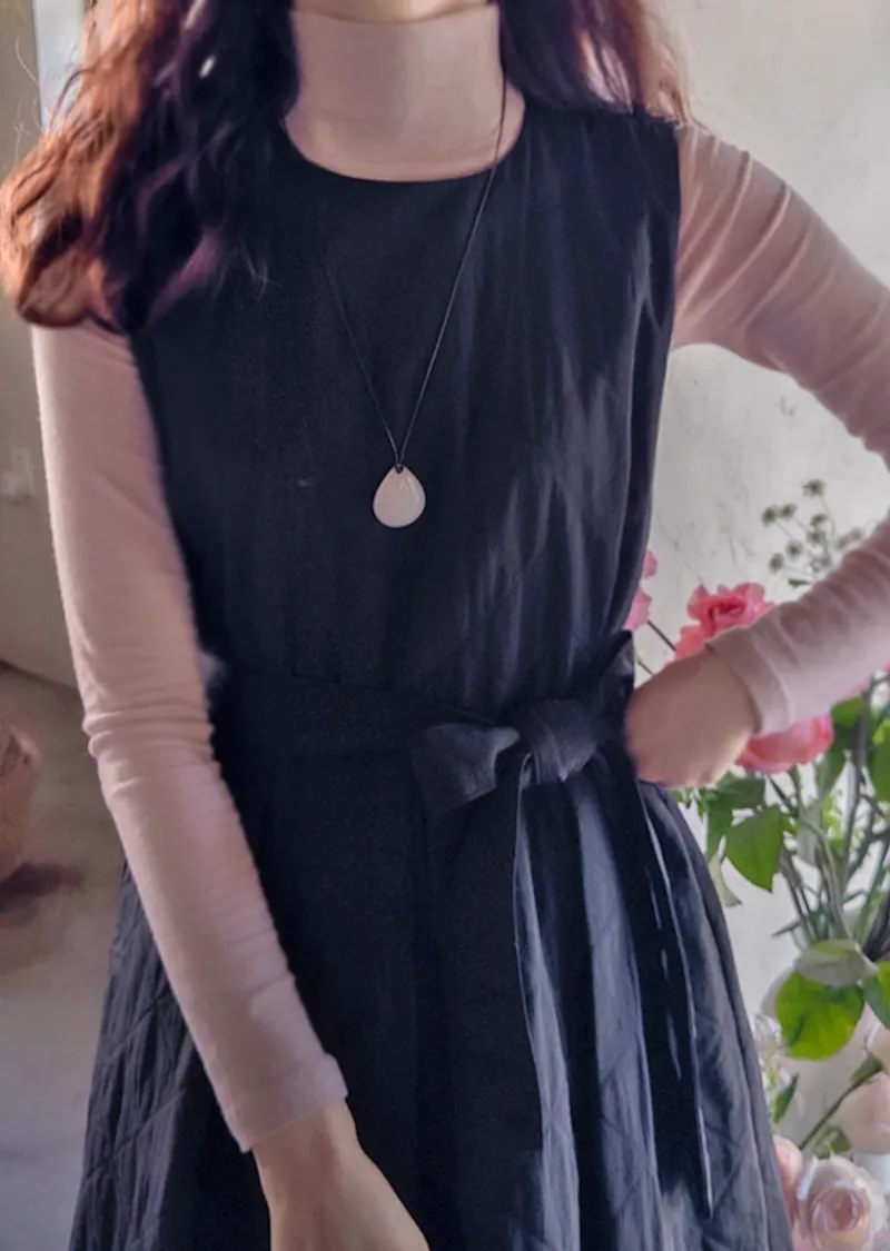 冬季浪漫腰部繫帶修身絎縫連身裙