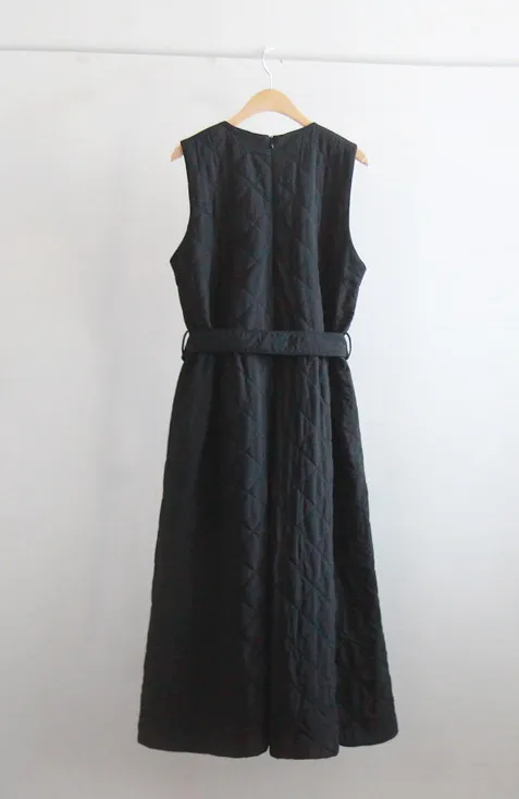 【腰綁帶:可拆】【後拉鍊】【填充物:2盎司壓縮絎縫棉】【精緻絎縫連身裙】【絎縫棉填充,保暖舒適】【線條流暢,腰部繫帶設計更顯時尚合身】【冬季時尚絎縫連身裙】
