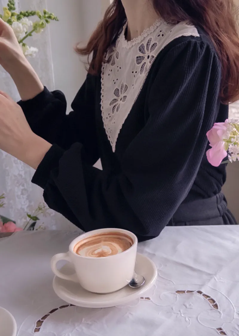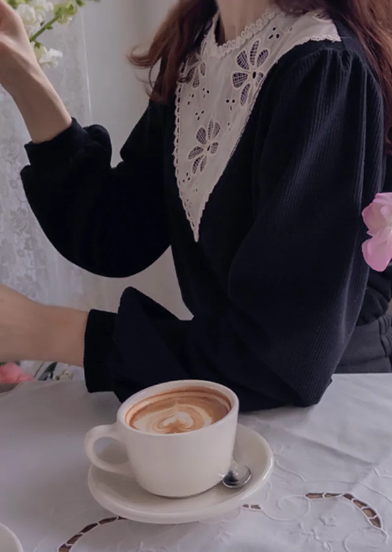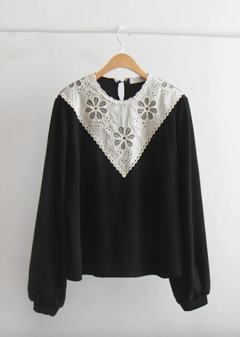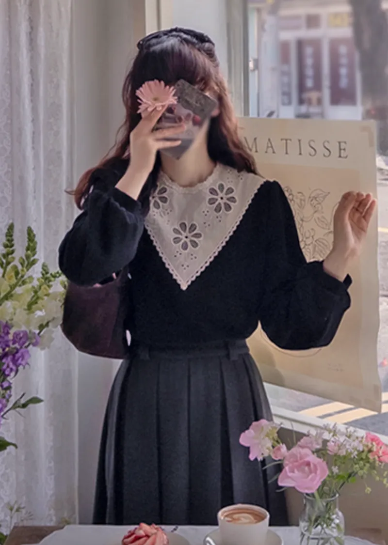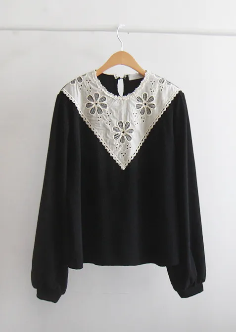 優雅領口花朵刺繡柔軟燈芯絨上衣