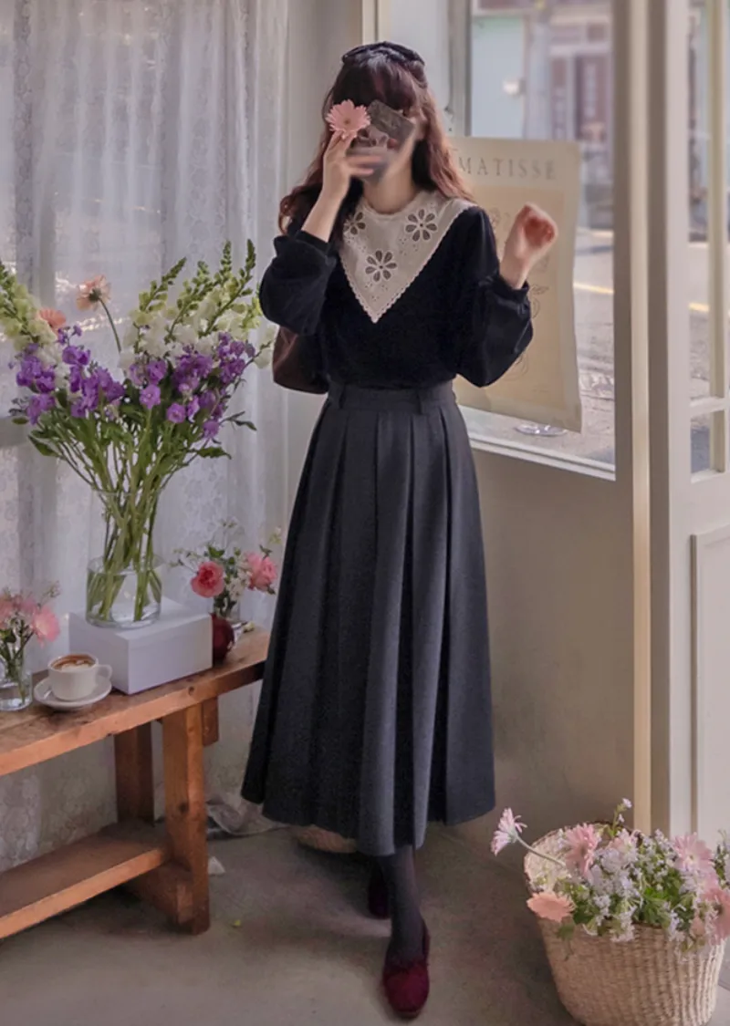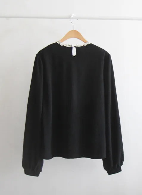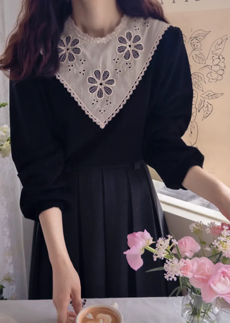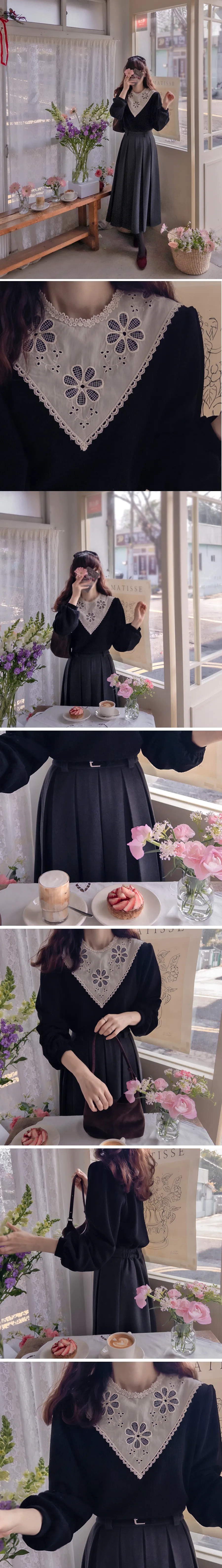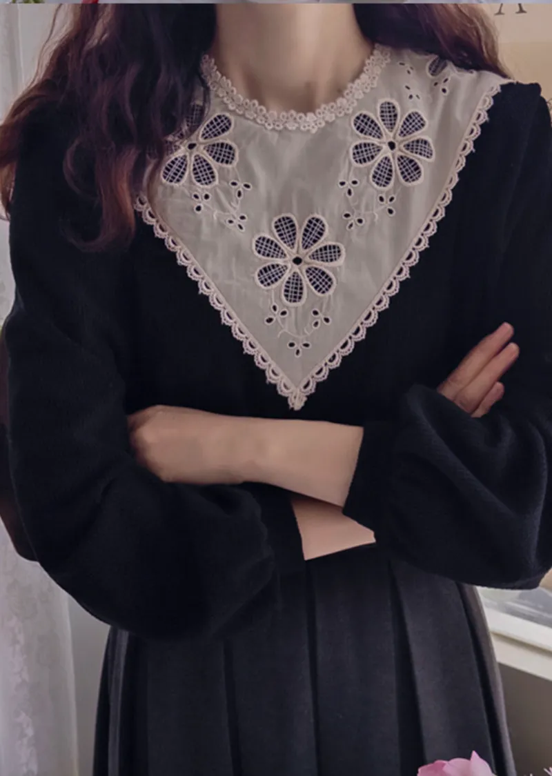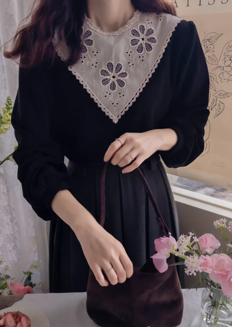 優雅領口花朵刺繡柔軟燈芯絨上衣