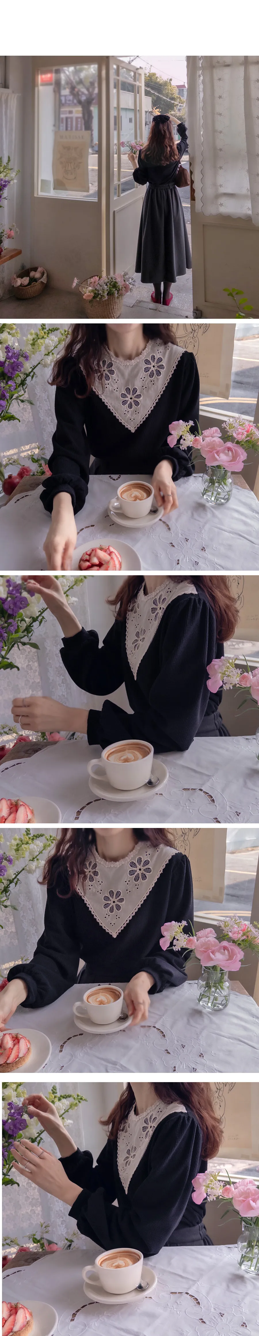 【柔軟燈芯絨上衣】【領口下方的花朵刺繡增添精緻感】【抓絨上衣穿著舒適保暖】【優雅時尚燈芯絨上衣非常適合即將到來的季節】