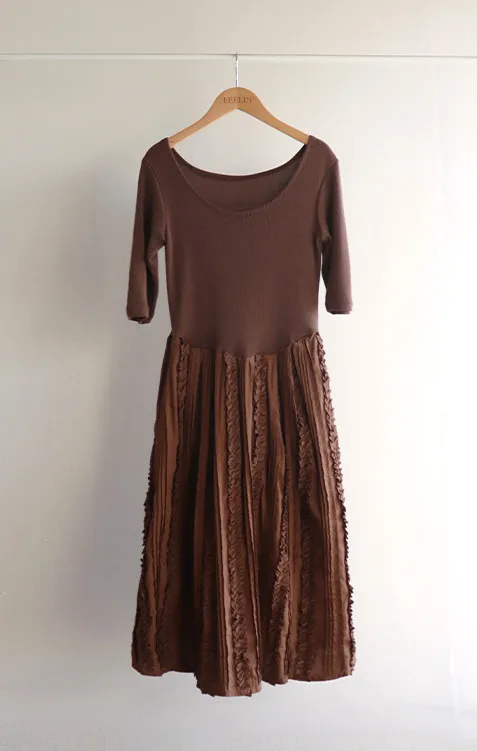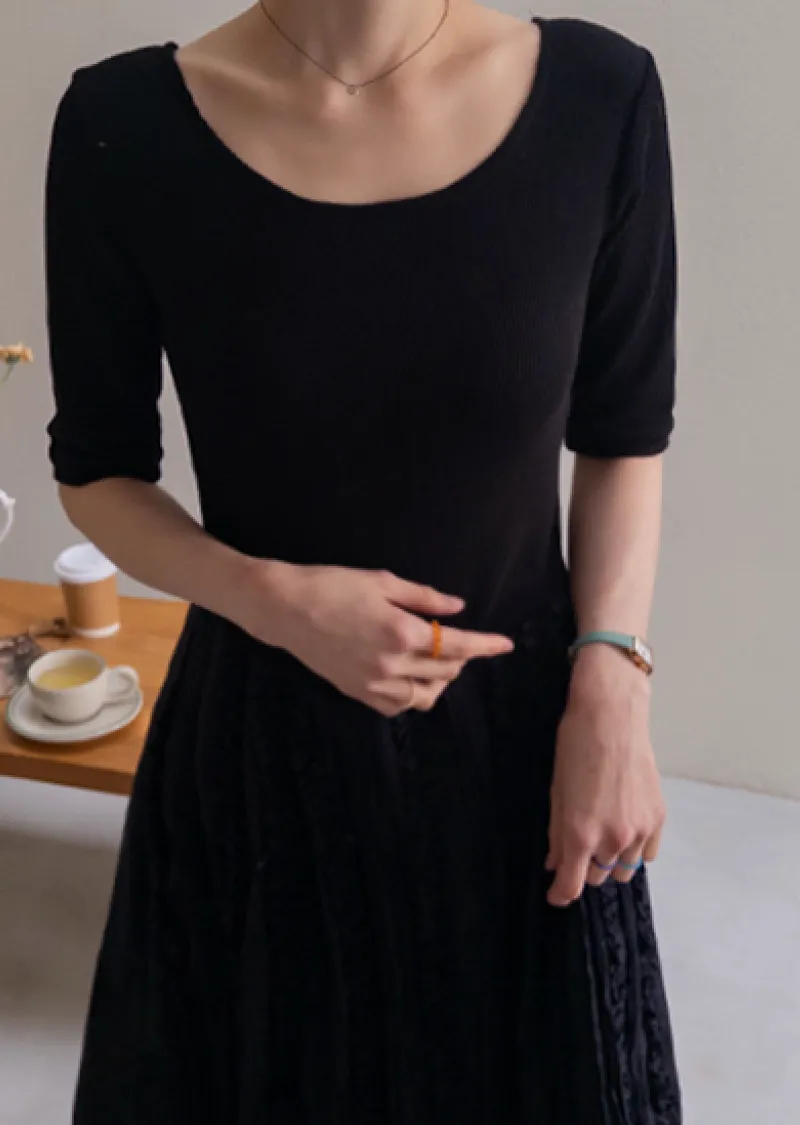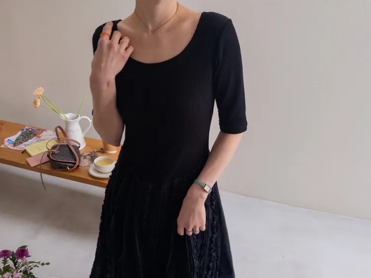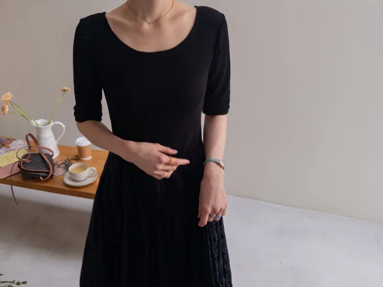 【短袖設計,更顯瘦身~】【蕾絲細節豐富的裙子💕】【長款設計,保暖又時尚】【一年四季皆可疊穿的連身裙】