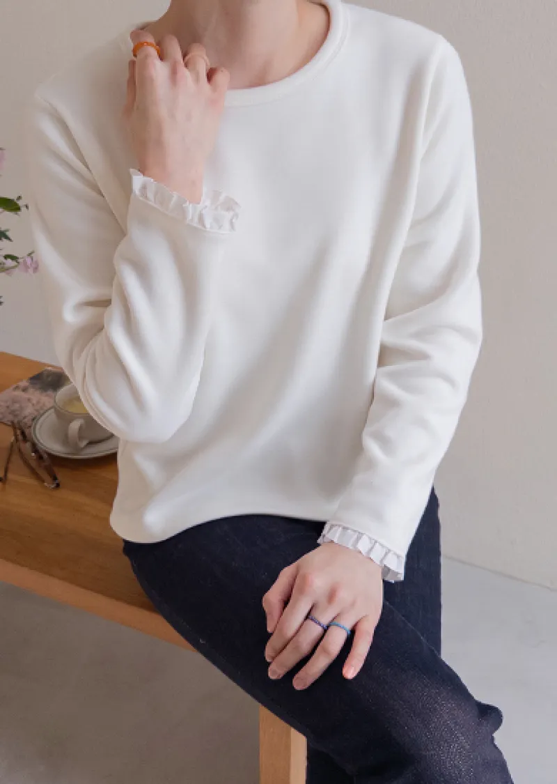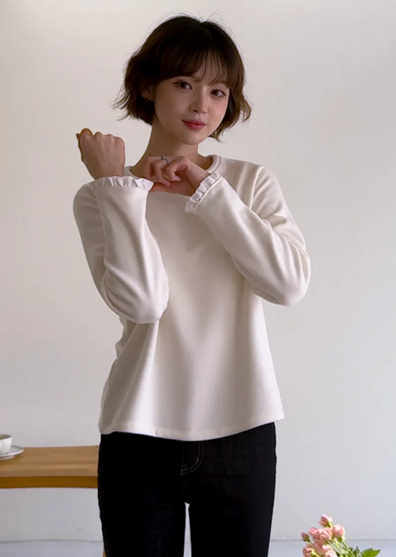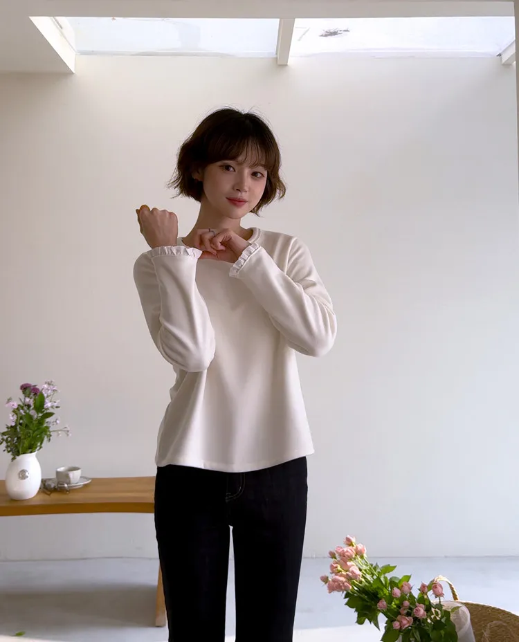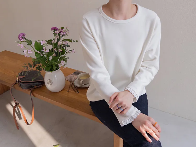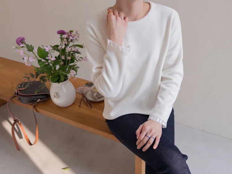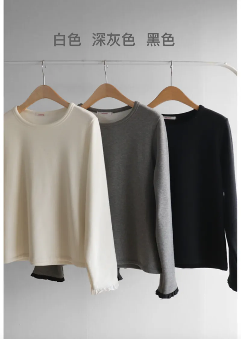 點綴袖末摺邊內襯溫暖舒適柔軟彈性穿搭上衣