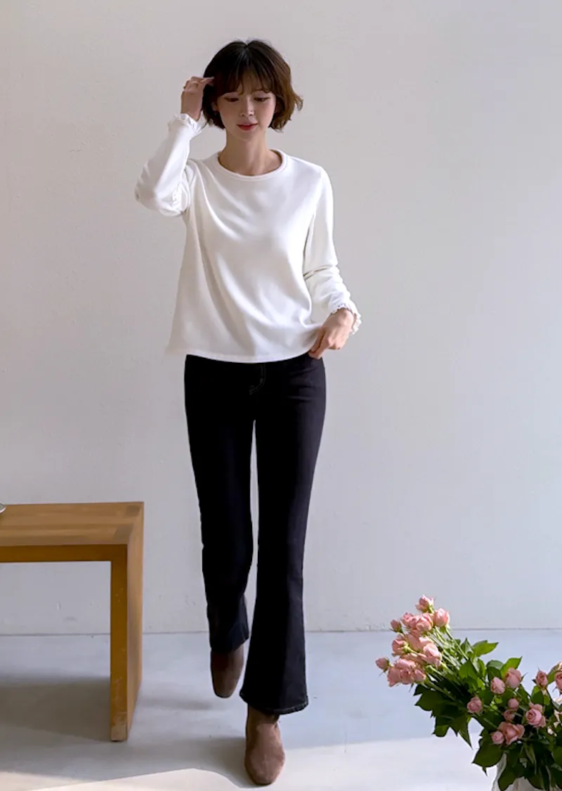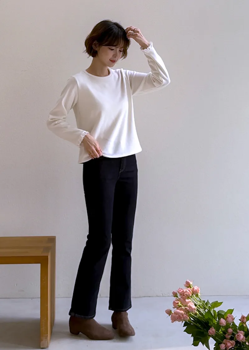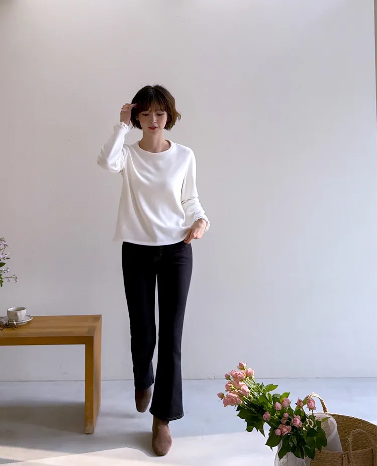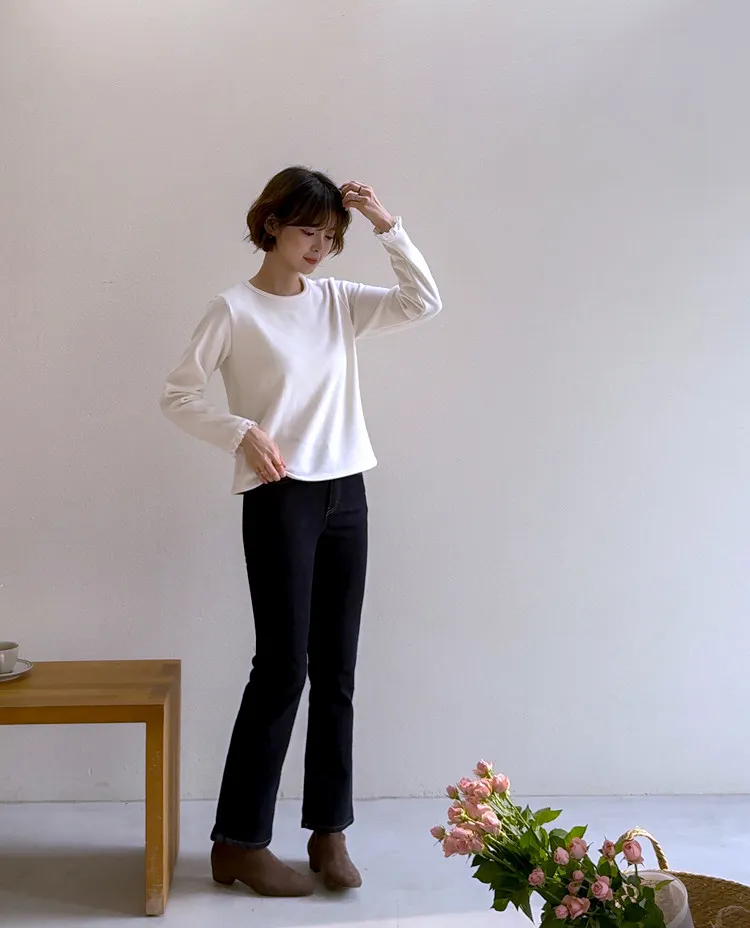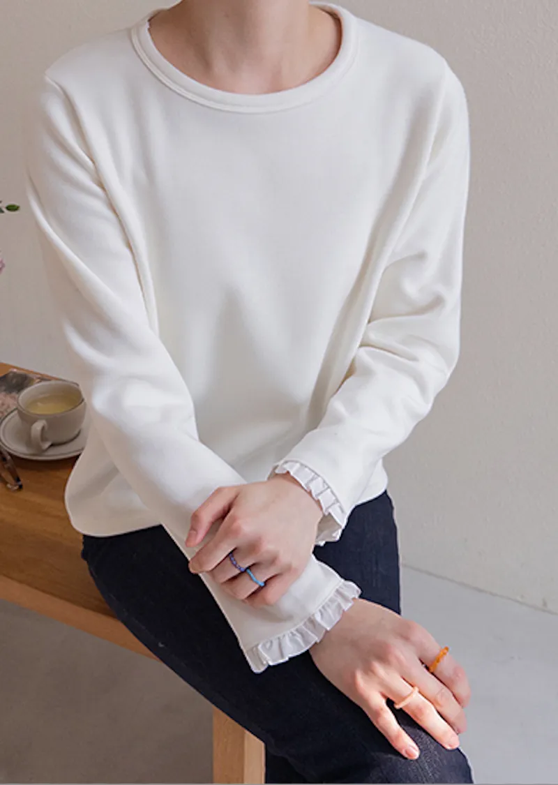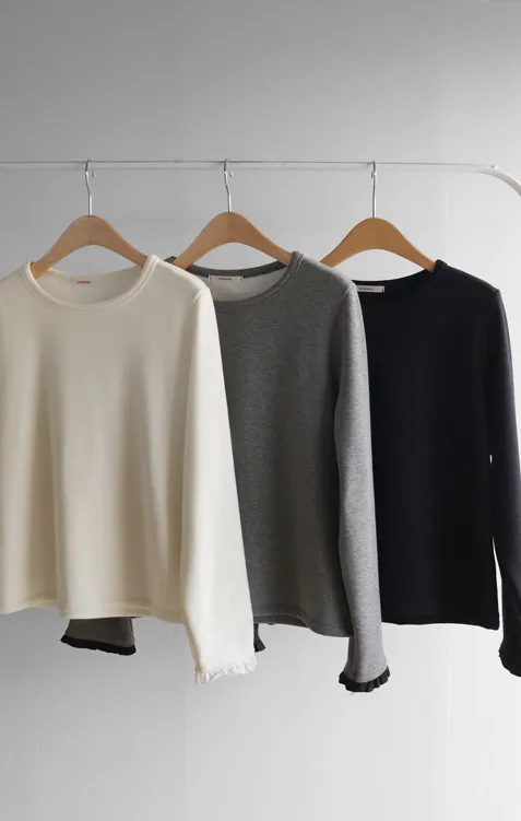 點綴袖末摺邊內襯溫暖舒適柔軟彈性穿搭上衣