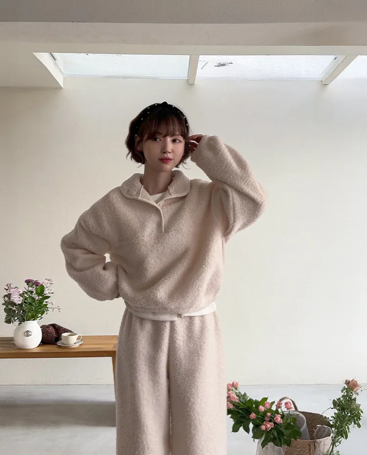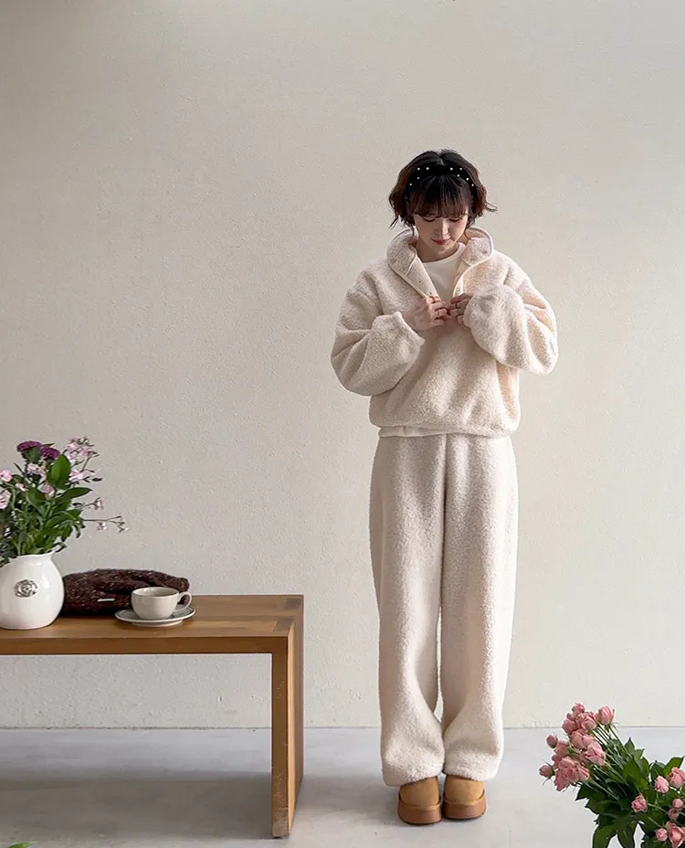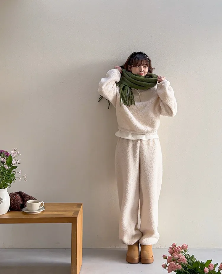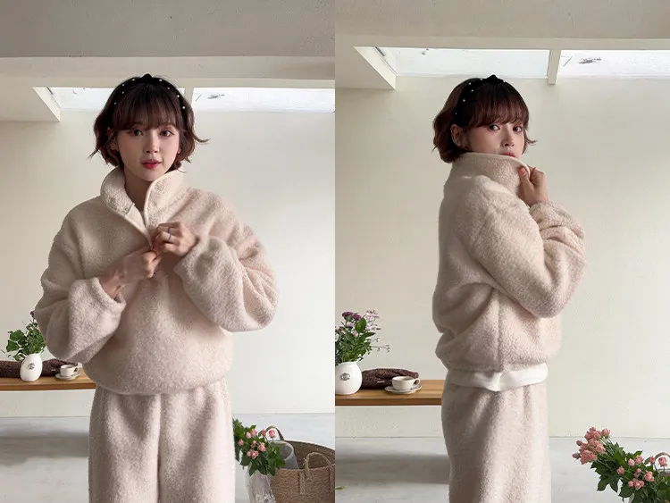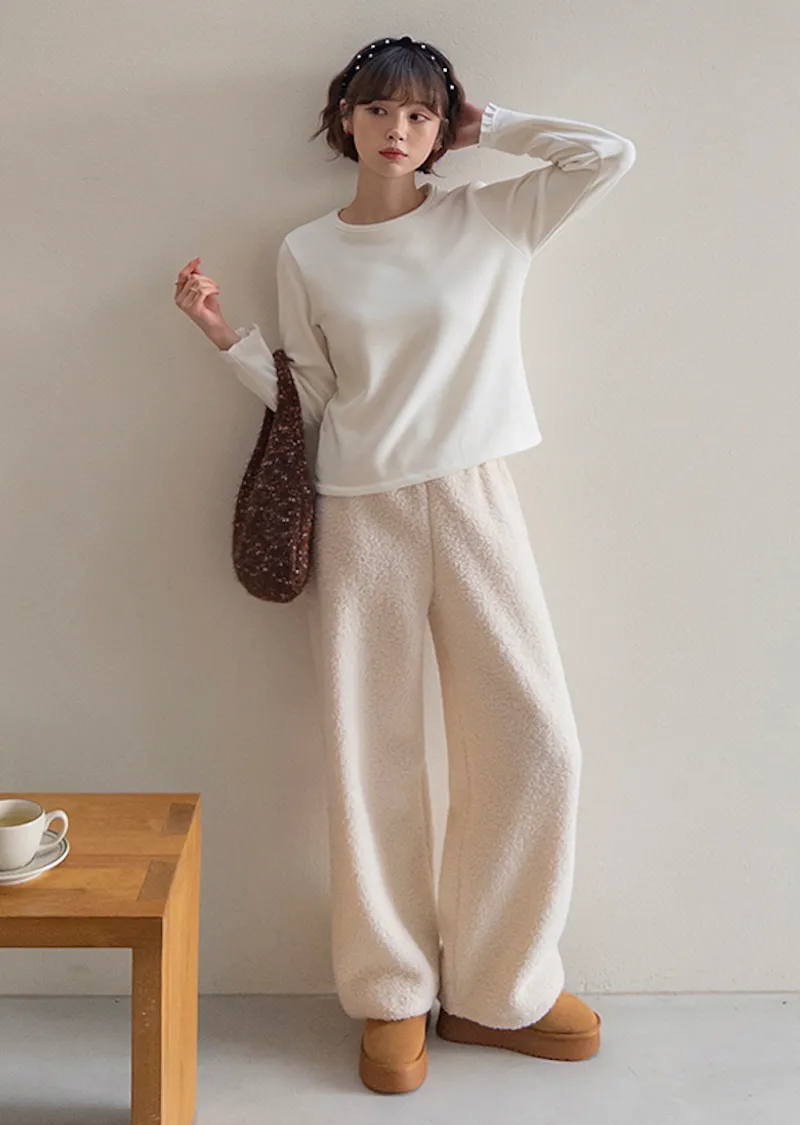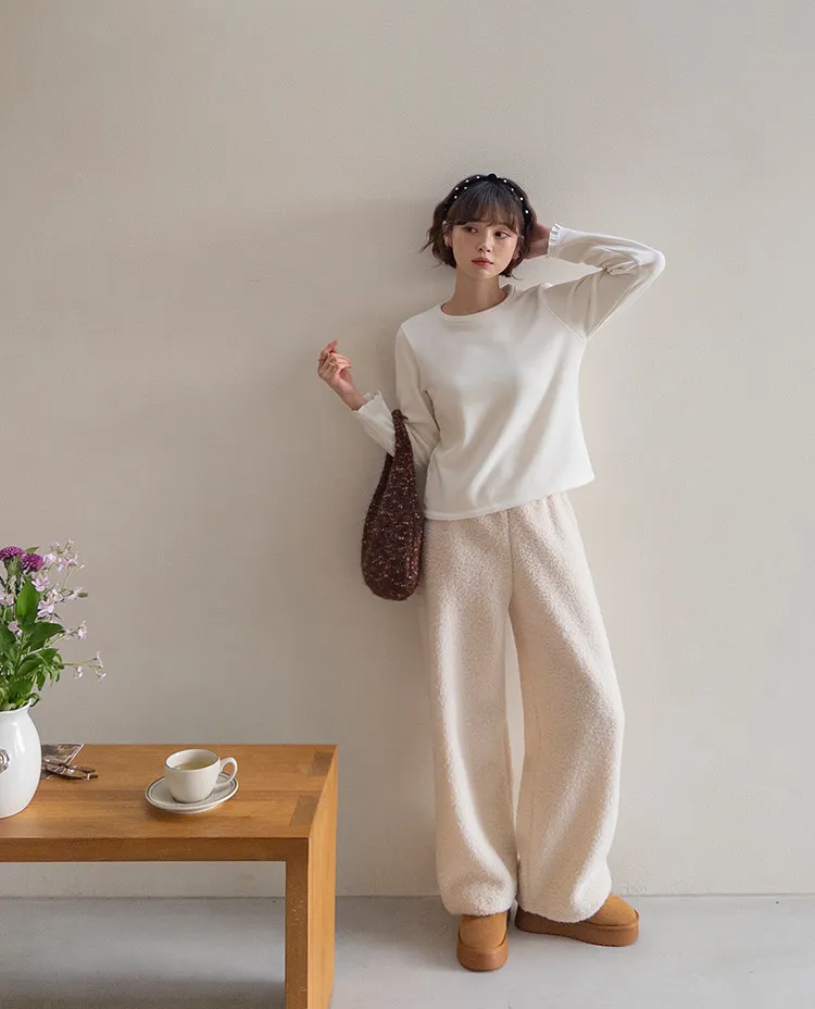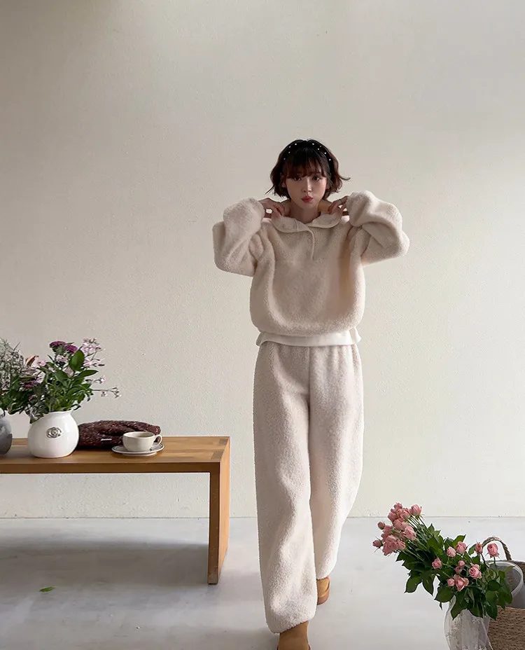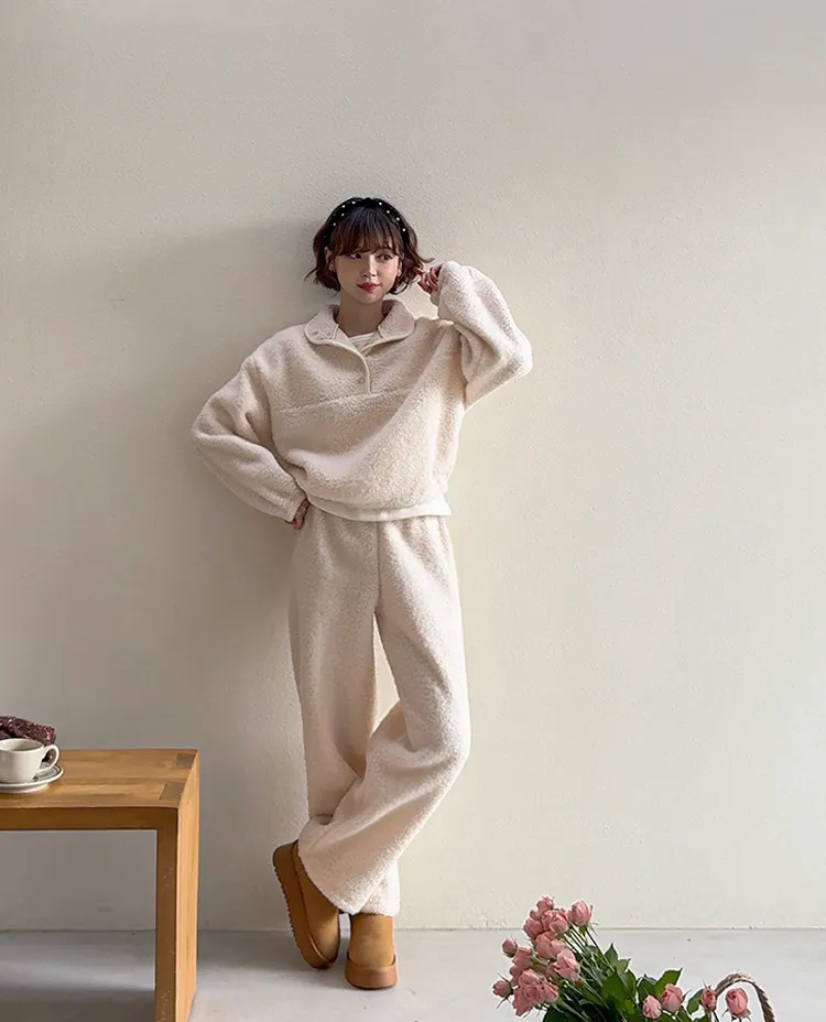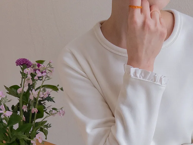 【柔軟舒適的100%純棉】【貂絨內襯,即使在寒冬也能感受溫暖♥】【彈性超強,如奶酪般柔軟】【可愛的袖口飾有荷葉邊💕】