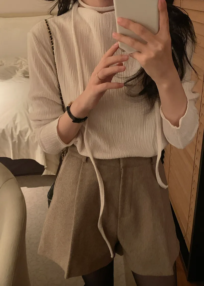 優雅氣質的上衣,採用天鵝絨面料製成!