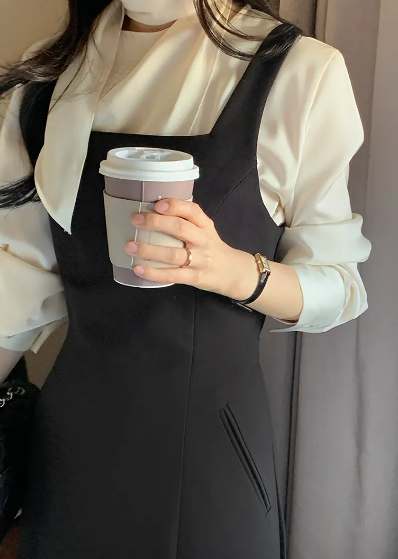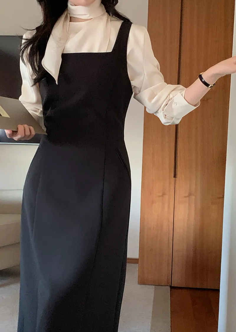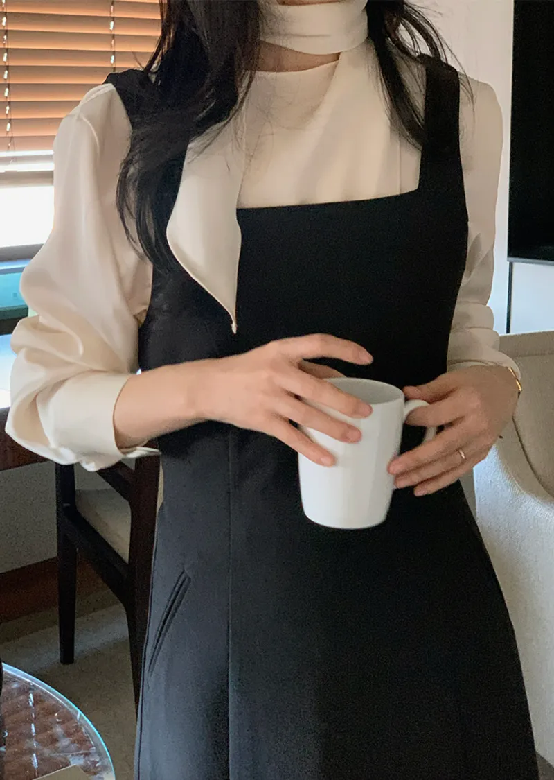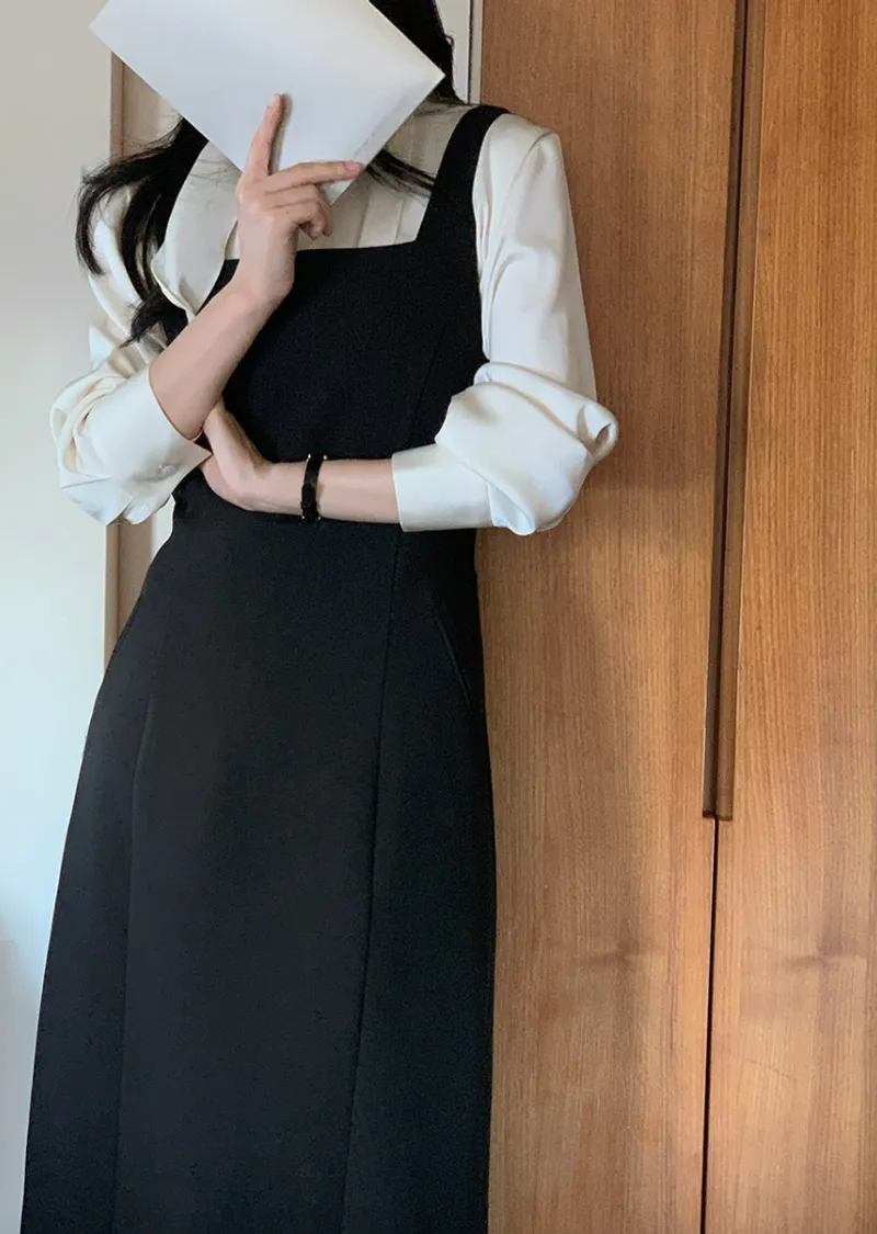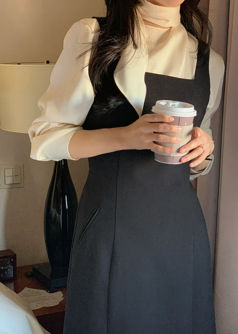 適合疊穿的優雅連身裙 !採用寬鬆的方領設計,