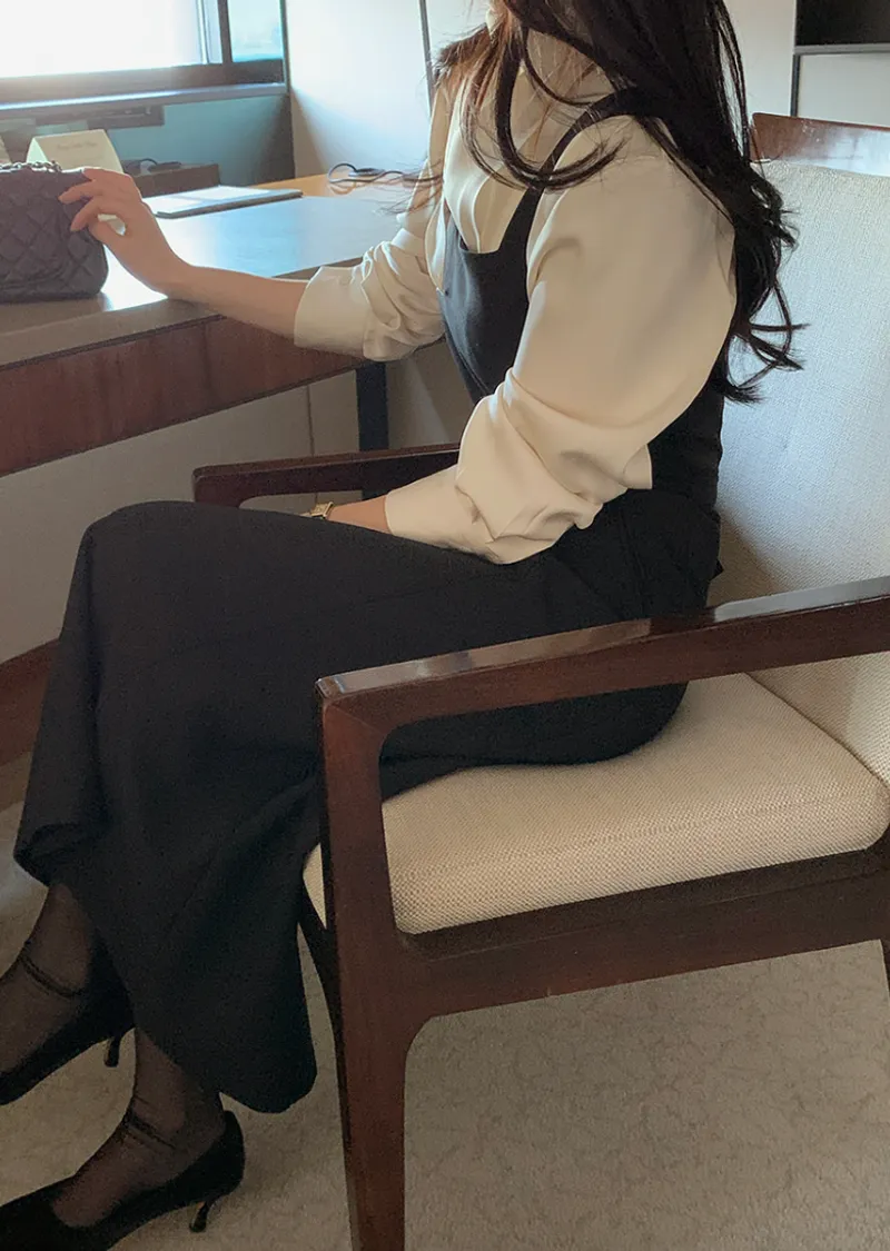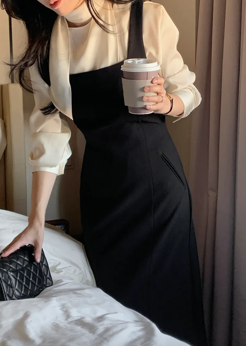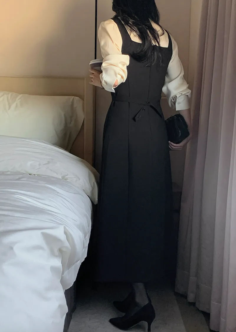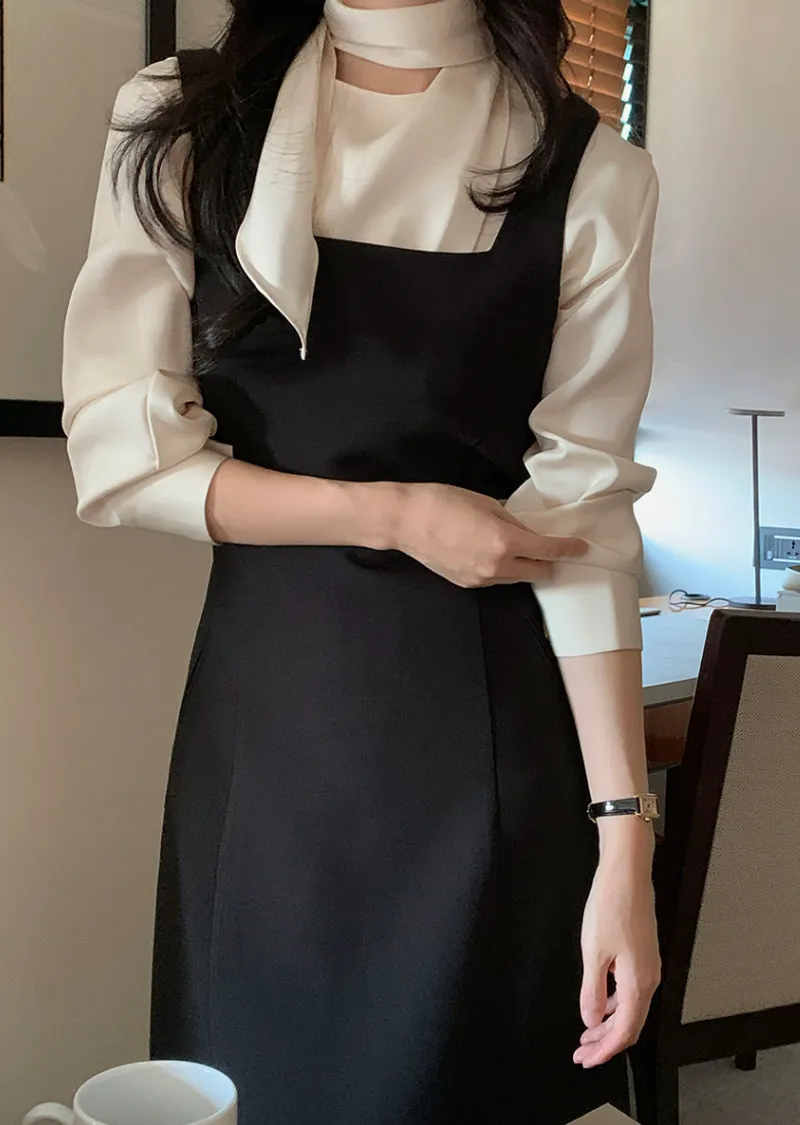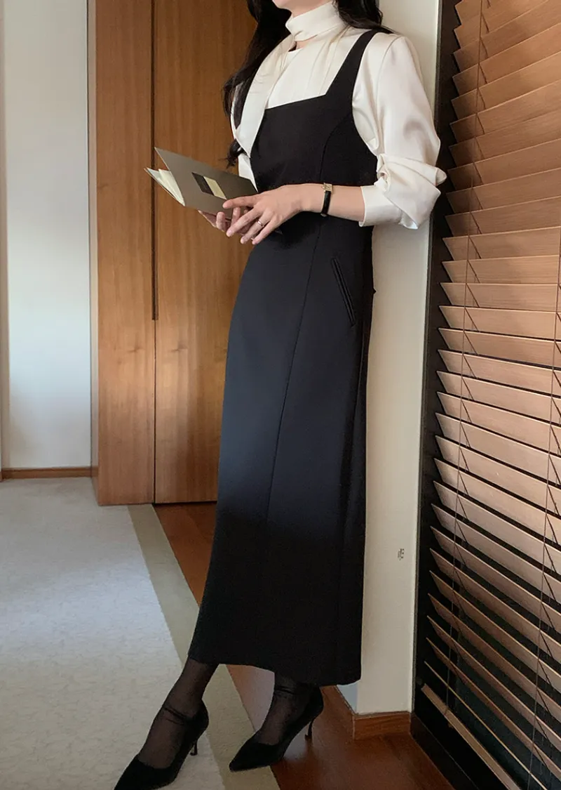 適合疊穿的優雅連身裙 !採用寬鬆的方領設計,