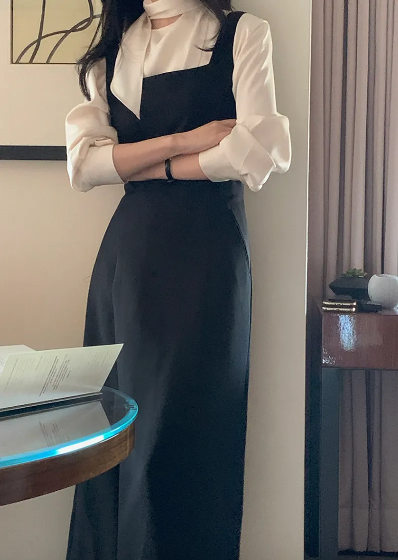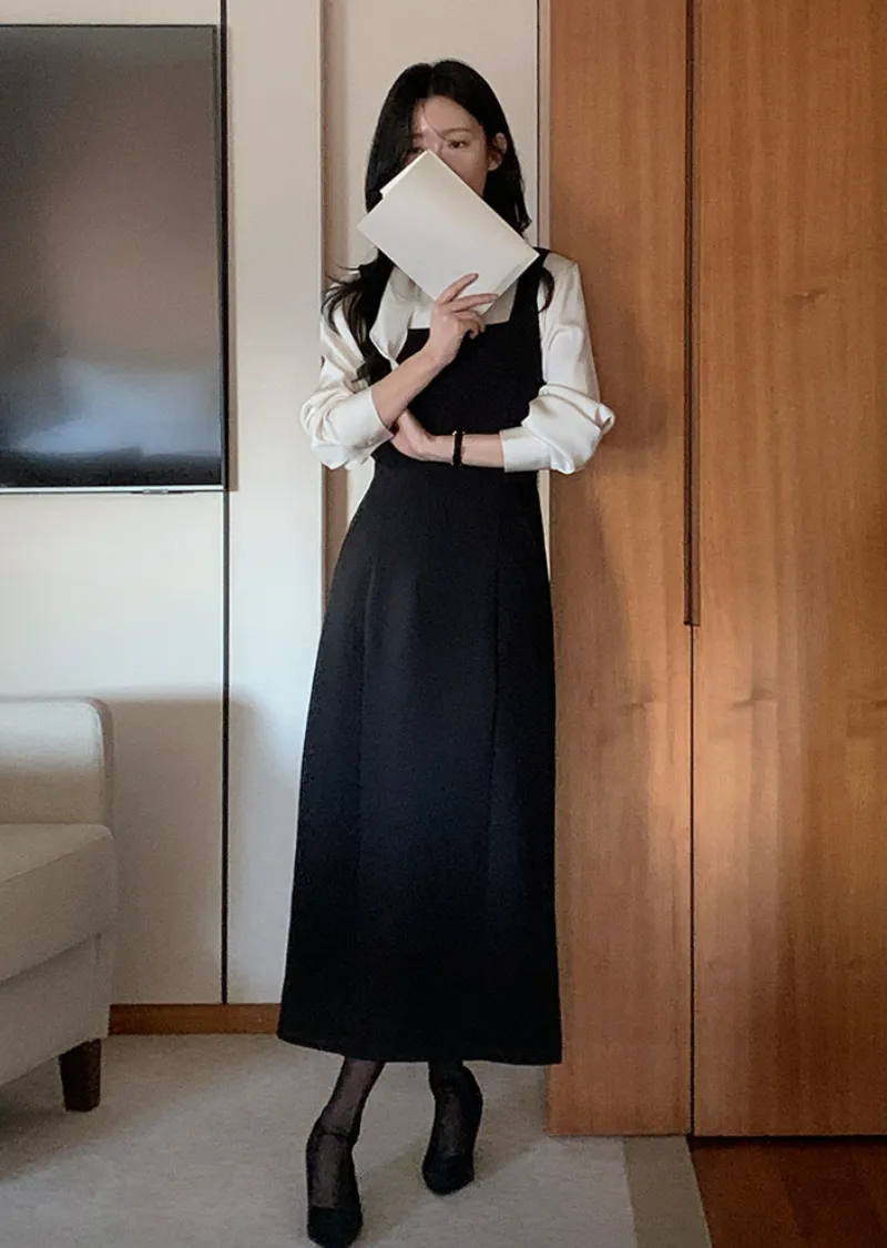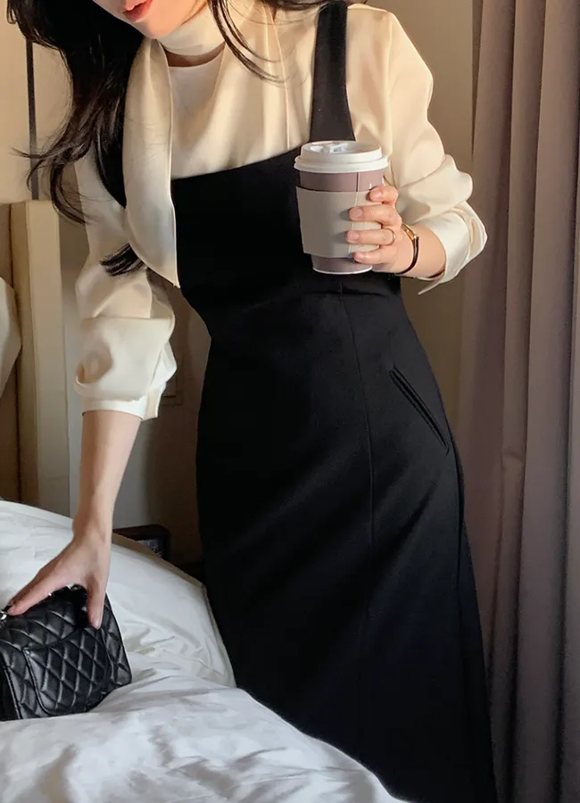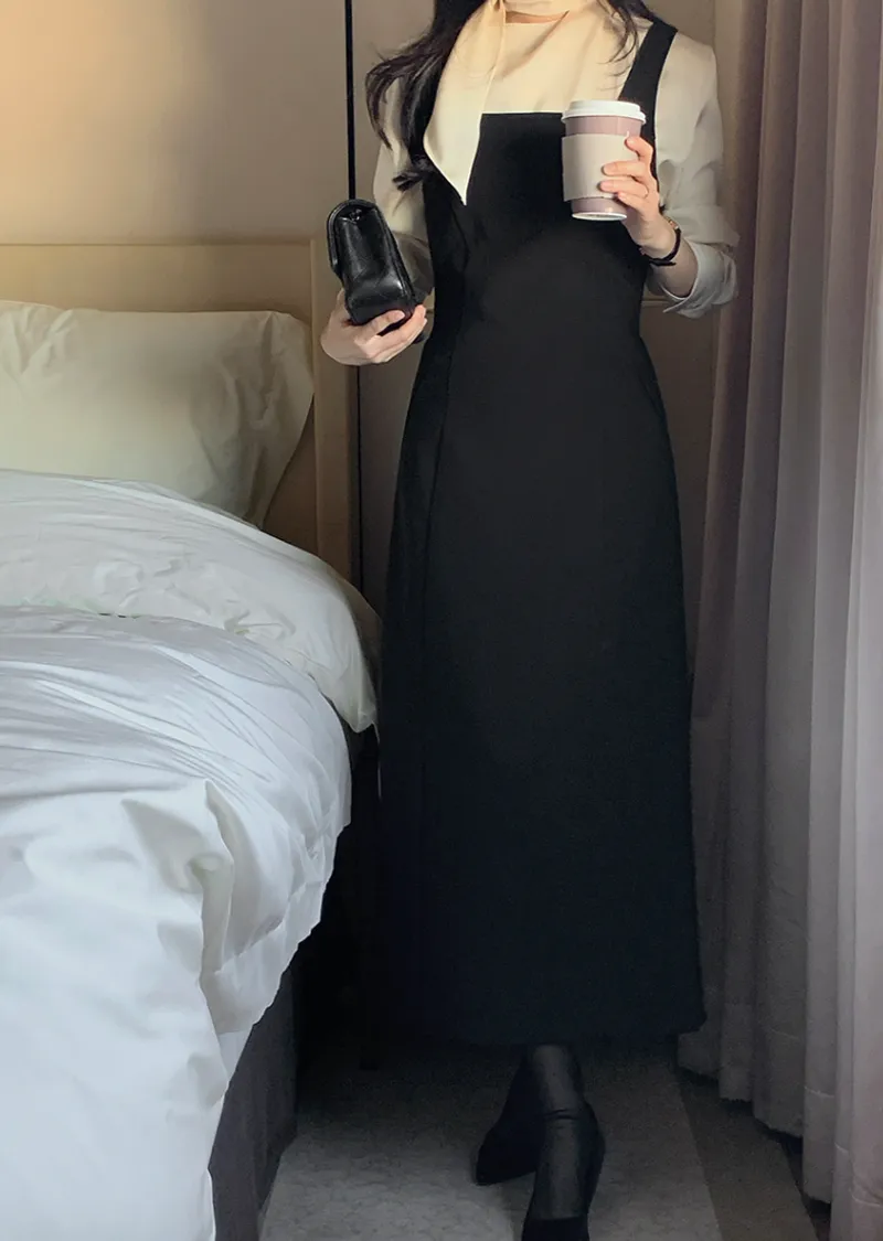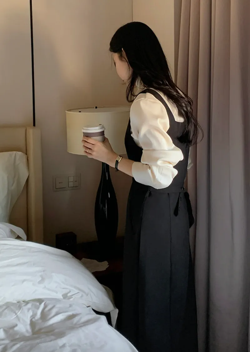 適合疊穿的優雅連身裙 !採用寬鬆的方領設計,