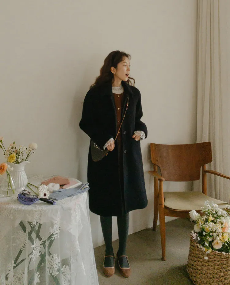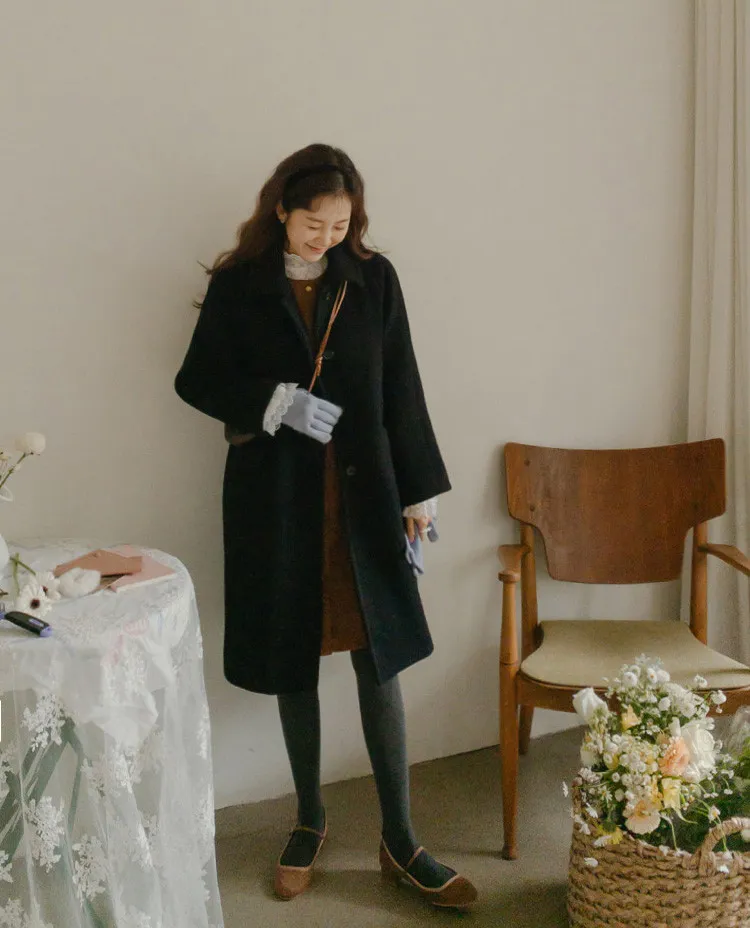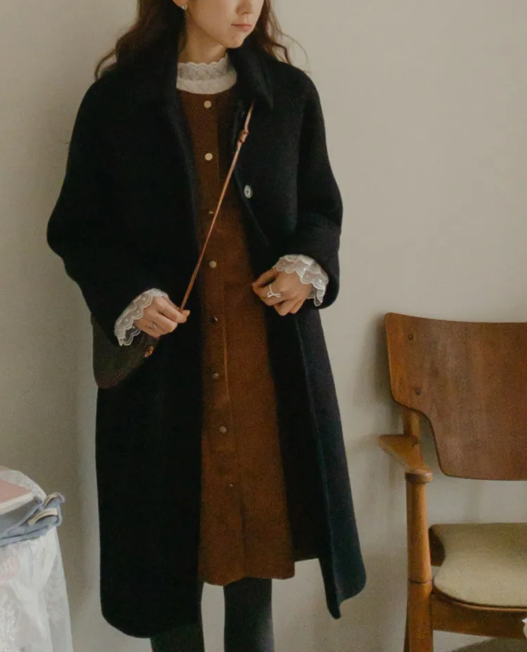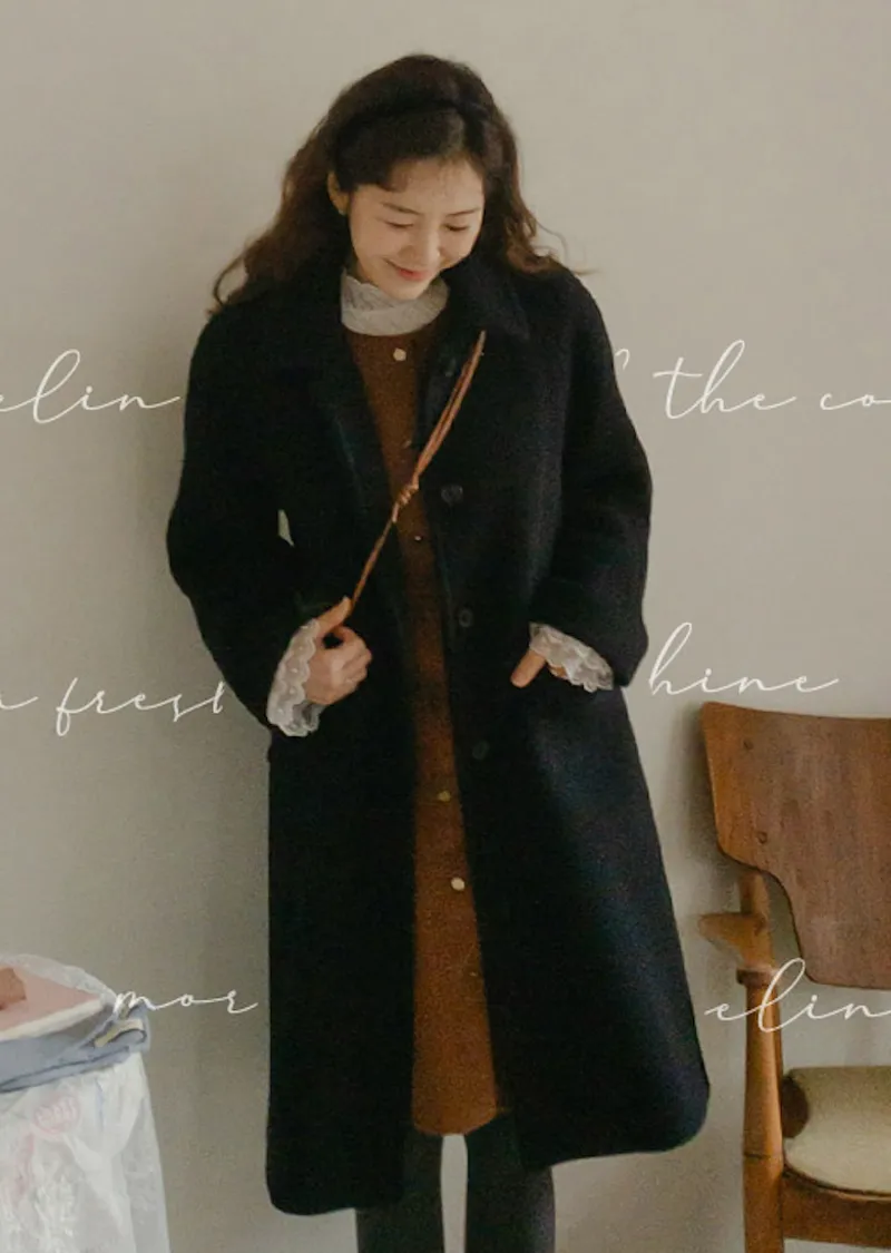 【精緻經典風格的羊毛大衣♡】【現代時尚,休閒輪廓】【90%羊毛,厚實保暖! 】【長款,盡顯時尚風格】【沉穩奢華的色彩】