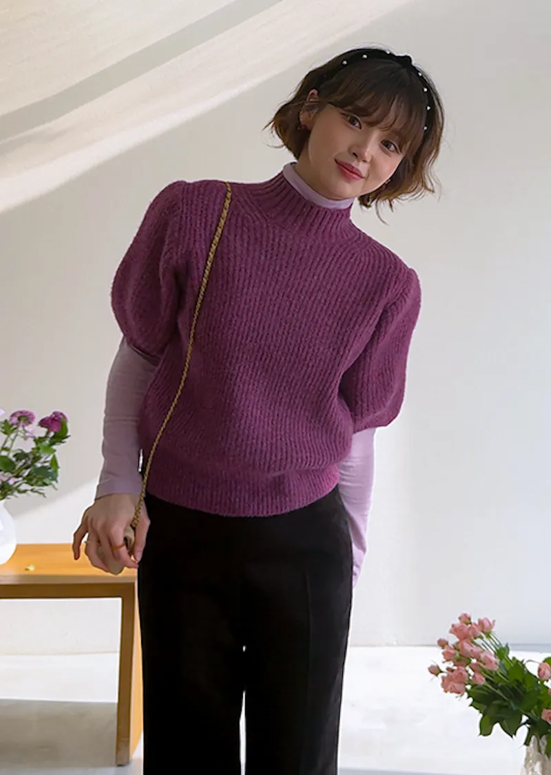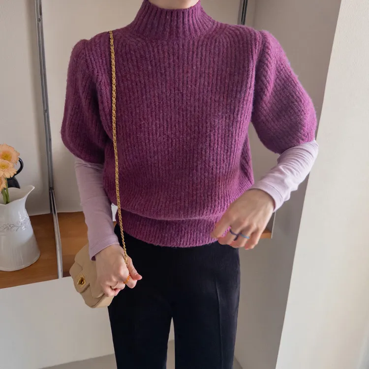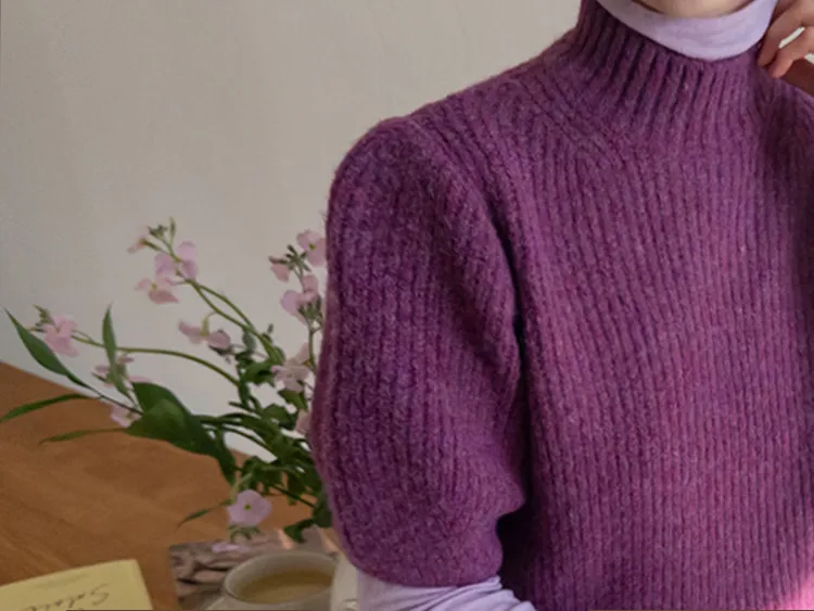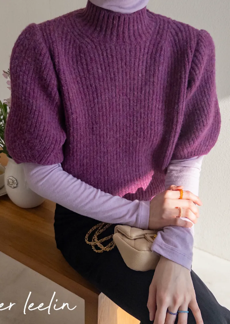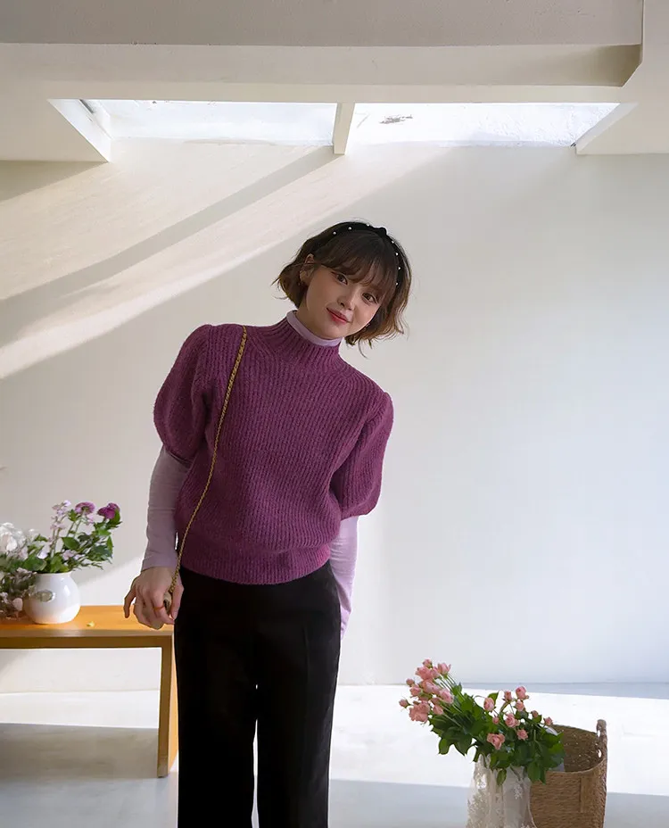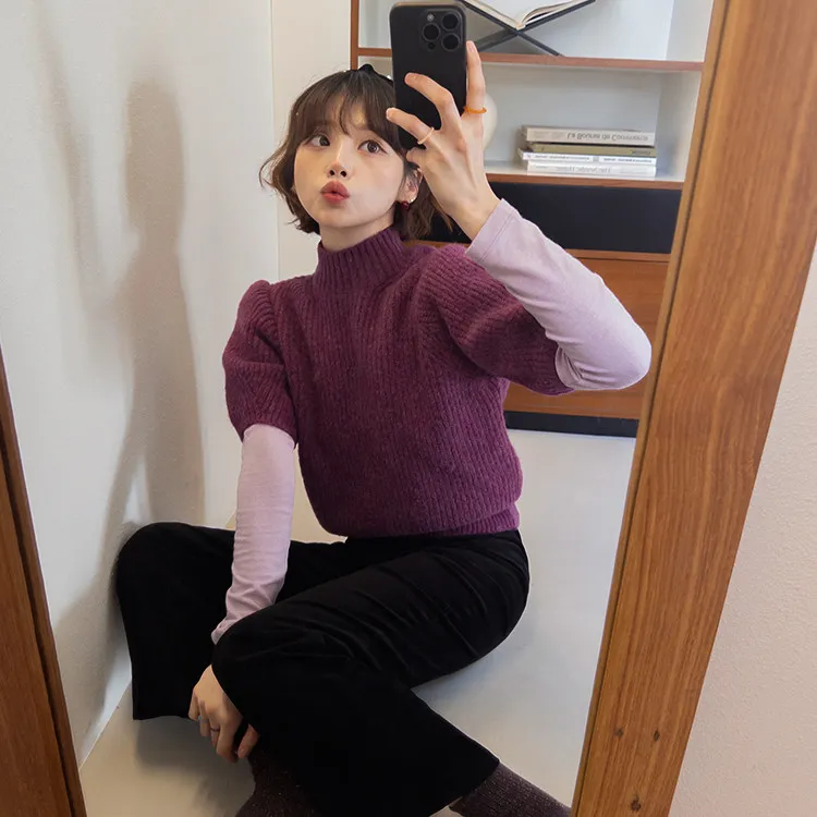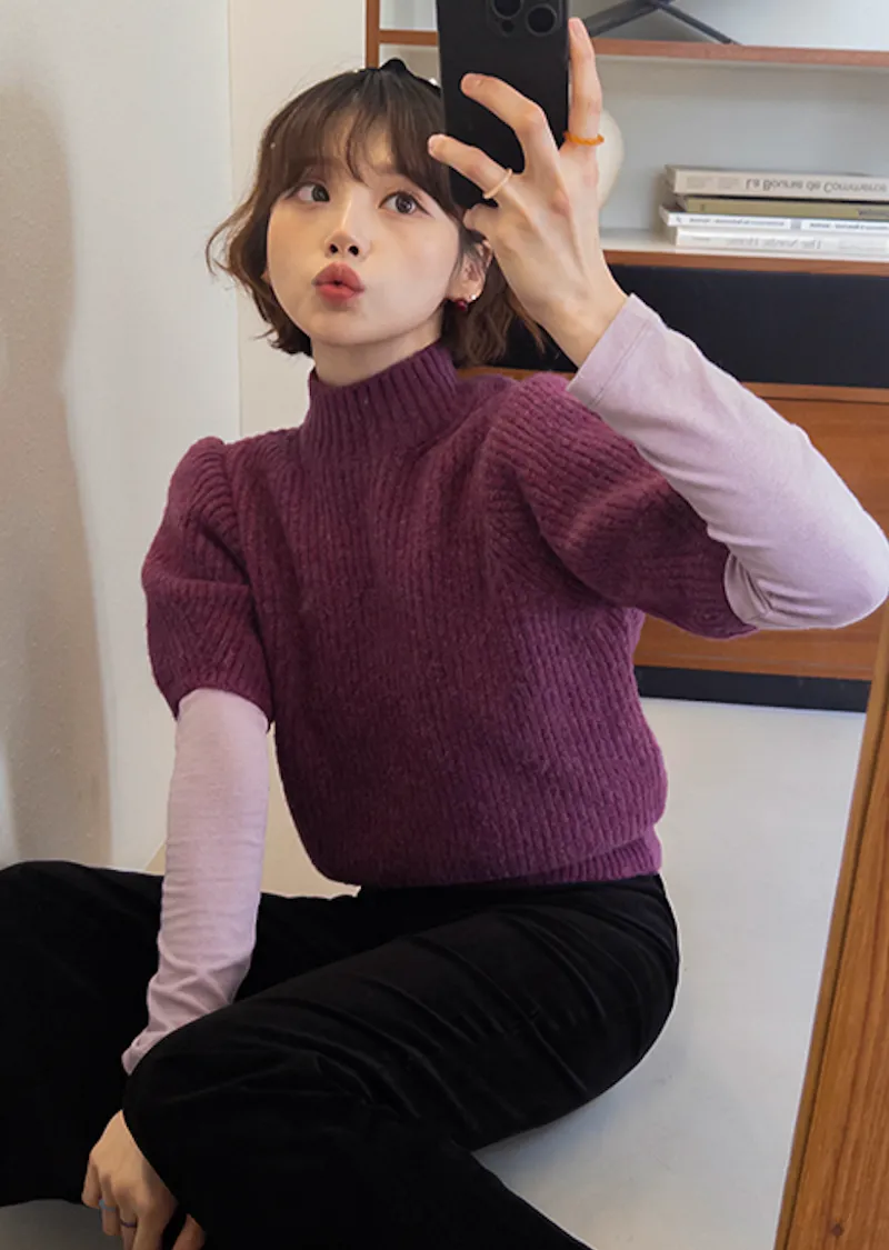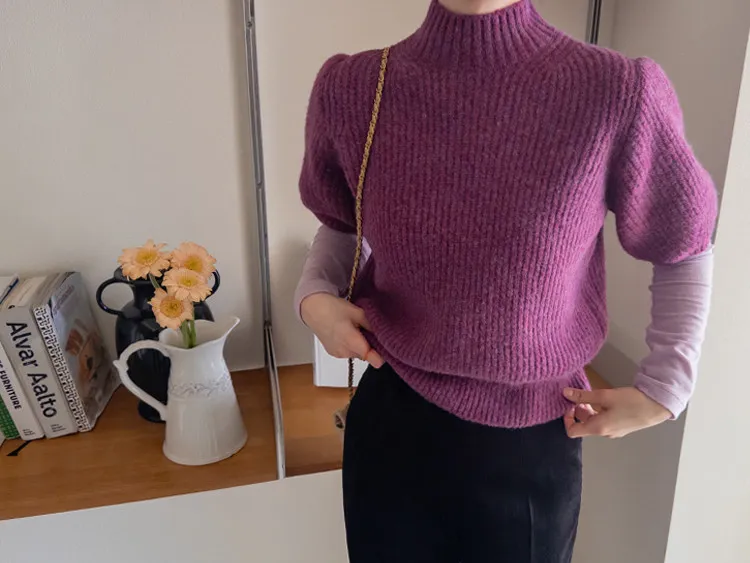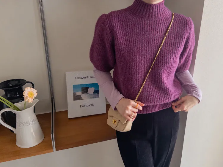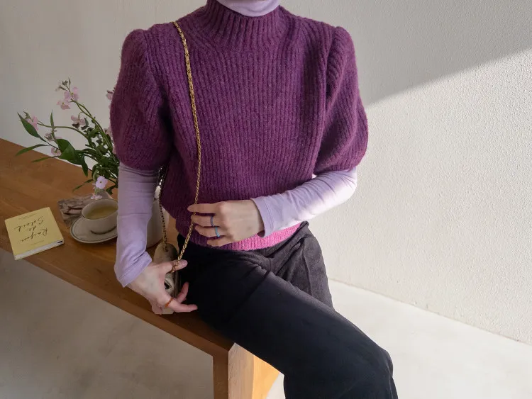 迷人色彩可愛氛圍泡泡袖針織上衣