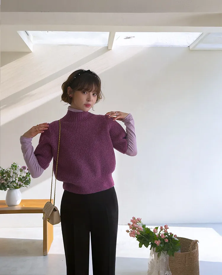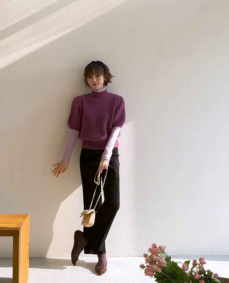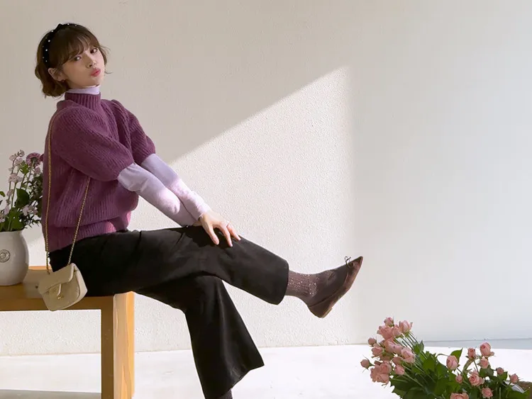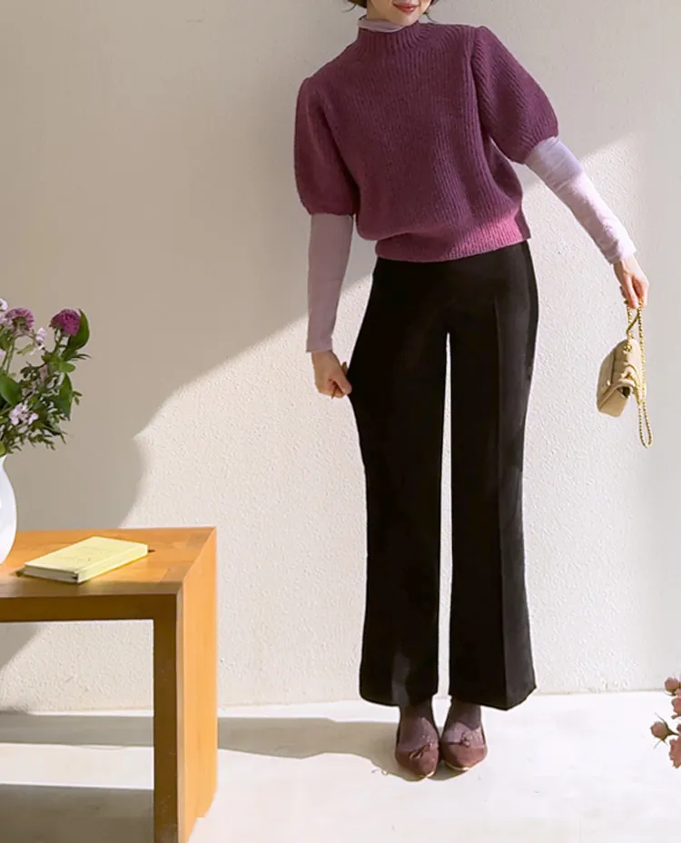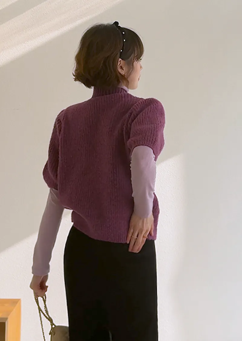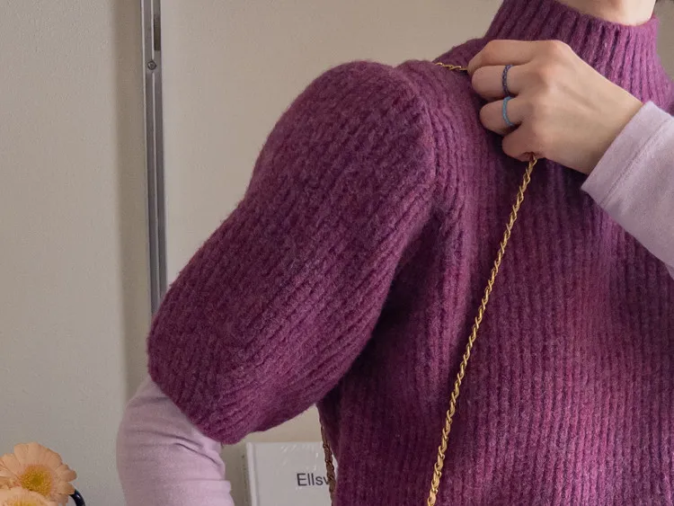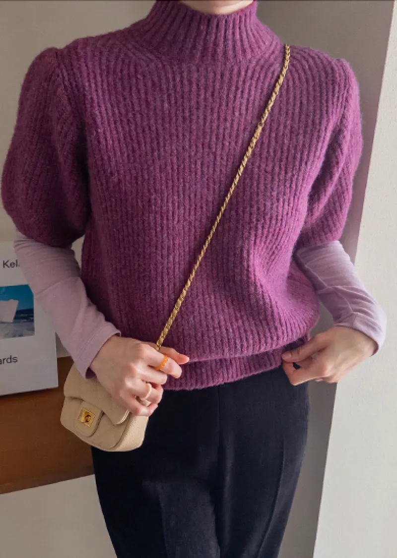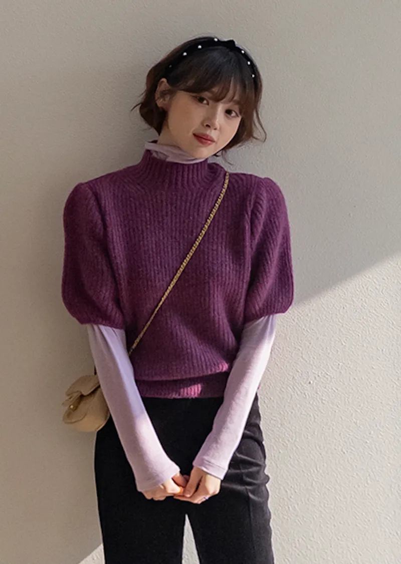 迷人色彩可愛氛圍泡泡袖針織上衣
