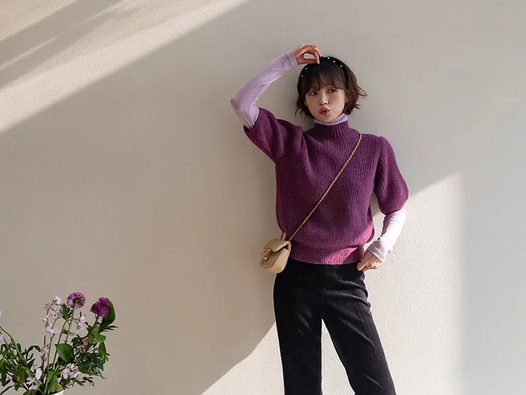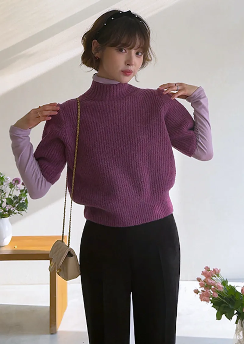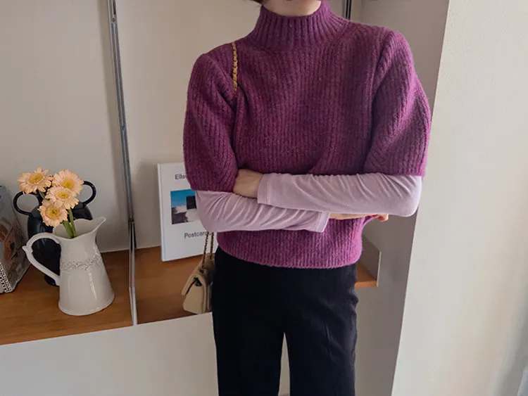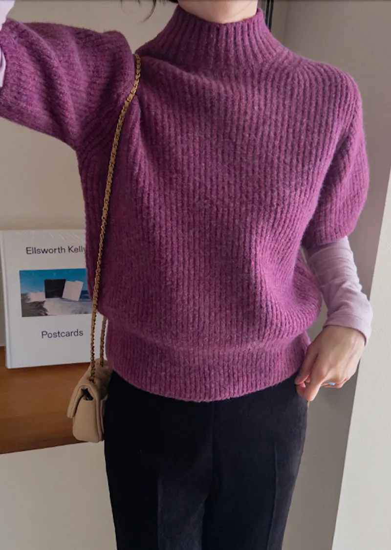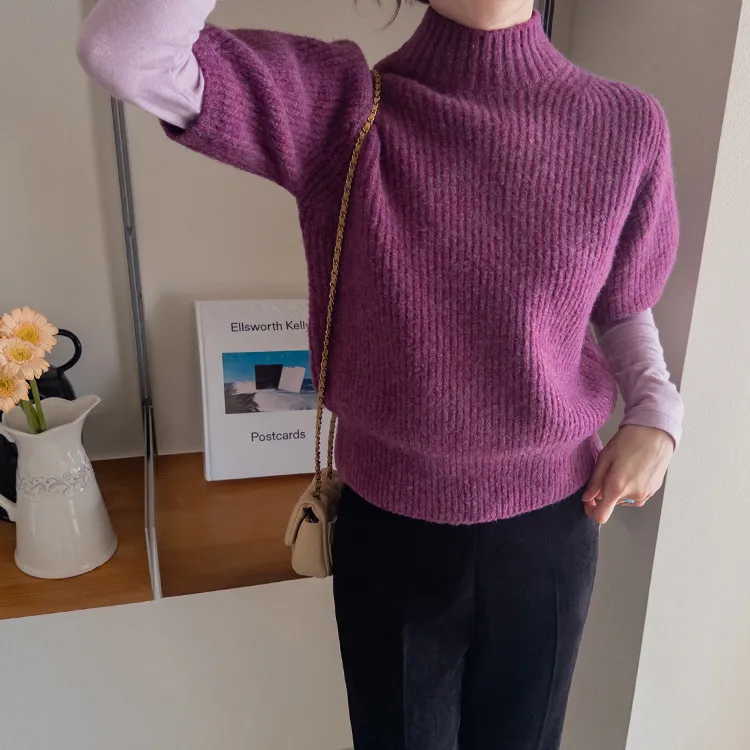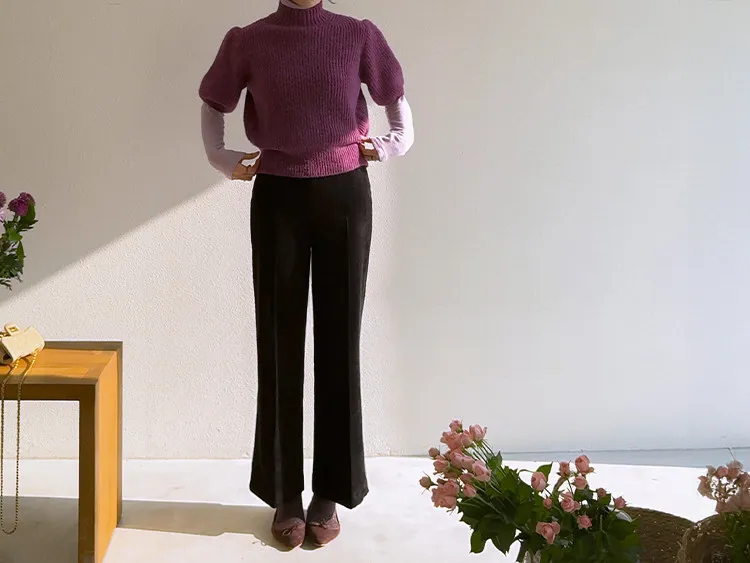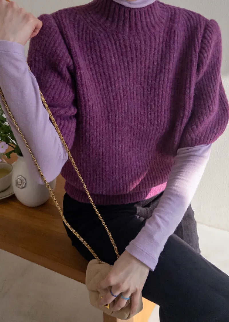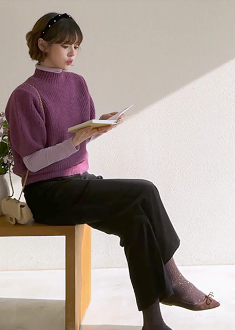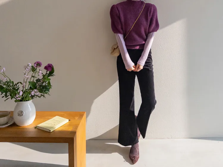 迷人色彩可愛氛圍泡泡袖針織上衣