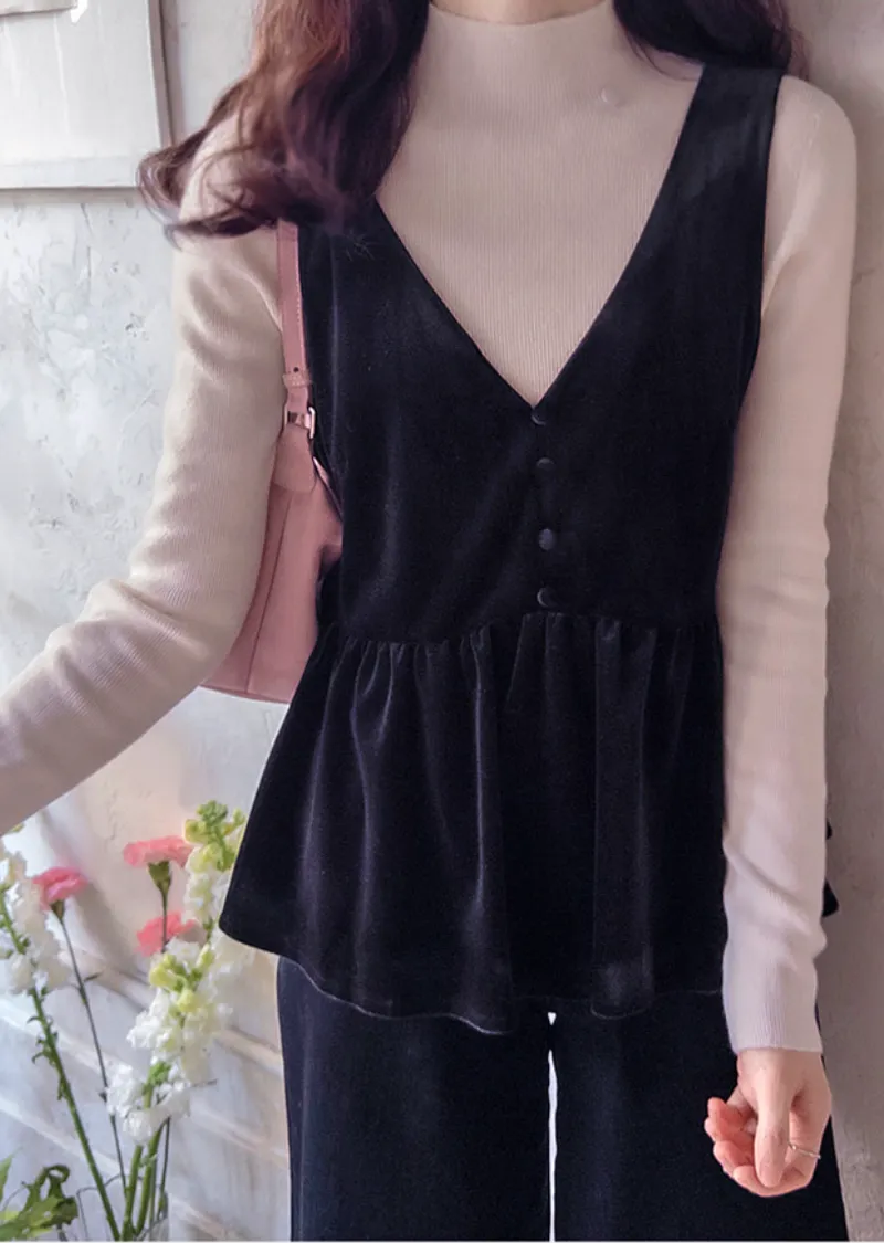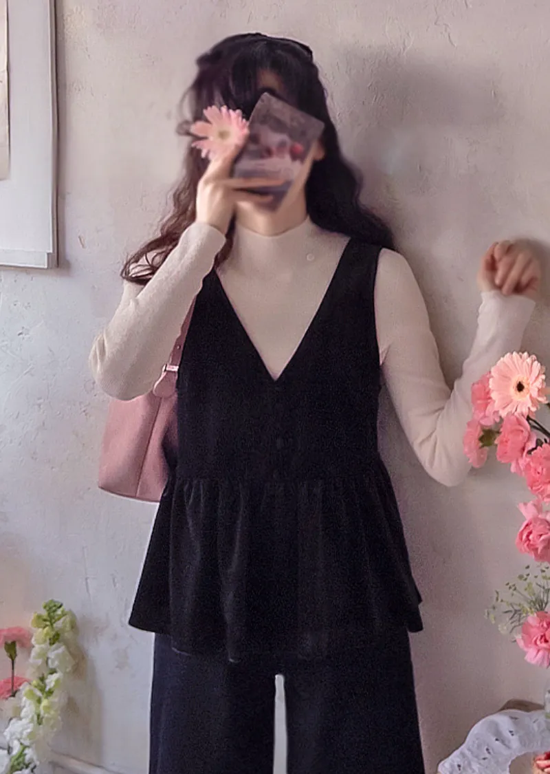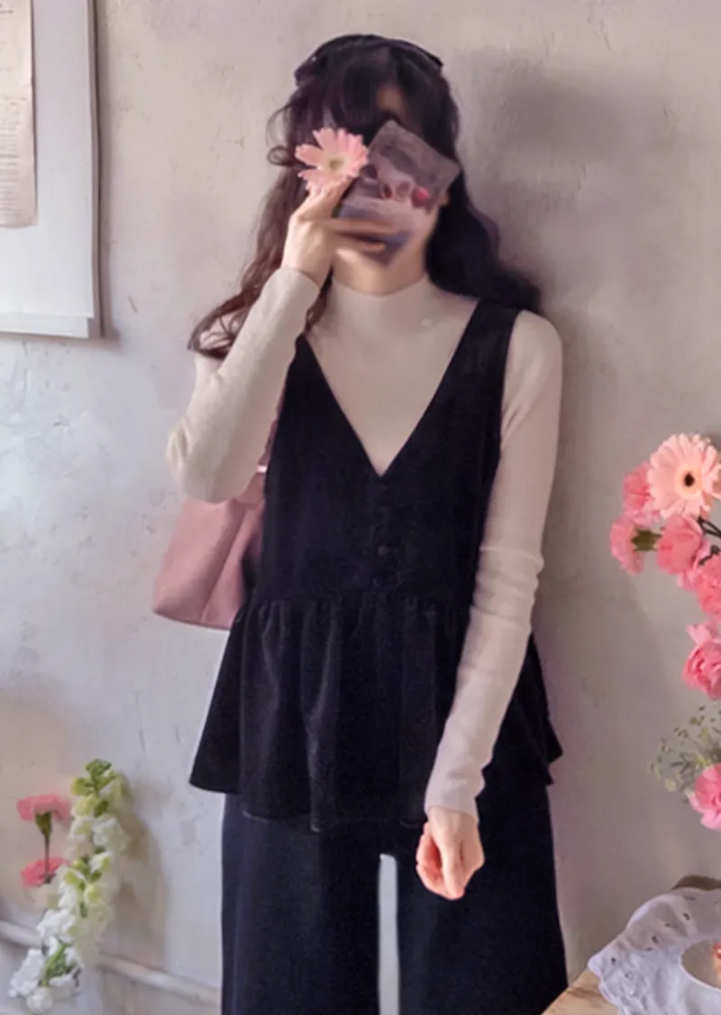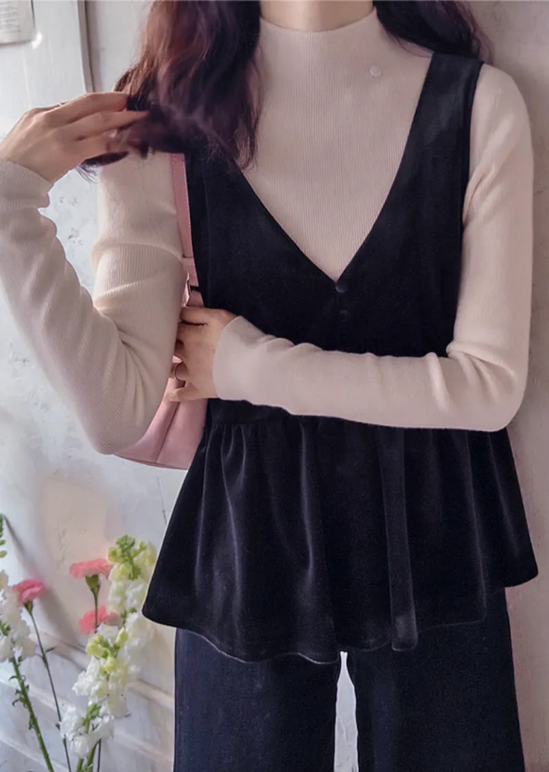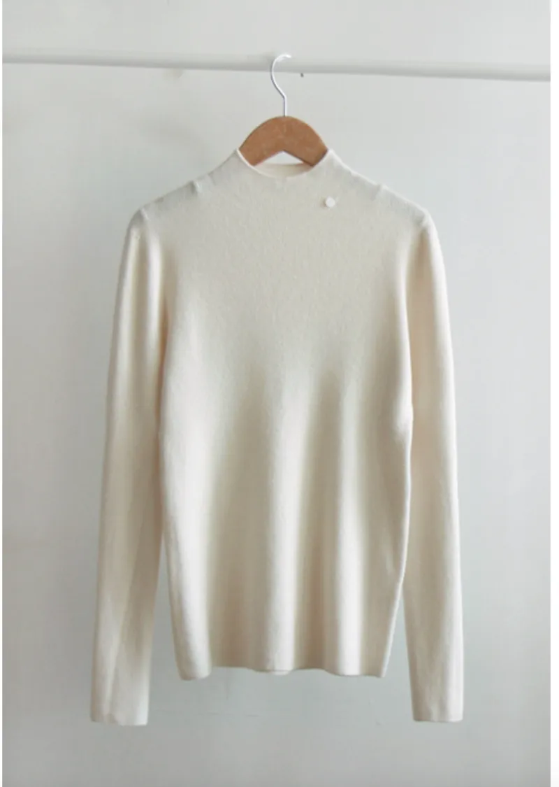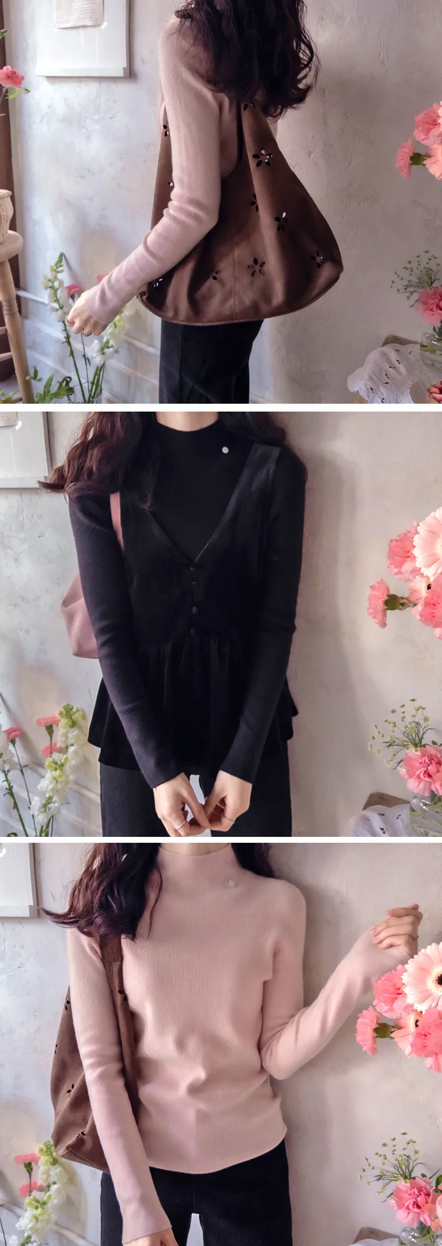 溫暖柔軟點綴吊墜彈性半高領絨質上衣