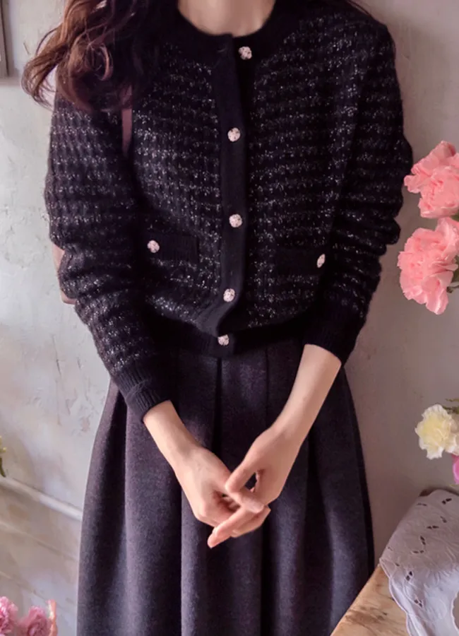 奢華珍珠光澤獨特鈕扣花呢開衫