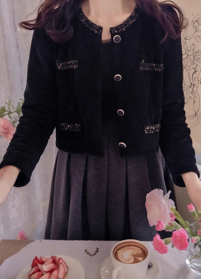 奢華珠串點綴邊鈕扣短款絎縫外套
