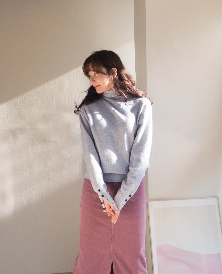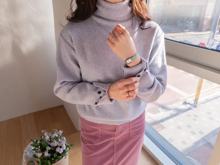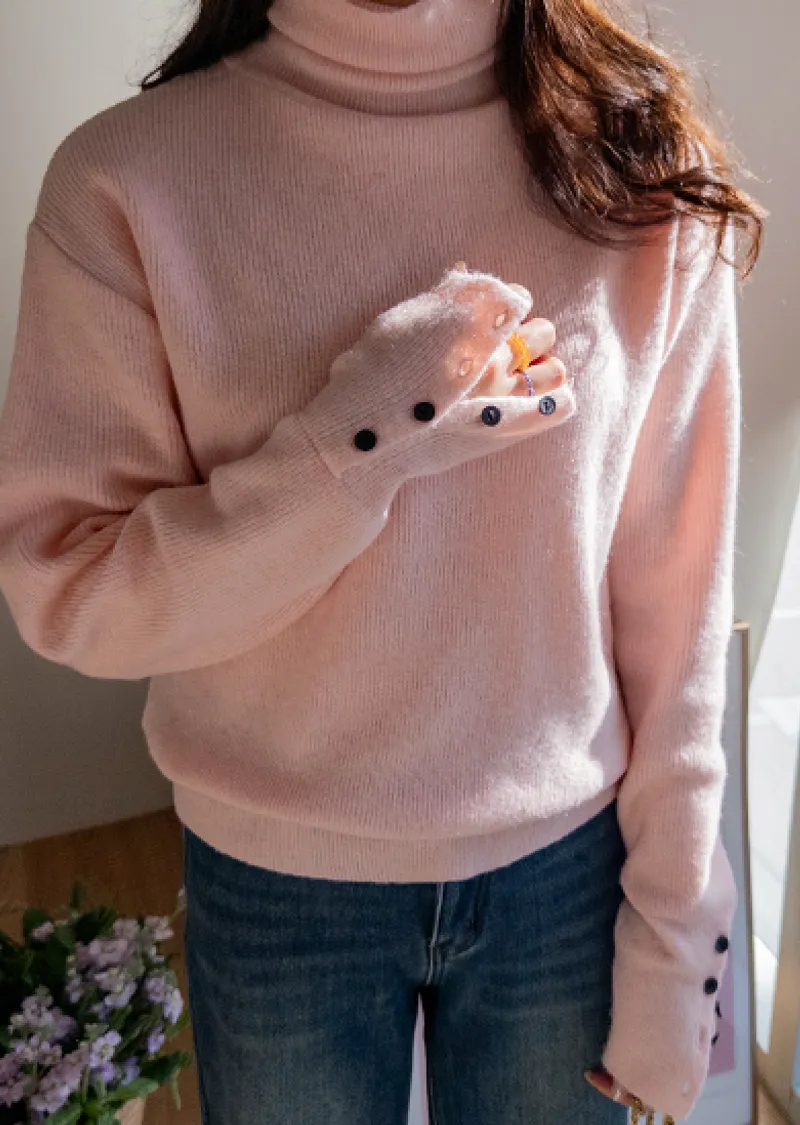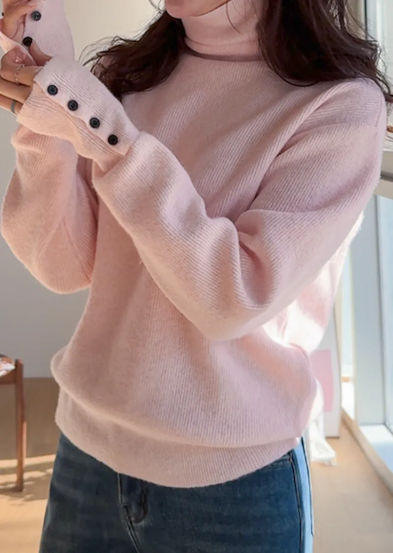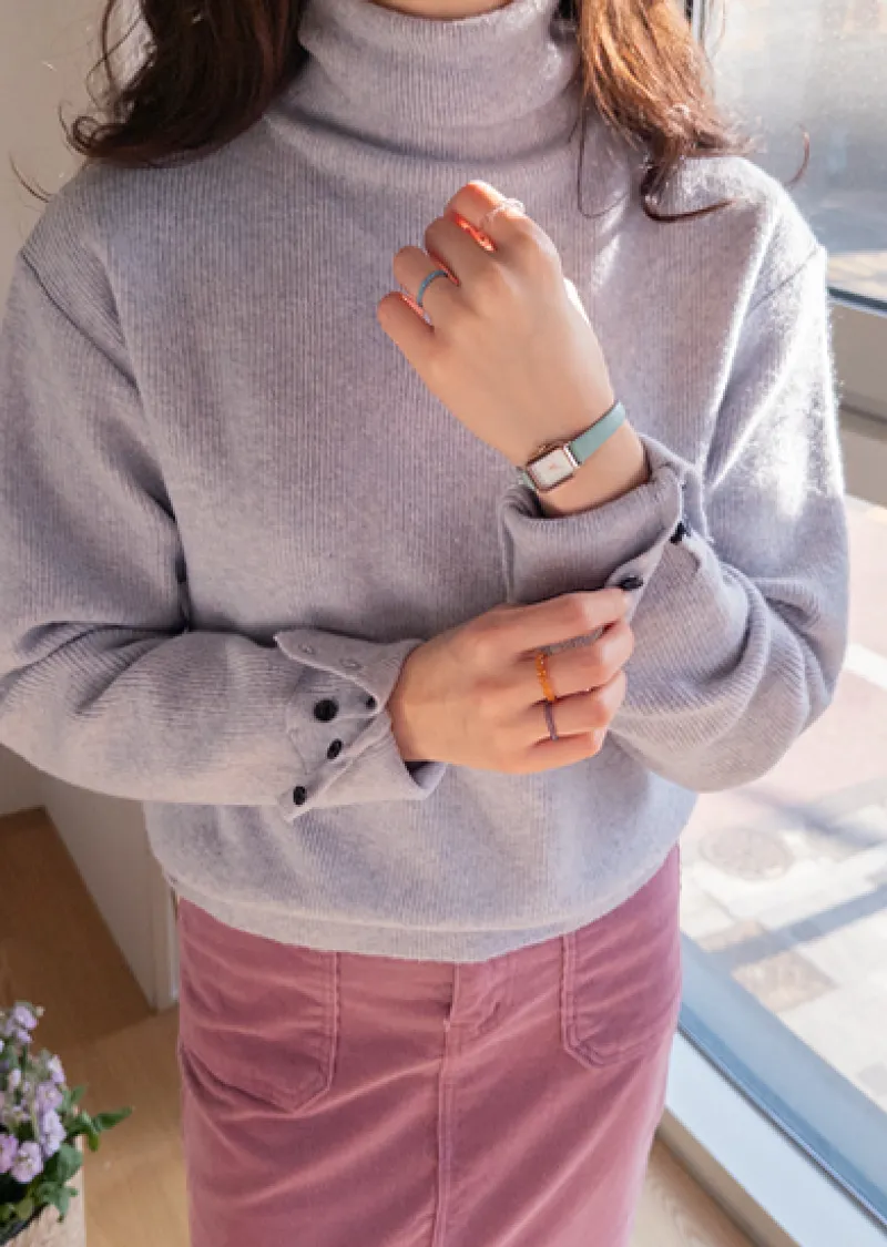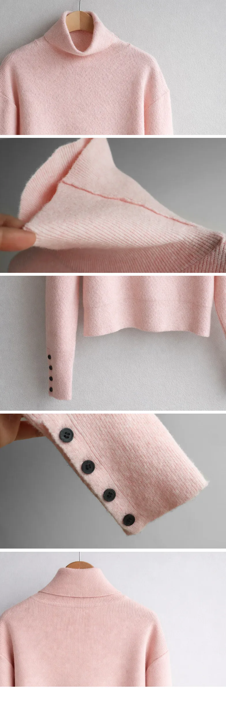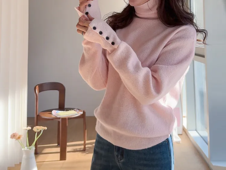 點綴袖末鈕扣舒適保暖高領針織上衣