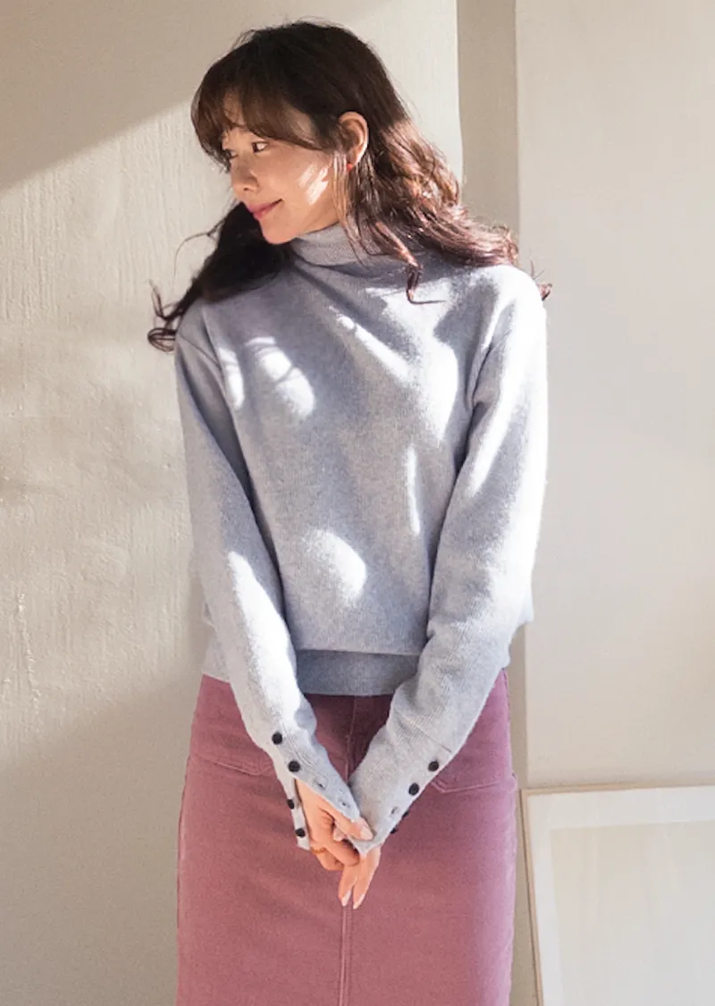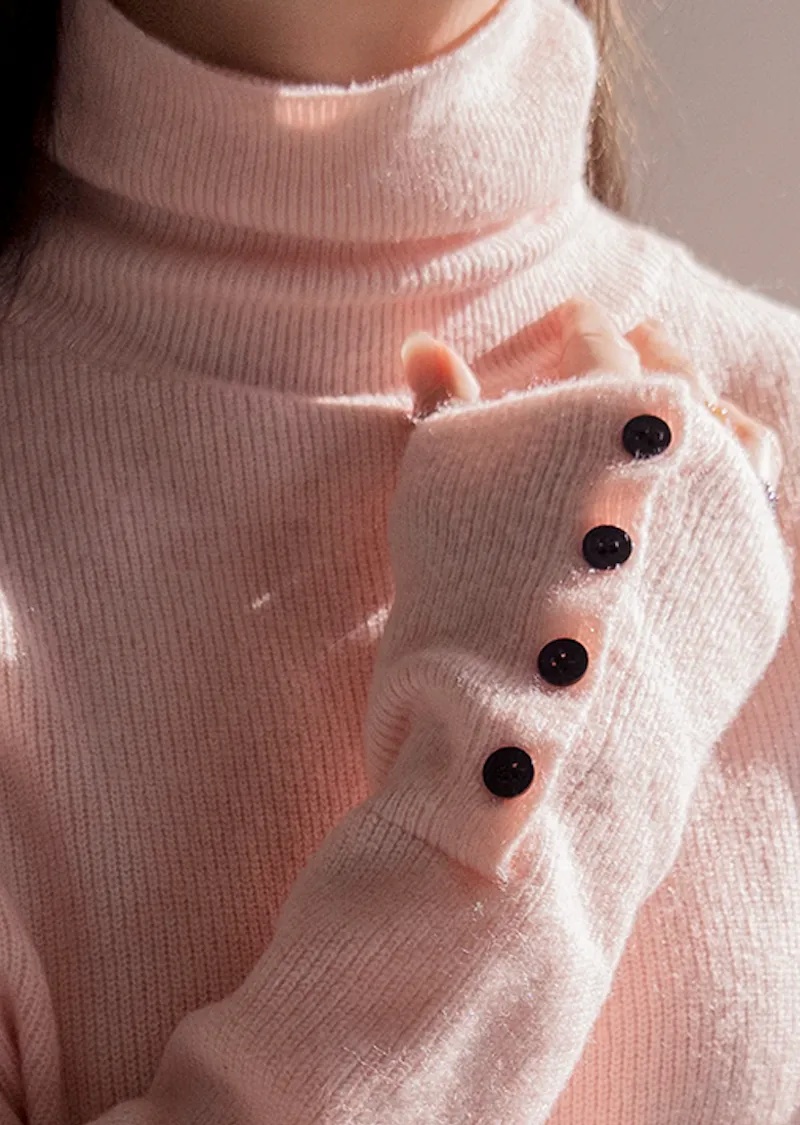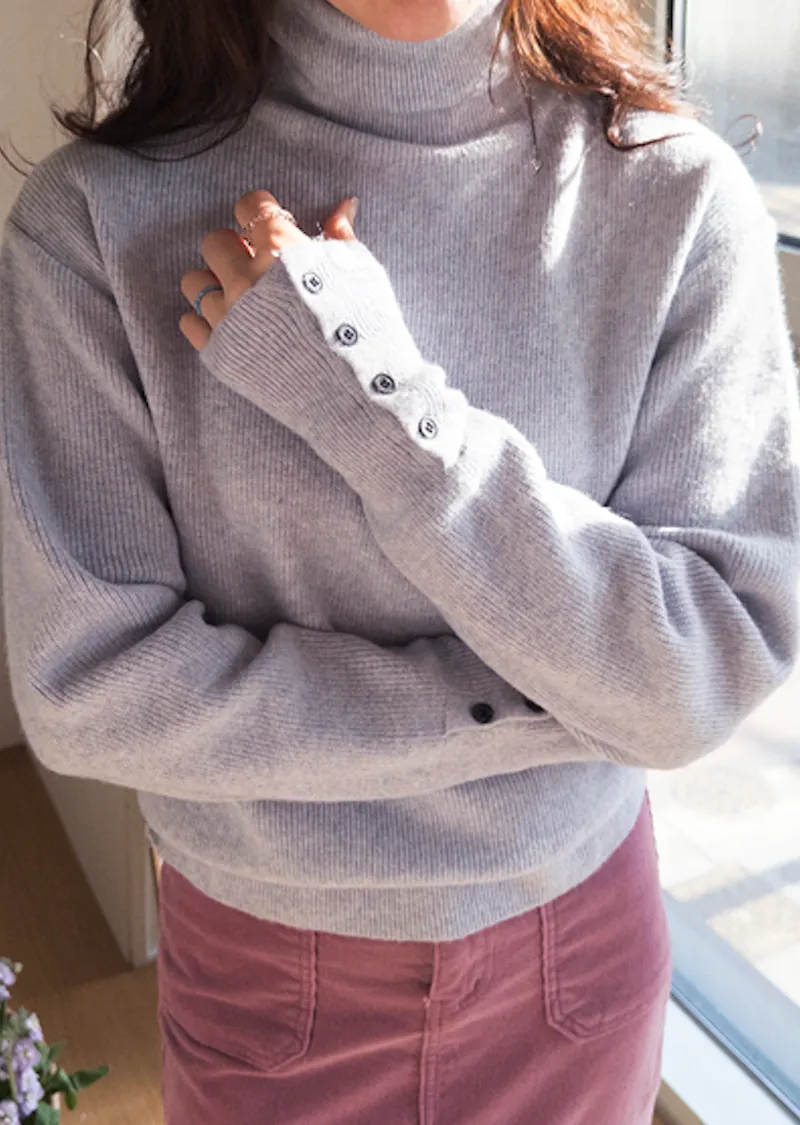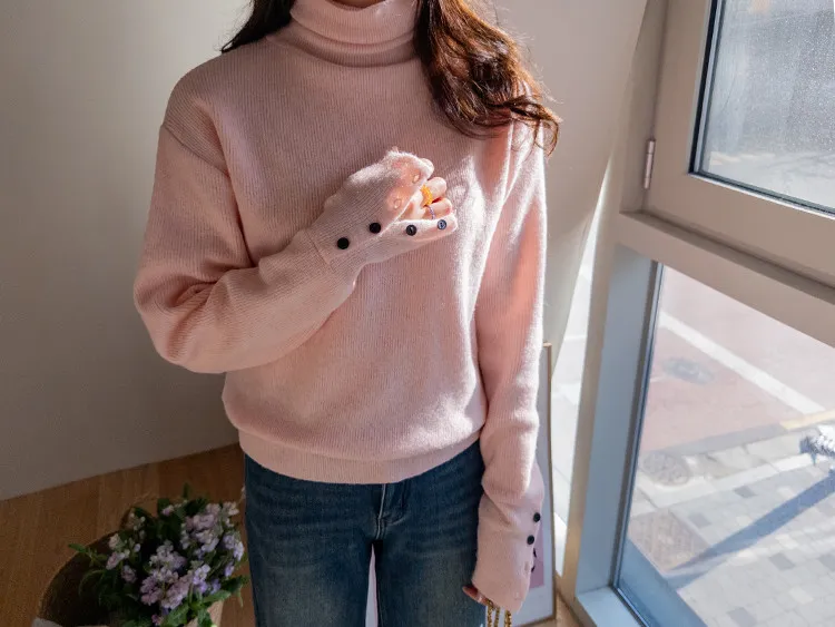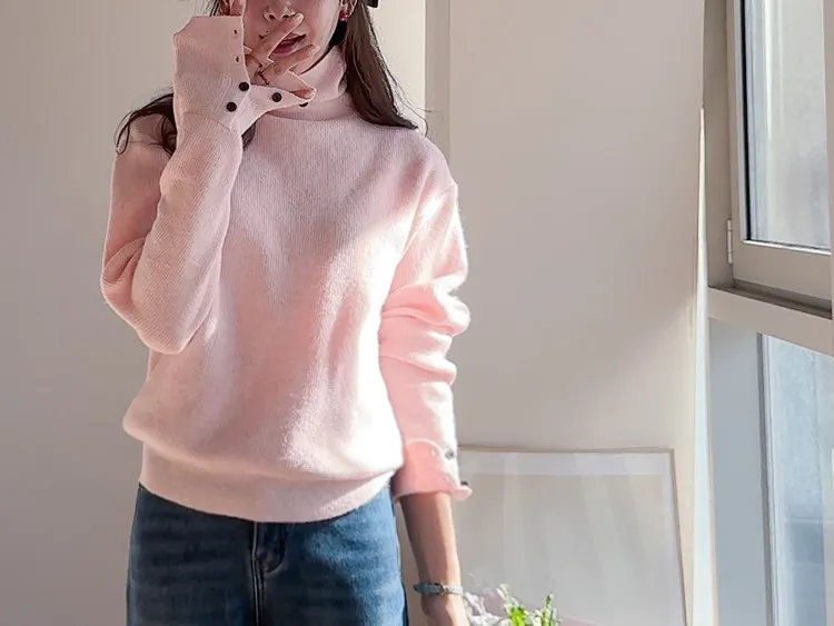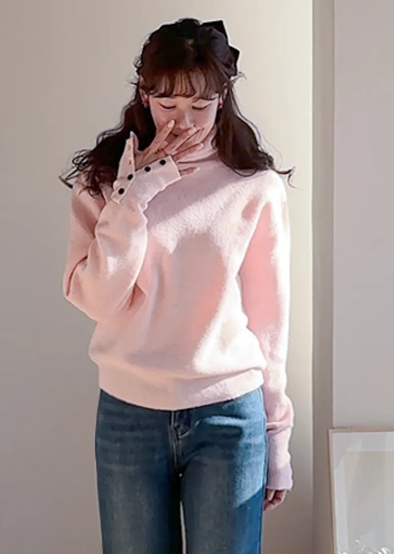 點綴袖末鈕扣舒適保暖高領針織上衣