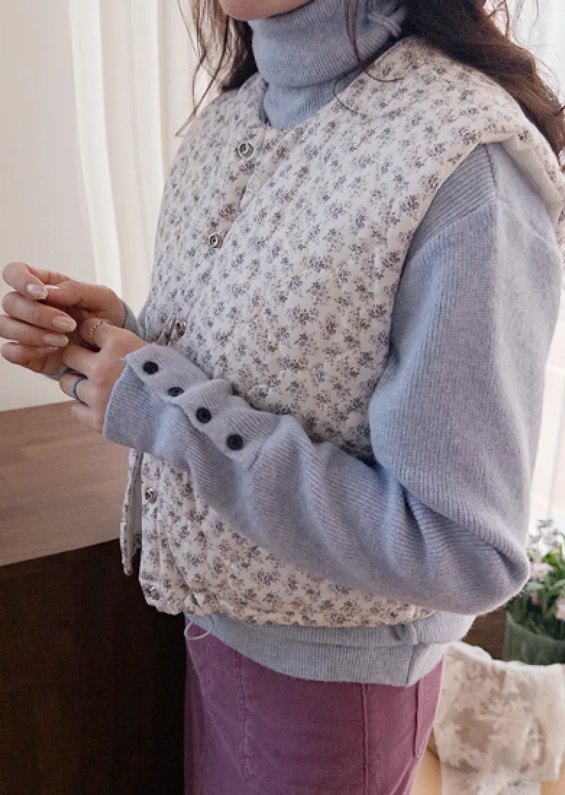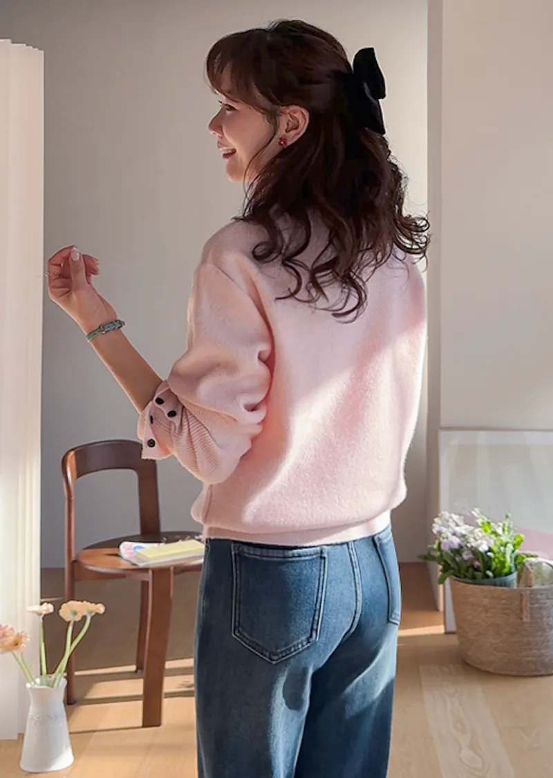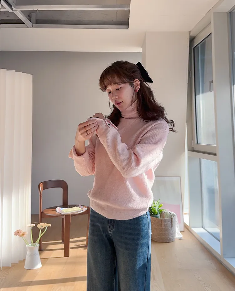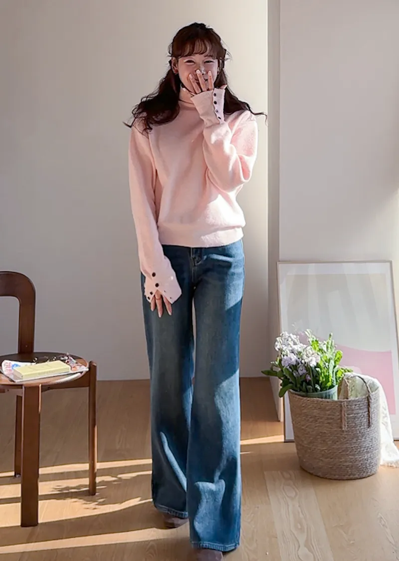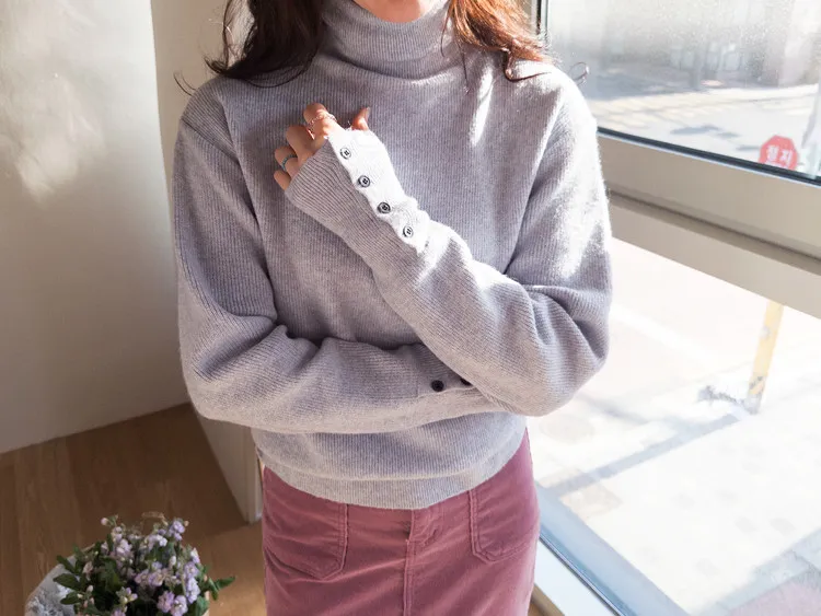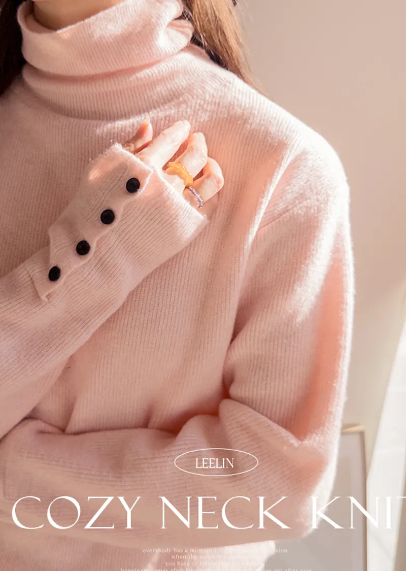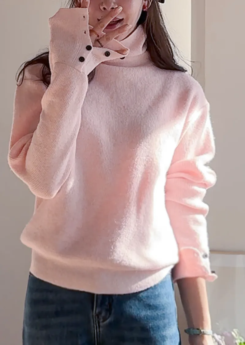 點綴袖末鈕扣舒適保暖高領針織上衣
