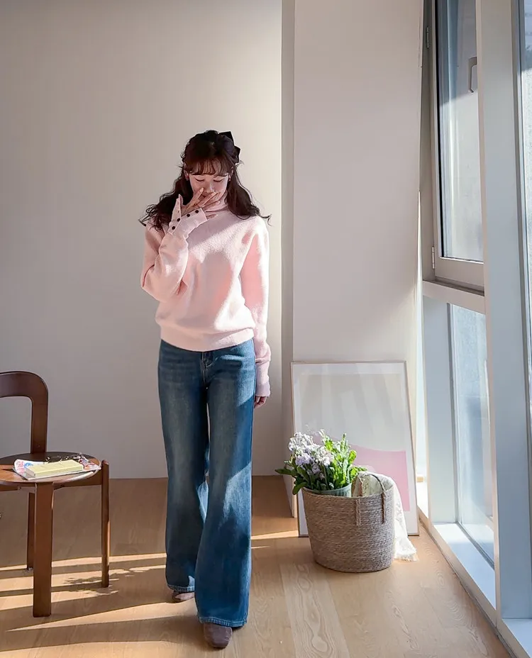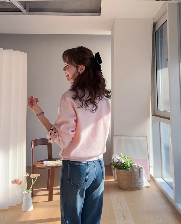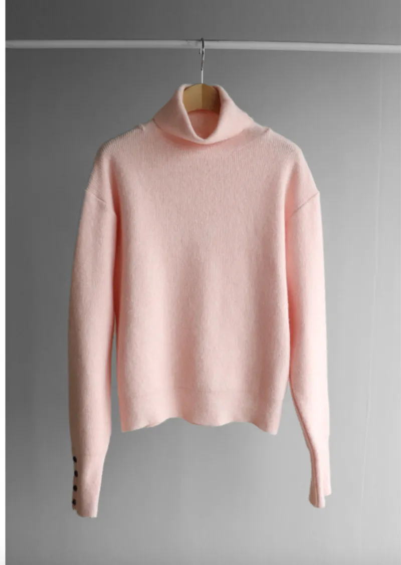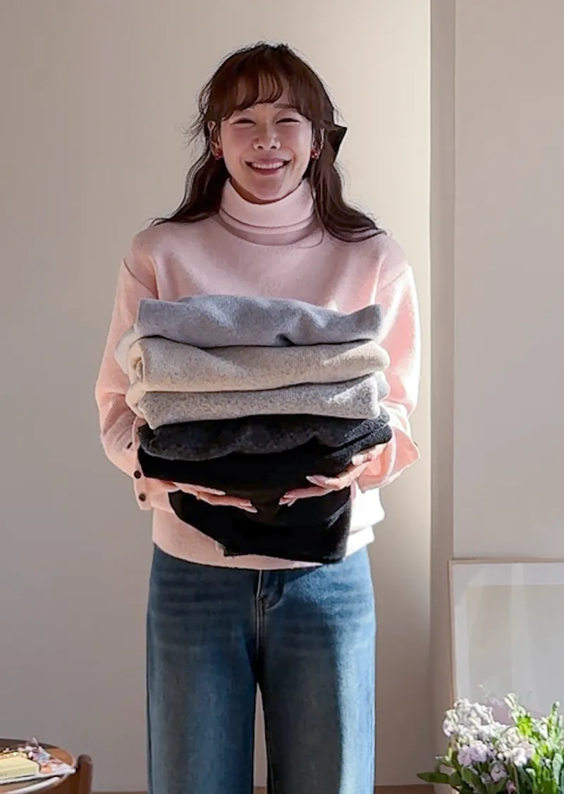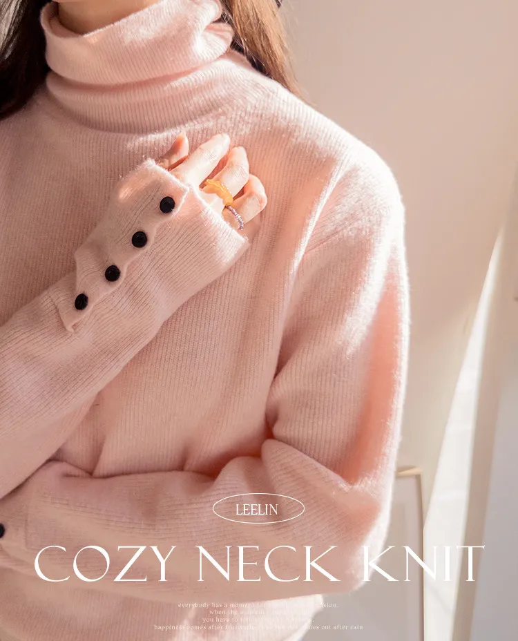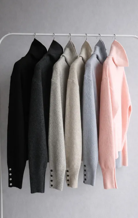 【舒適保暖的針織衫,包覆頸部和身體♥】【點綴袖口鈕釦帶設計! 】【彈性針織工藝,打造輕鬆輪廓】【豐富顏色,非常適合作為各種外套的內搭】