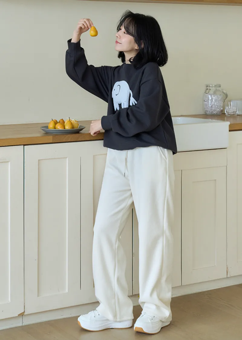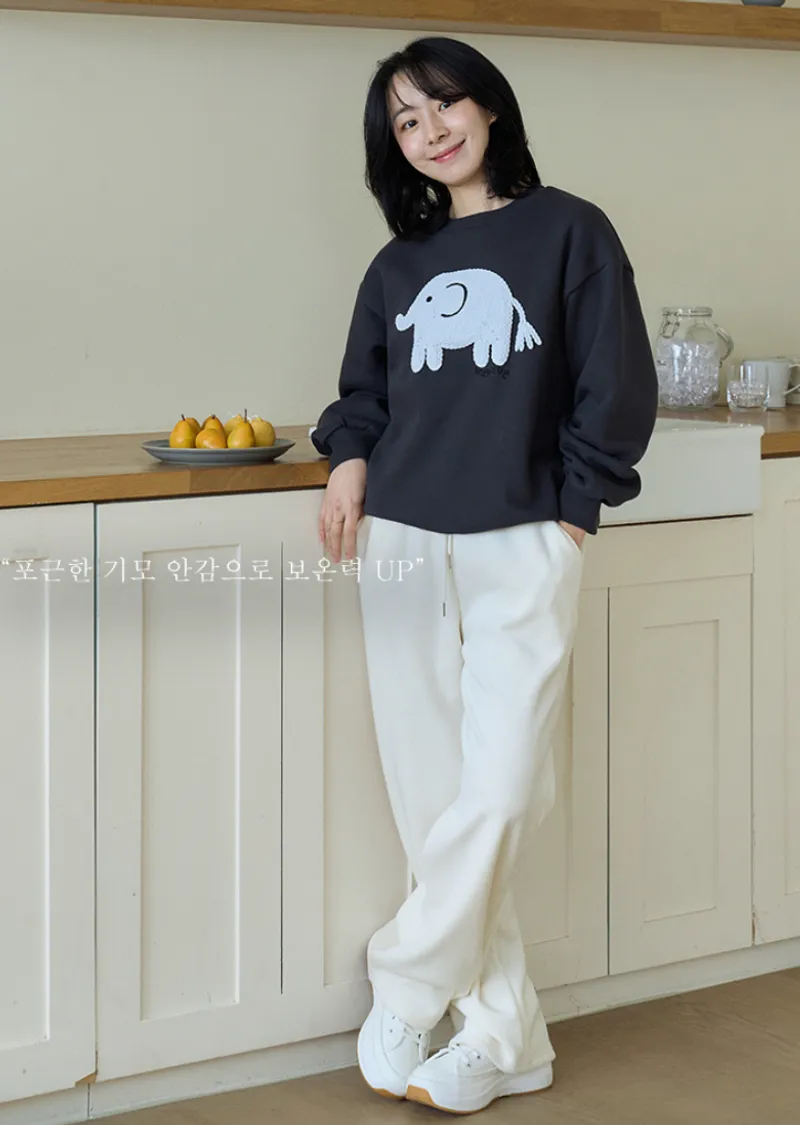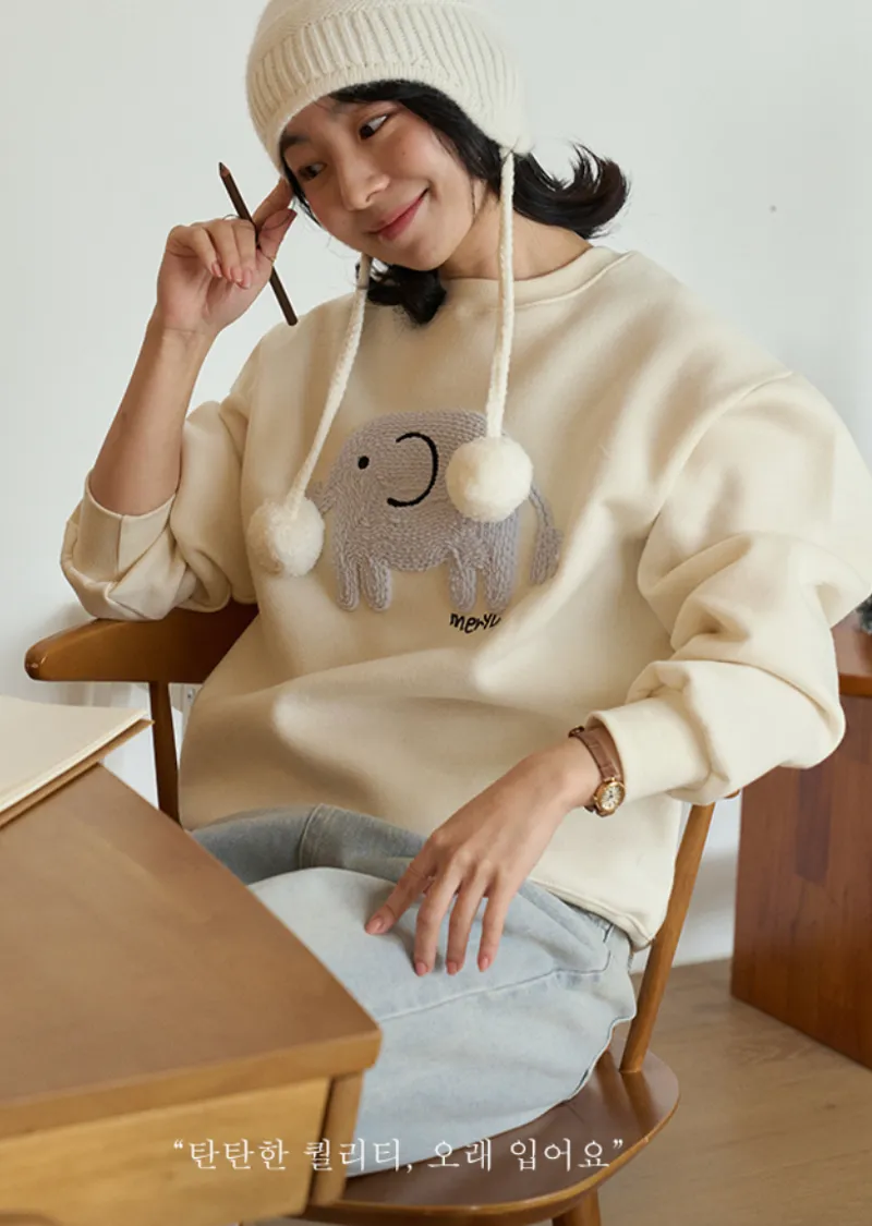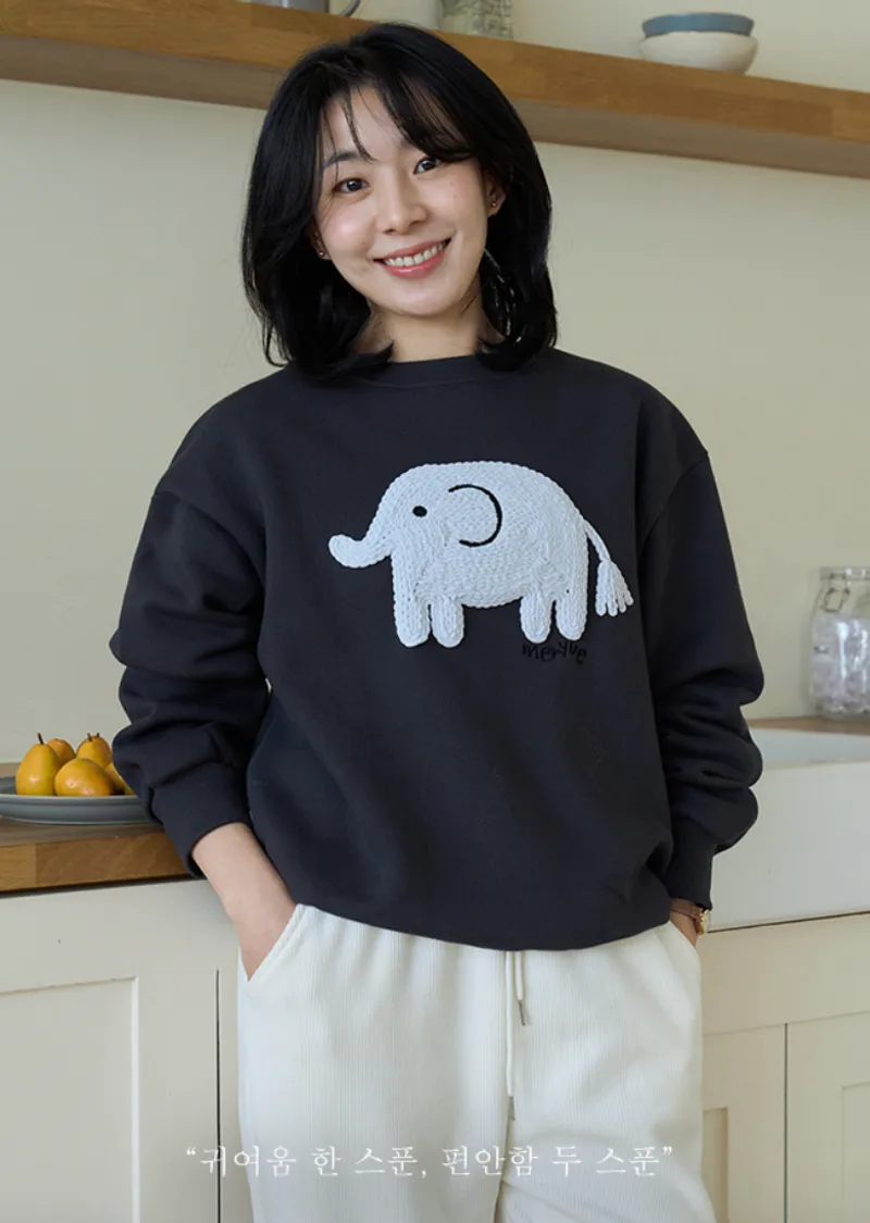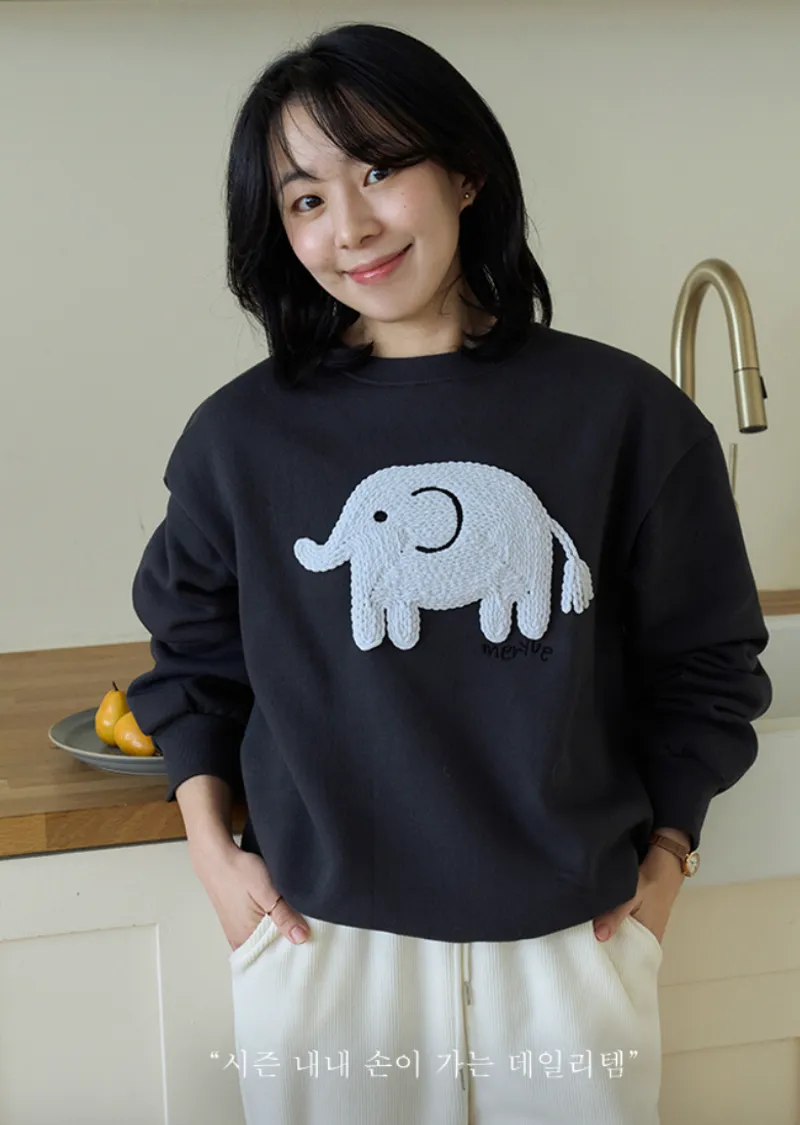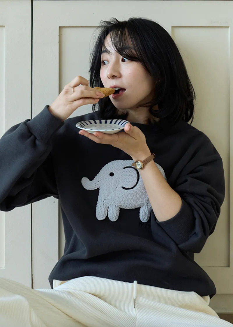 一款大象刺繡穿搭上衣,採用厚實舒適的拉絨布料製成。它具有輕盈柔軟的觸感以及拉絨面料獨特的舒適感。正面的大象不是印花,而是刺繡貼片,賦予其立體輪廓和可愛的細節。近距離看更顯奢華。基本版型營造出自然下垂的廓形,可輕鬆搭配任何褲子或裙子。這是一款必備的冬季日常穿搭上衣,滿足三個所有要求:溫暖、可愛和舒適。