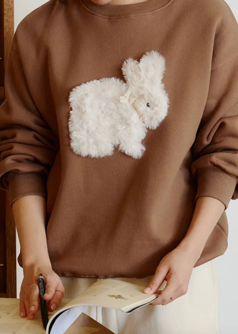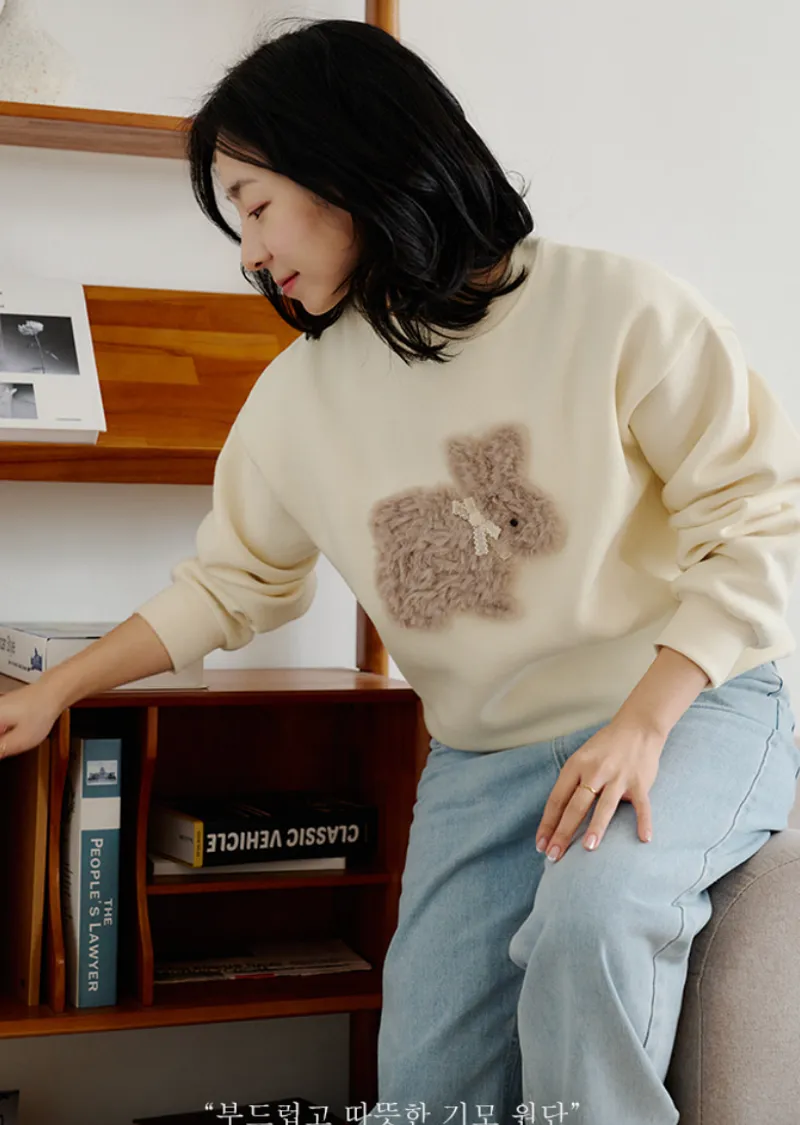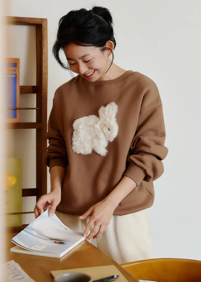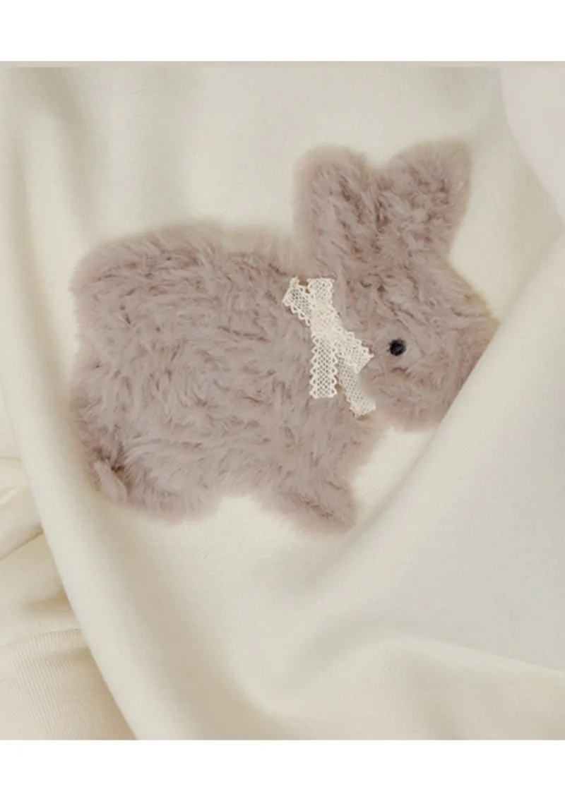 可愛點綴胸前緞帶毛絨兔子穿搭上衣