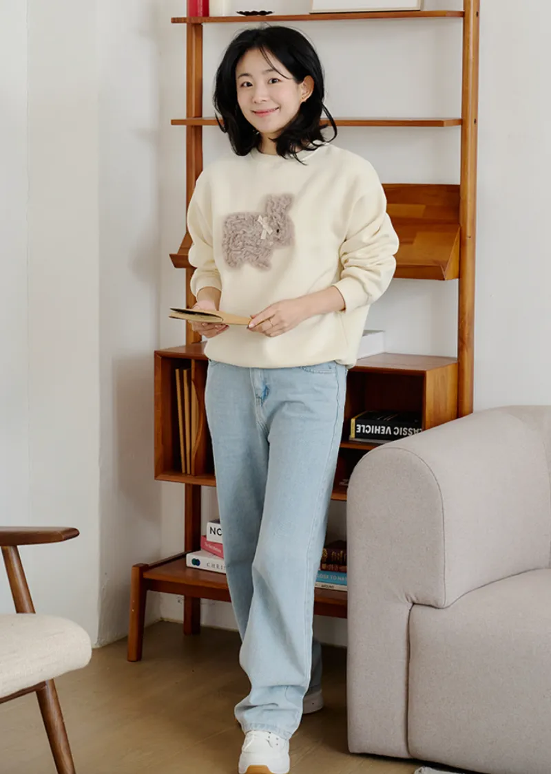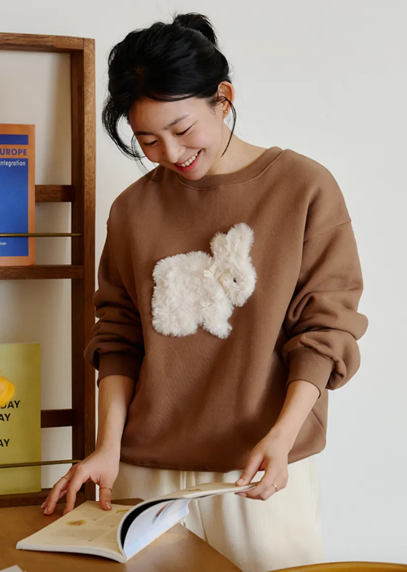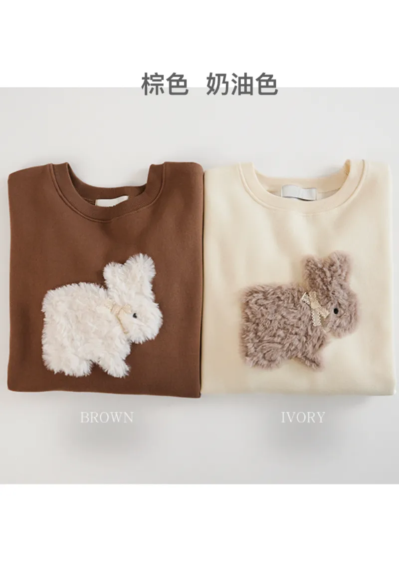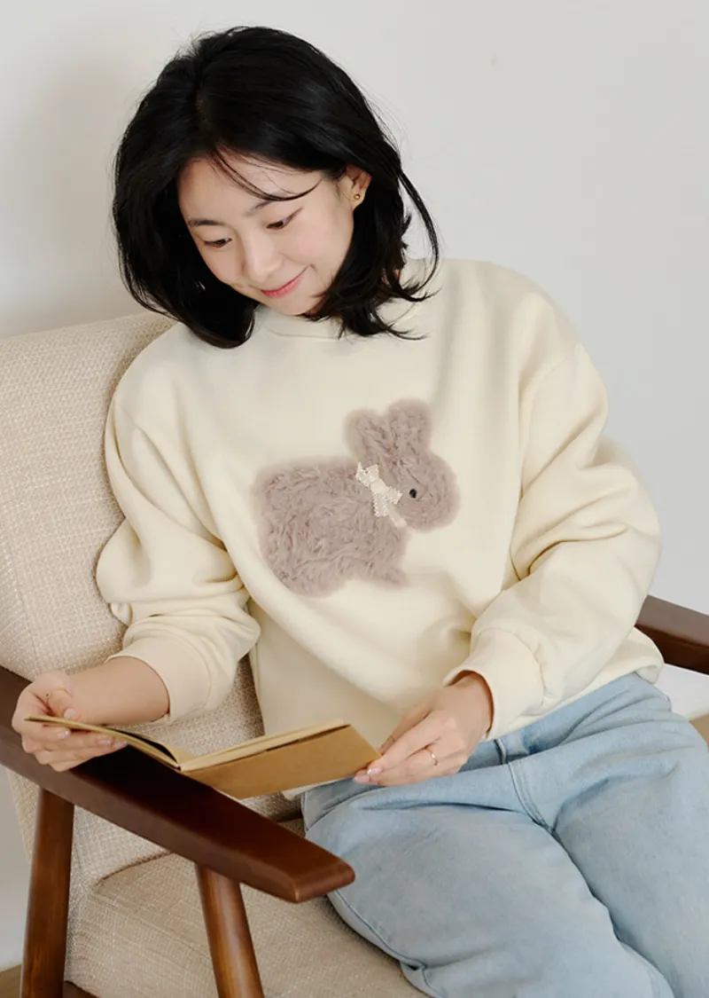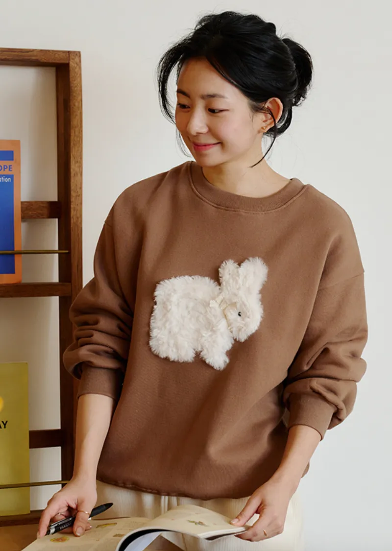可愛點綴胸前緞帶毛絨兔子穿搭上衣