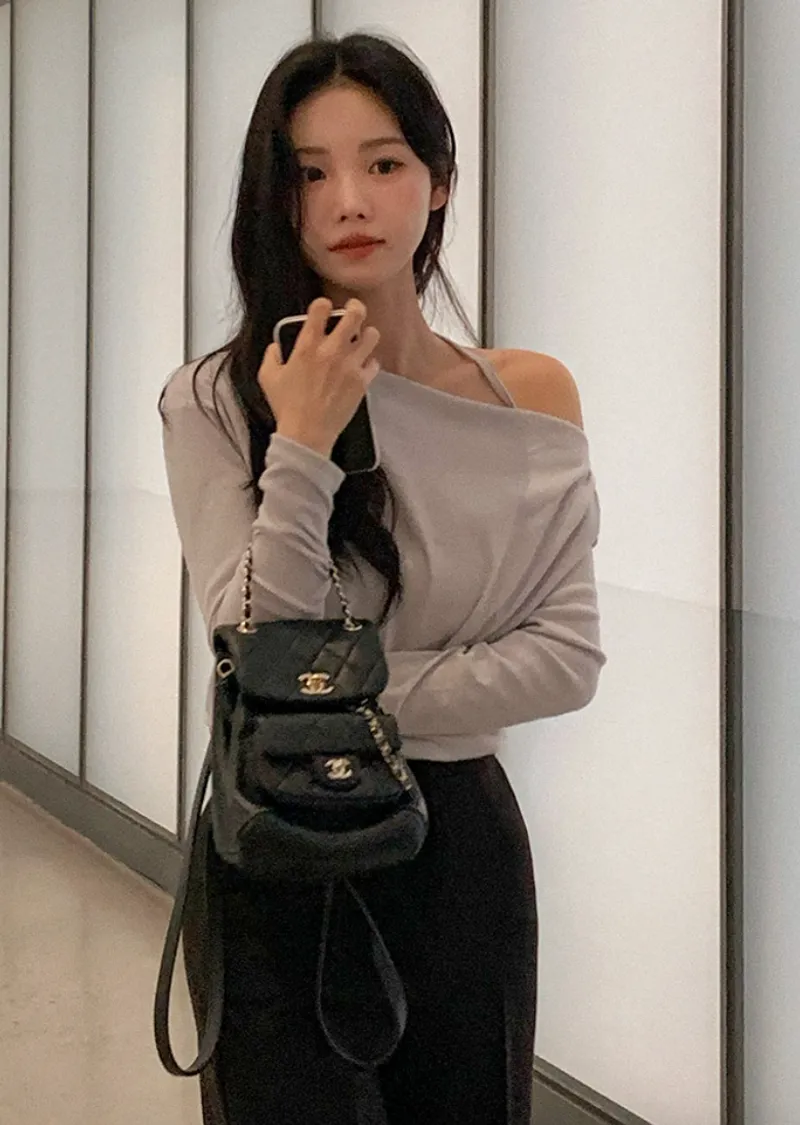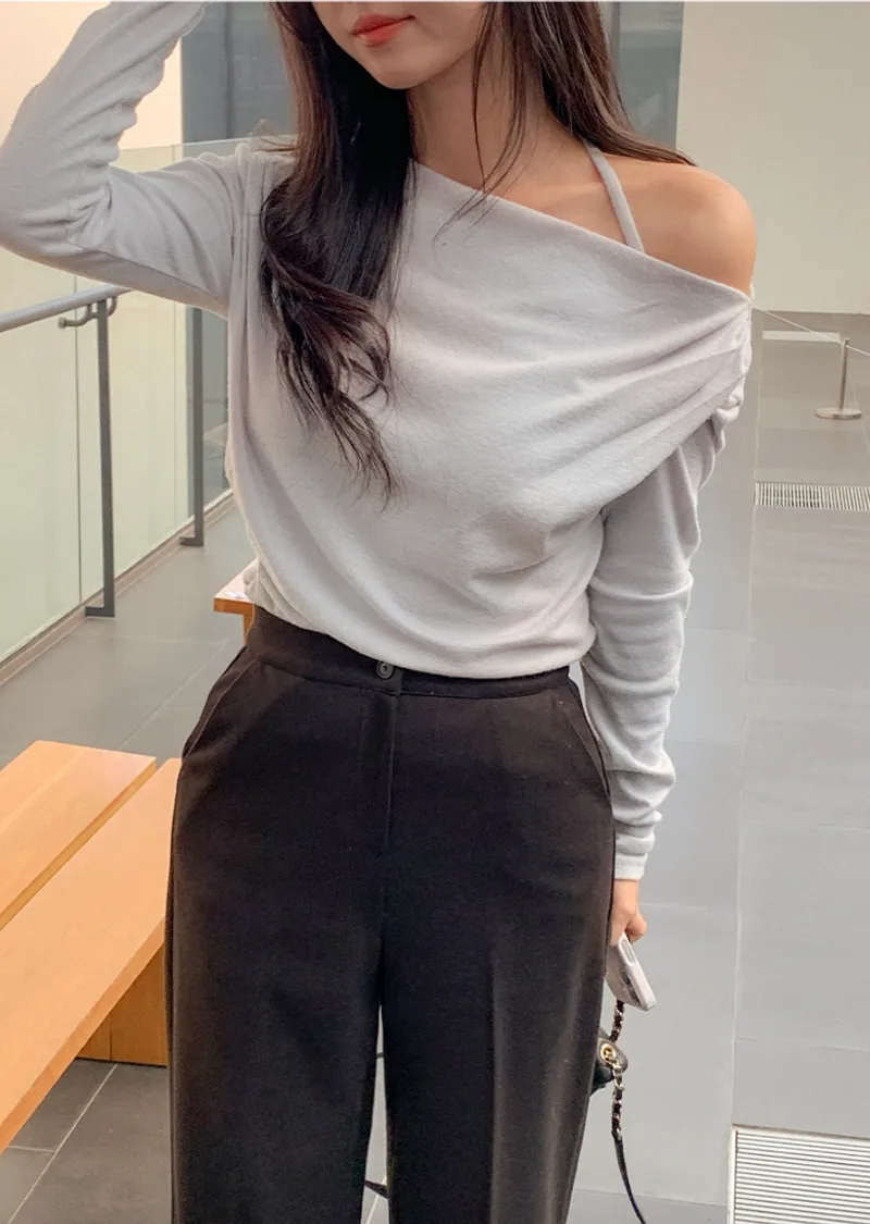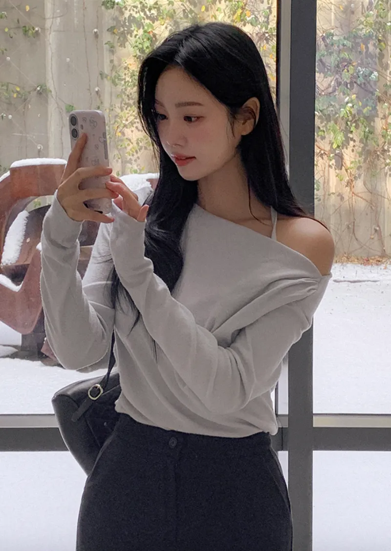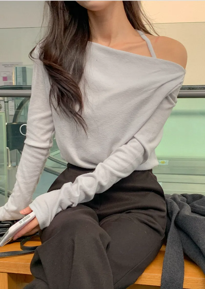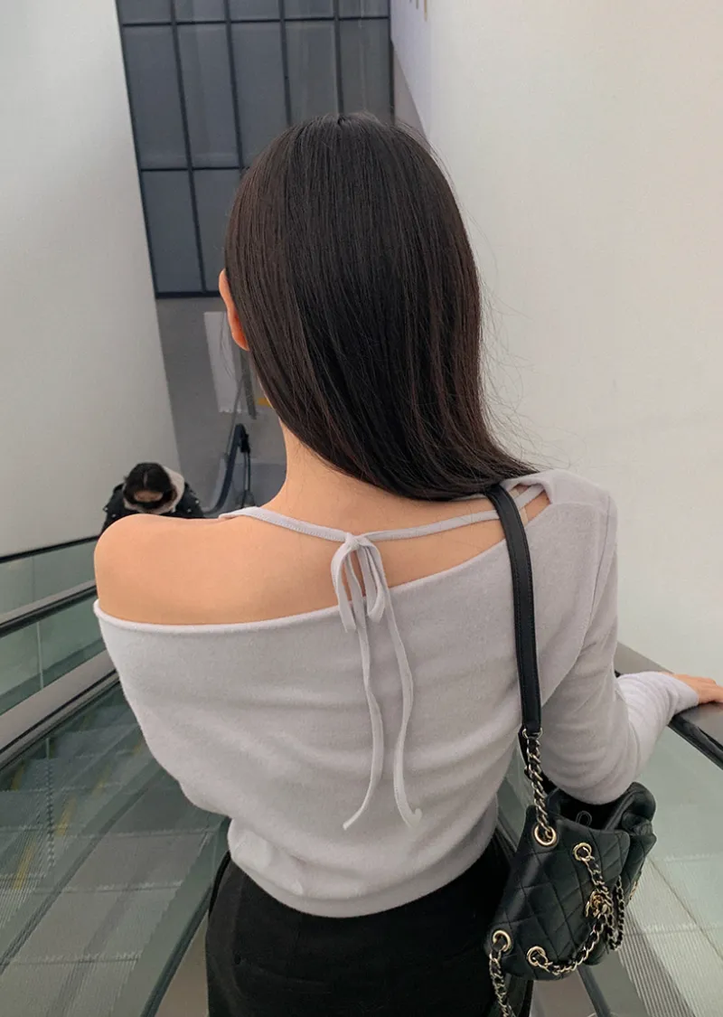 女性魅力的造型上衣。外層布料桃絨, 觸感柔軟溫暖, 氨綸混紡布料確保穿著舒適。 三穿設計,可打造船領、單肩和露肩三種造型,非常適合年末聚會和約會等各種場合。 頸部繫帶設計, 既能穩固肩部線條,也能增添女性氣質。 垂墜感十足的上衣,拓展了冬季穿搭風格, 從優雅時尚到清新甜美,應有盡有 :)