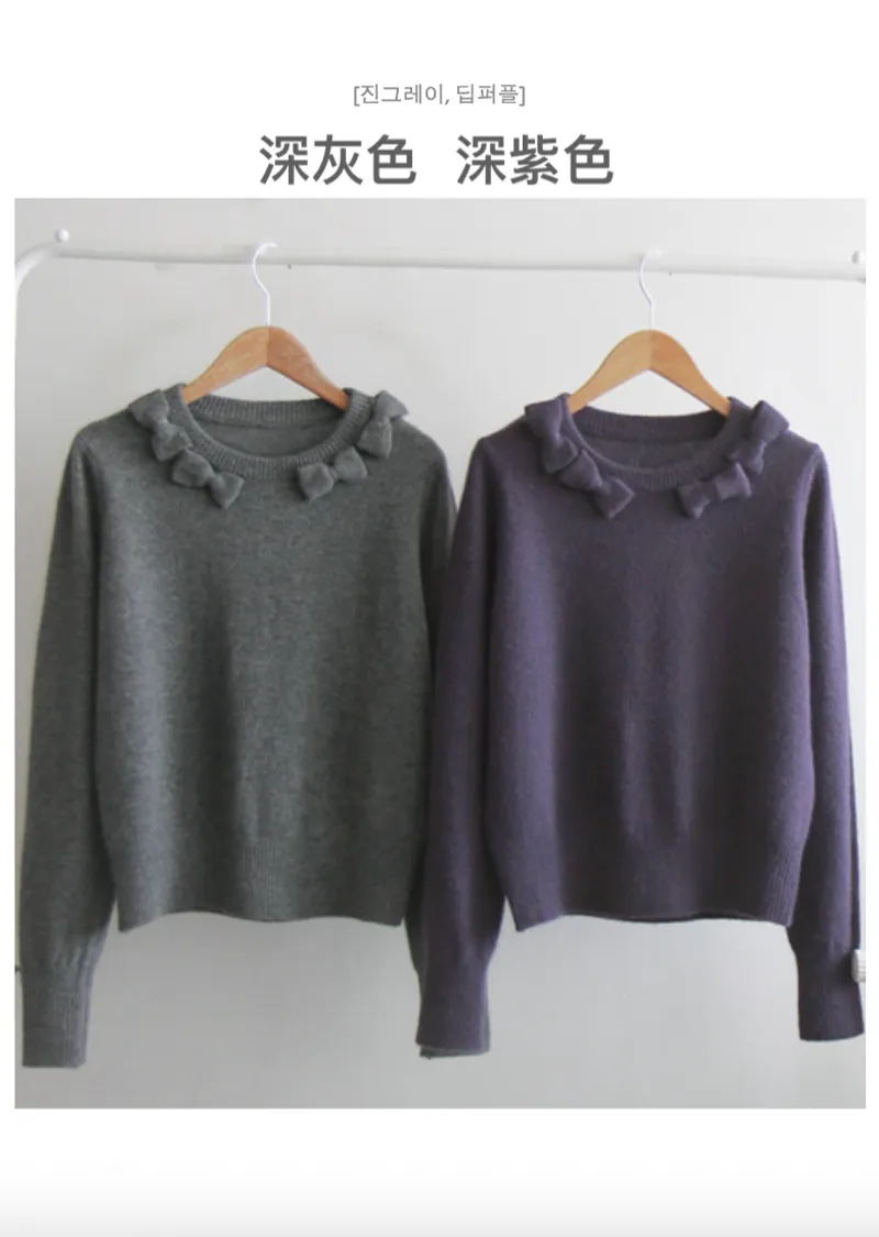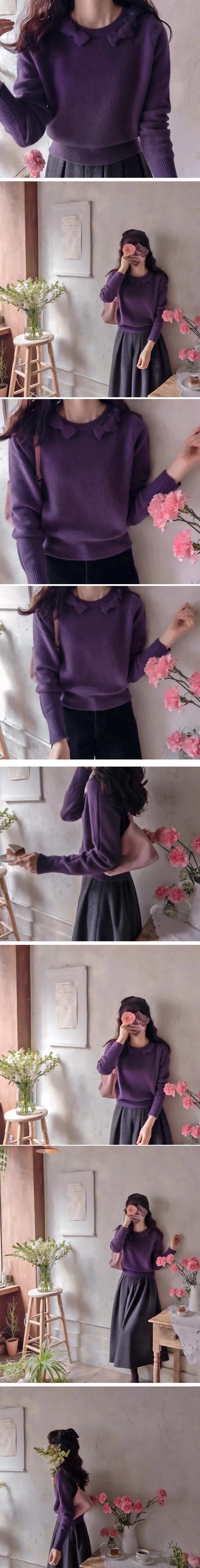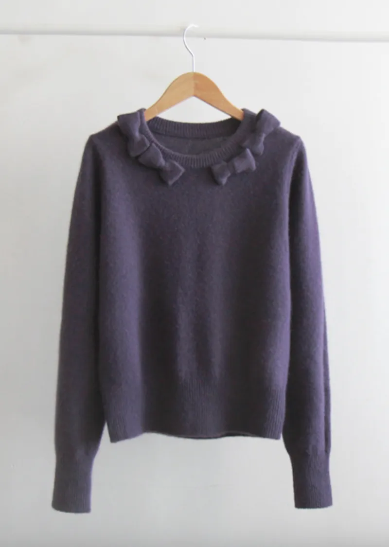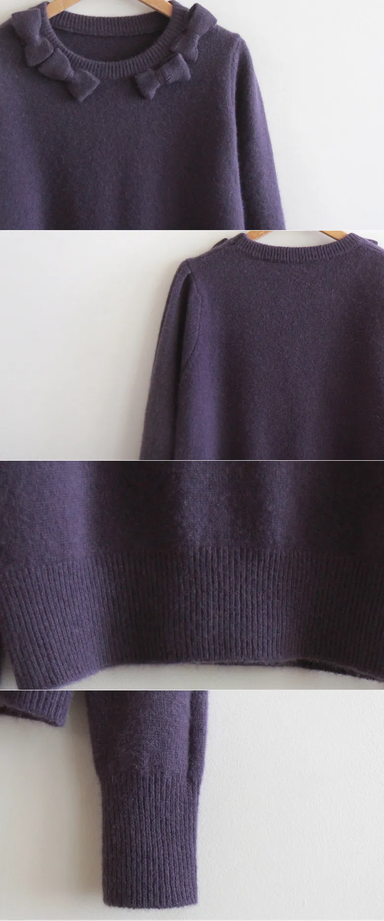 點綴領口立體蝴蝶結裝飾優雅針織上衣