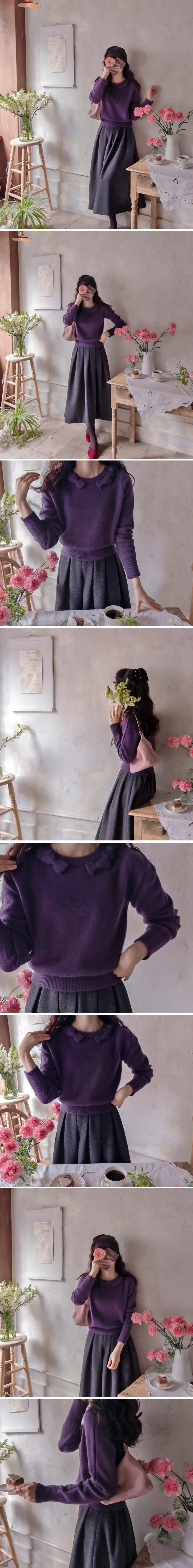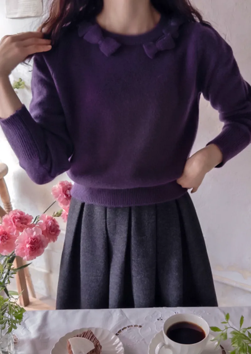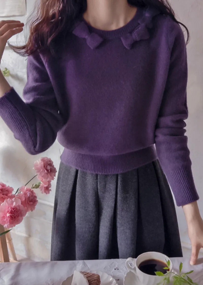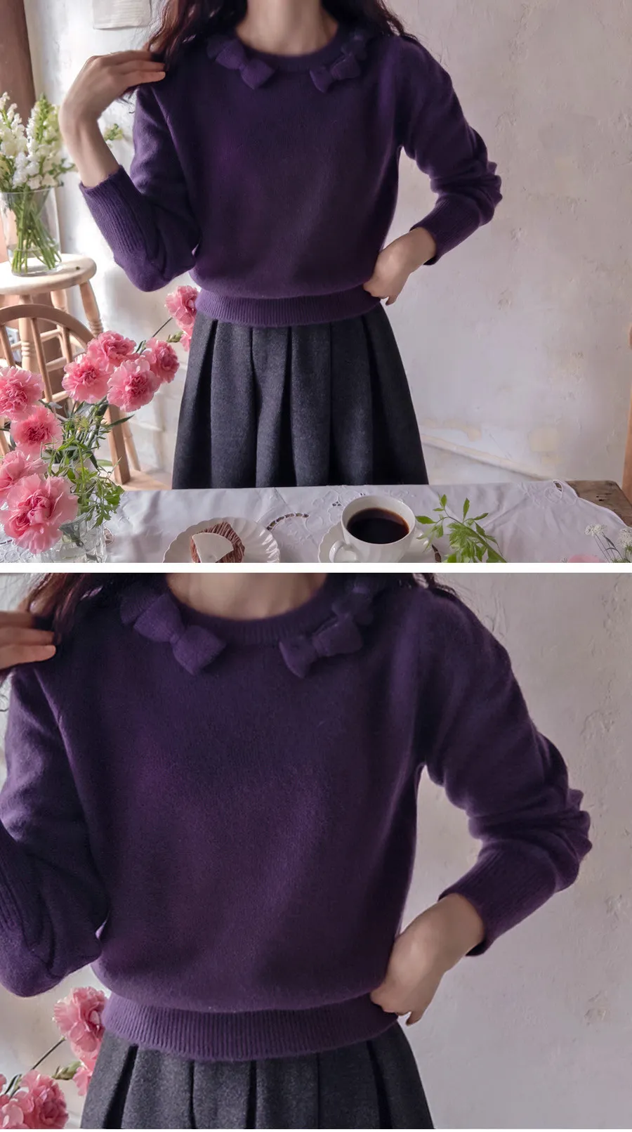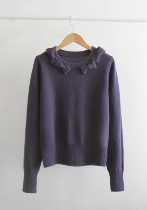 點綴領口立體蝴蝶結裝飾優雅針織上衣