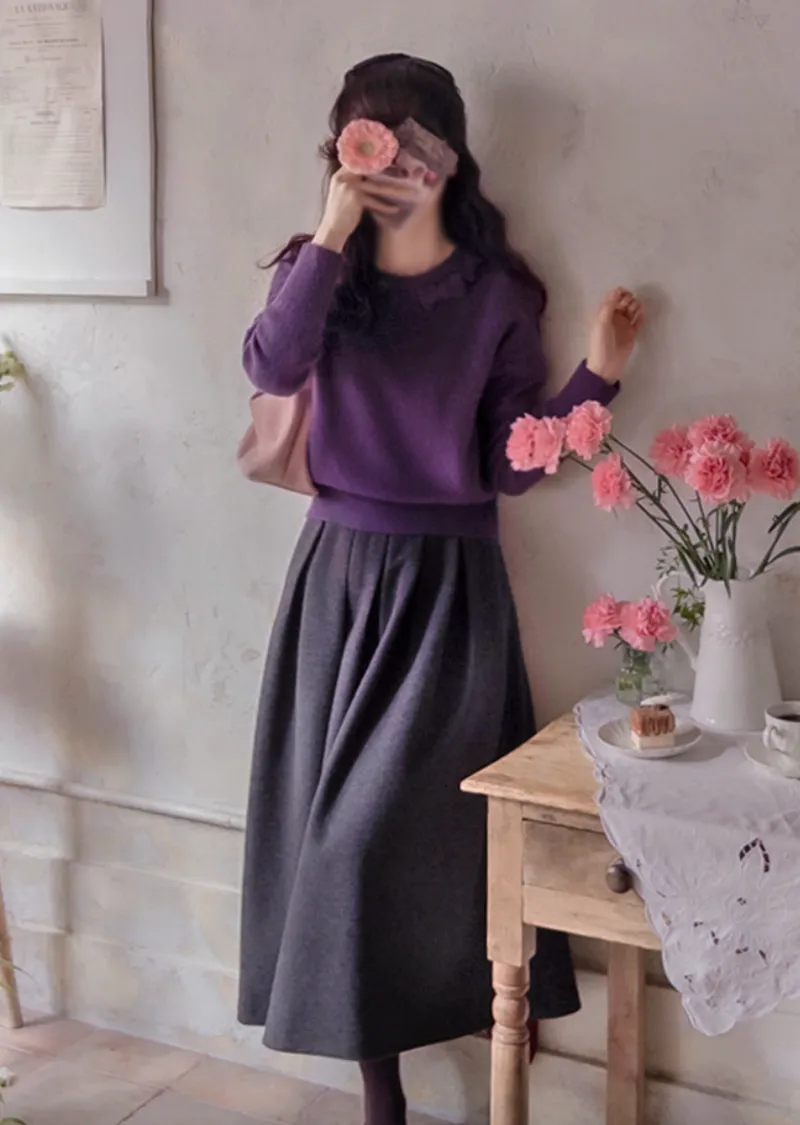 【高品質布料,保暖性極佳】【柔軟舒適,彈性十足的保暖針織衫】【領口飾以緞帶,盡顯優雅氣質】【優雅設計,日常穿著的理想之選】【奢華又可愛的針織衫】