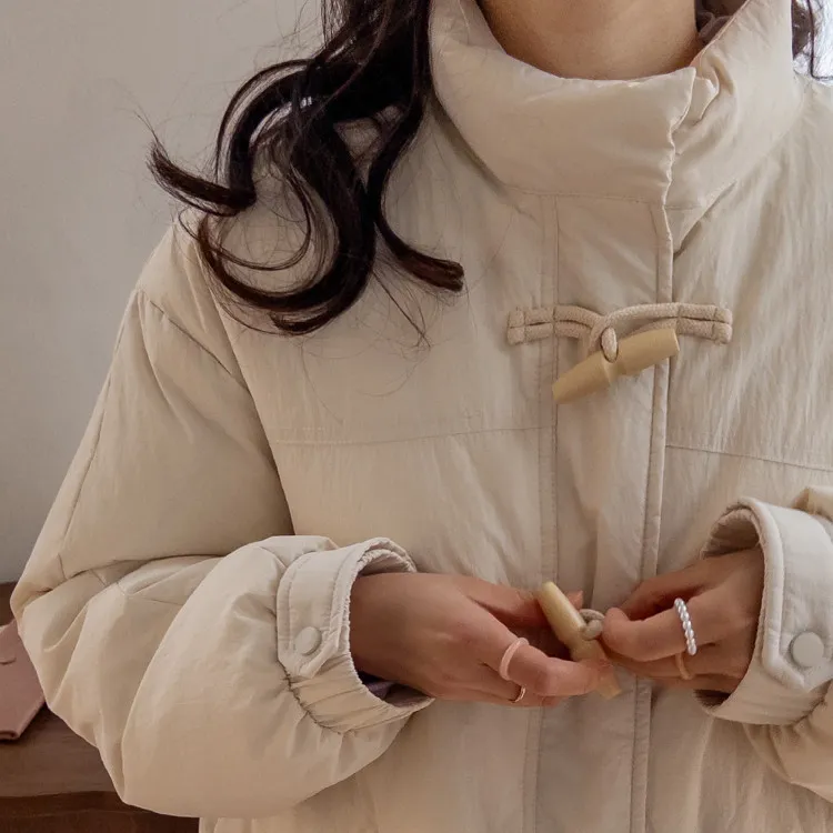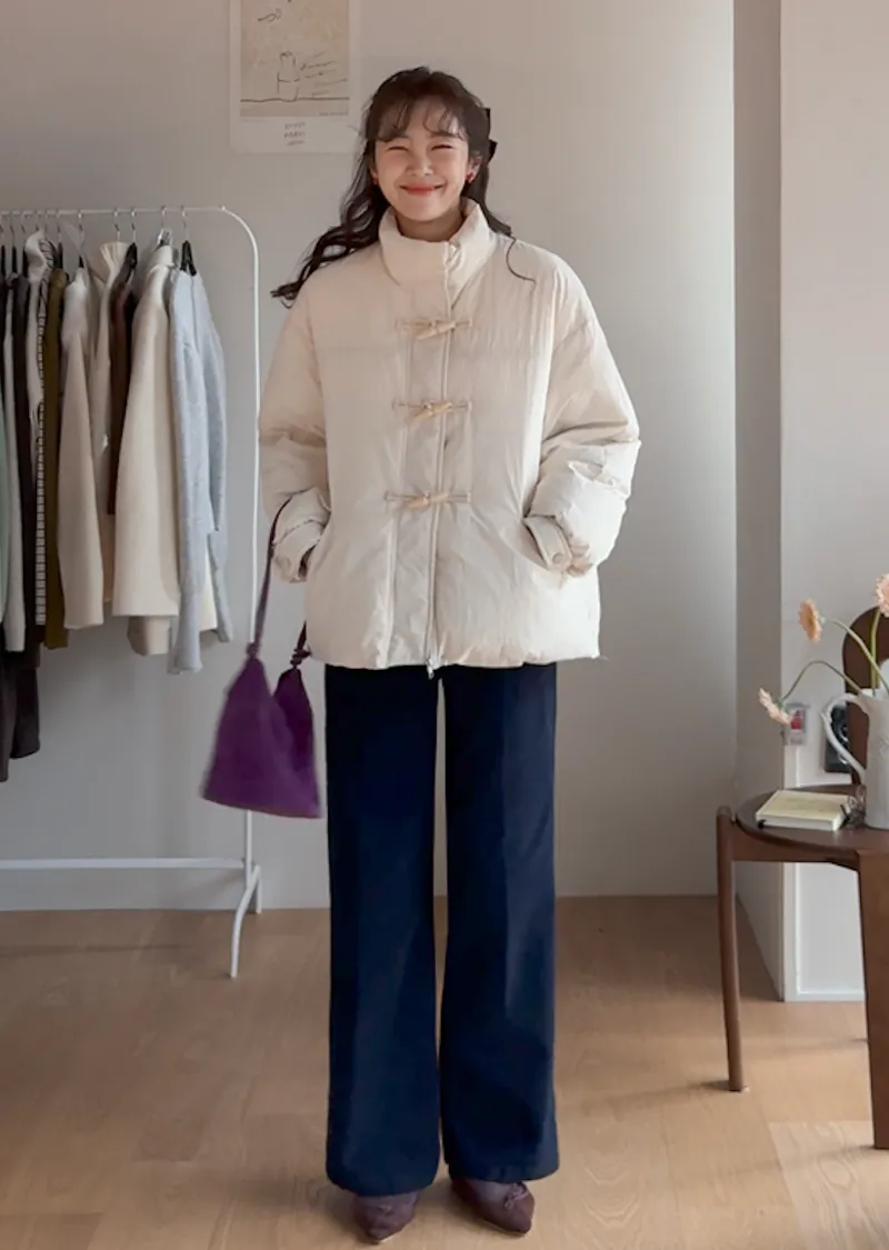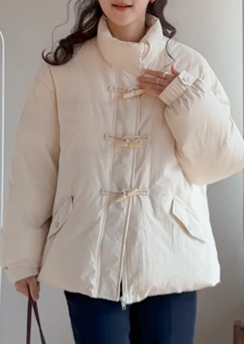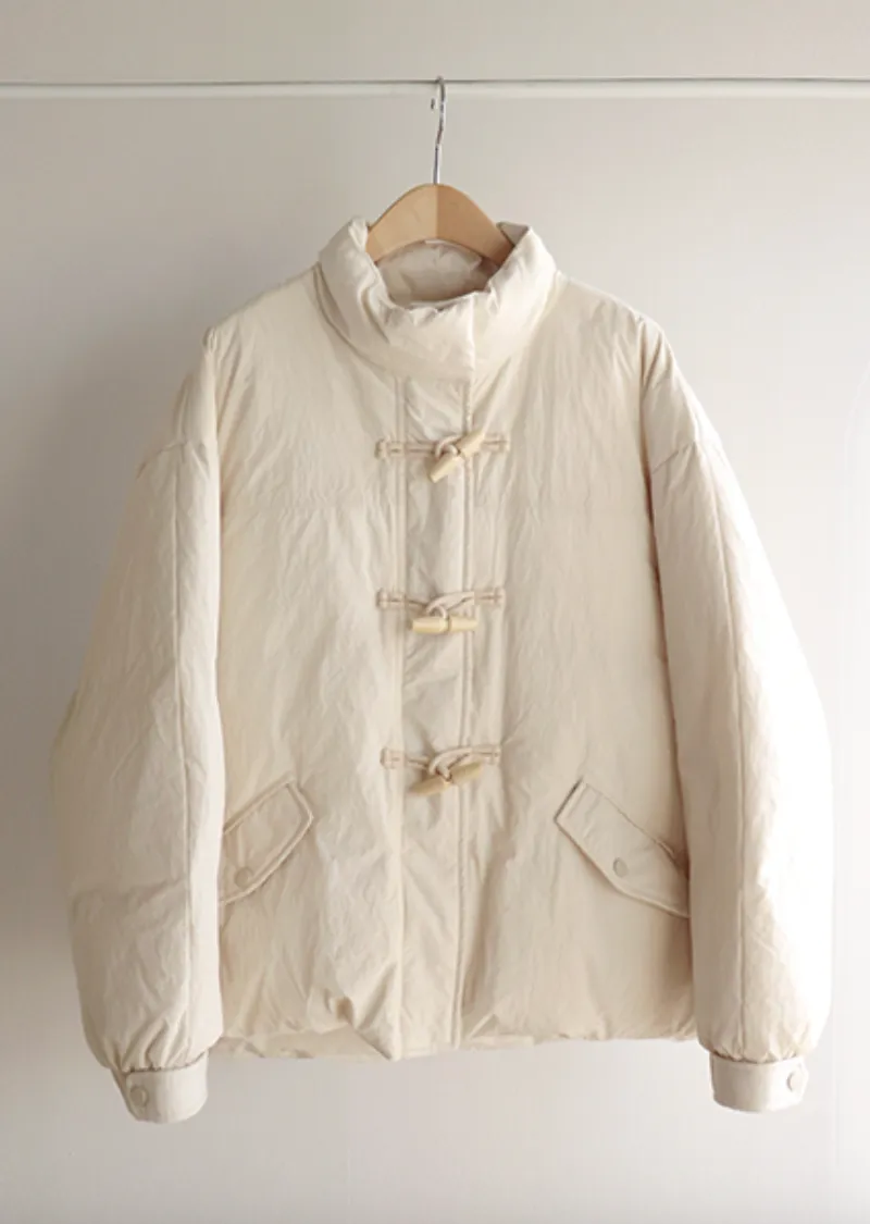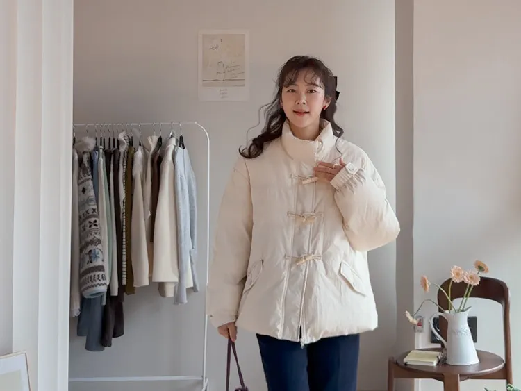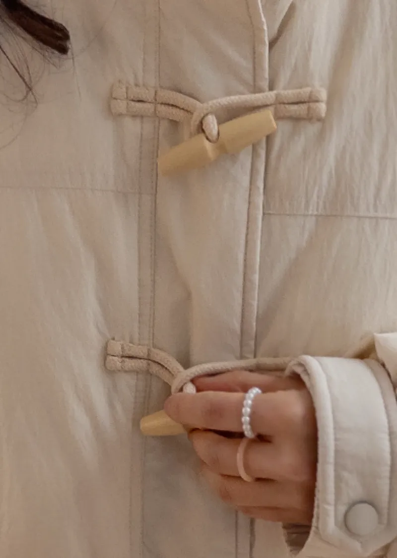 可愛氛圍保暖絨襯舒適角扣外套 乳白色穿搭照