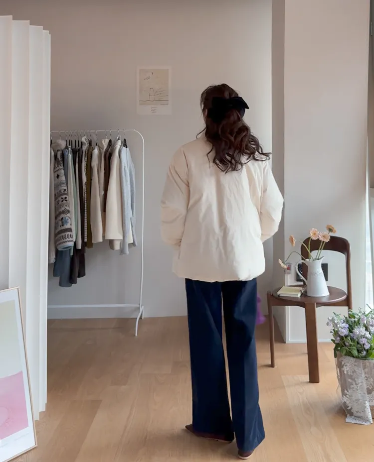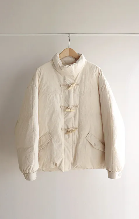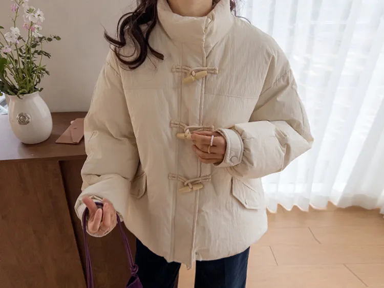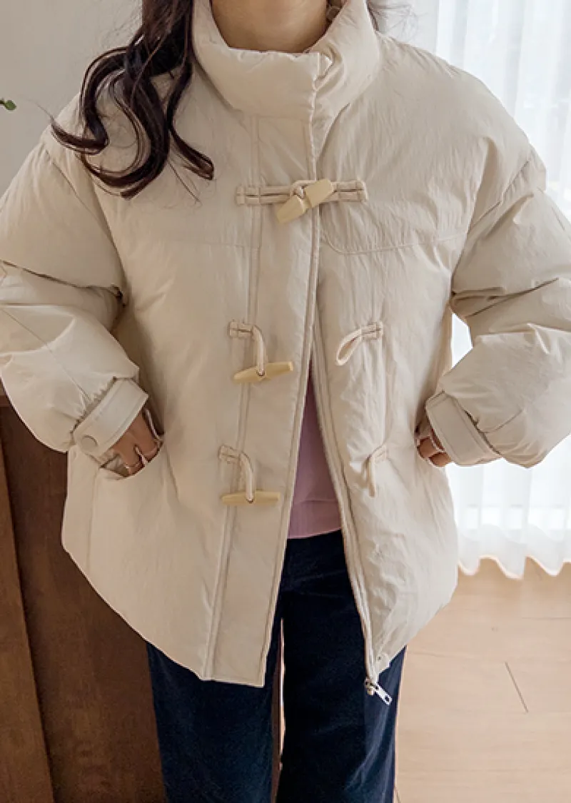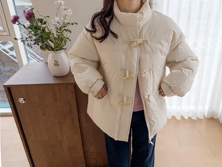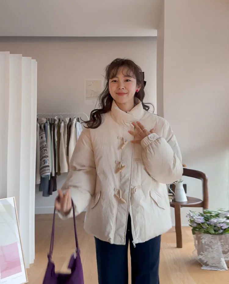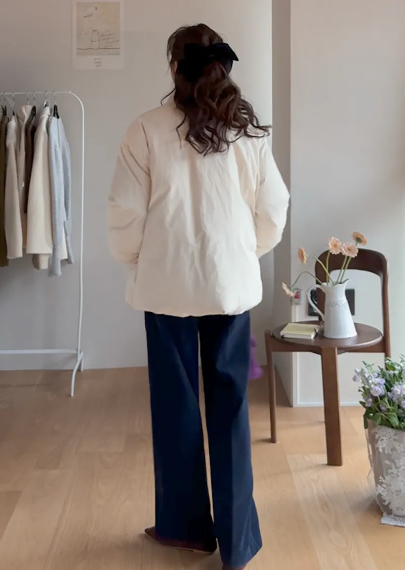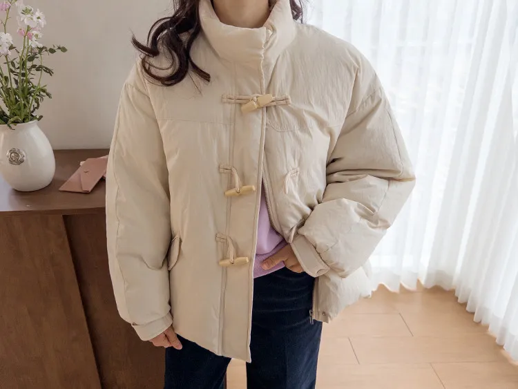 可愛氛圍保暖絨襯舒適角扣外套 乳白色穿搭照