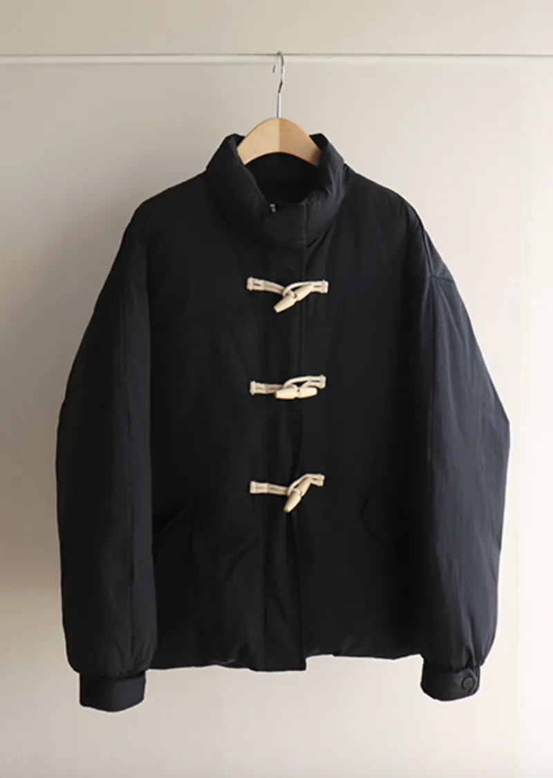可愛氛圍保暖絨襯舒適角扣外套 黑色穿搭照