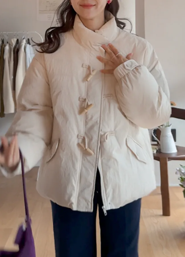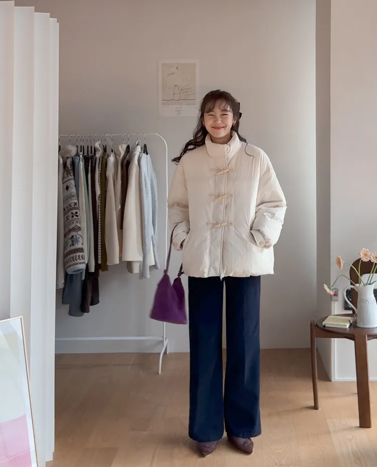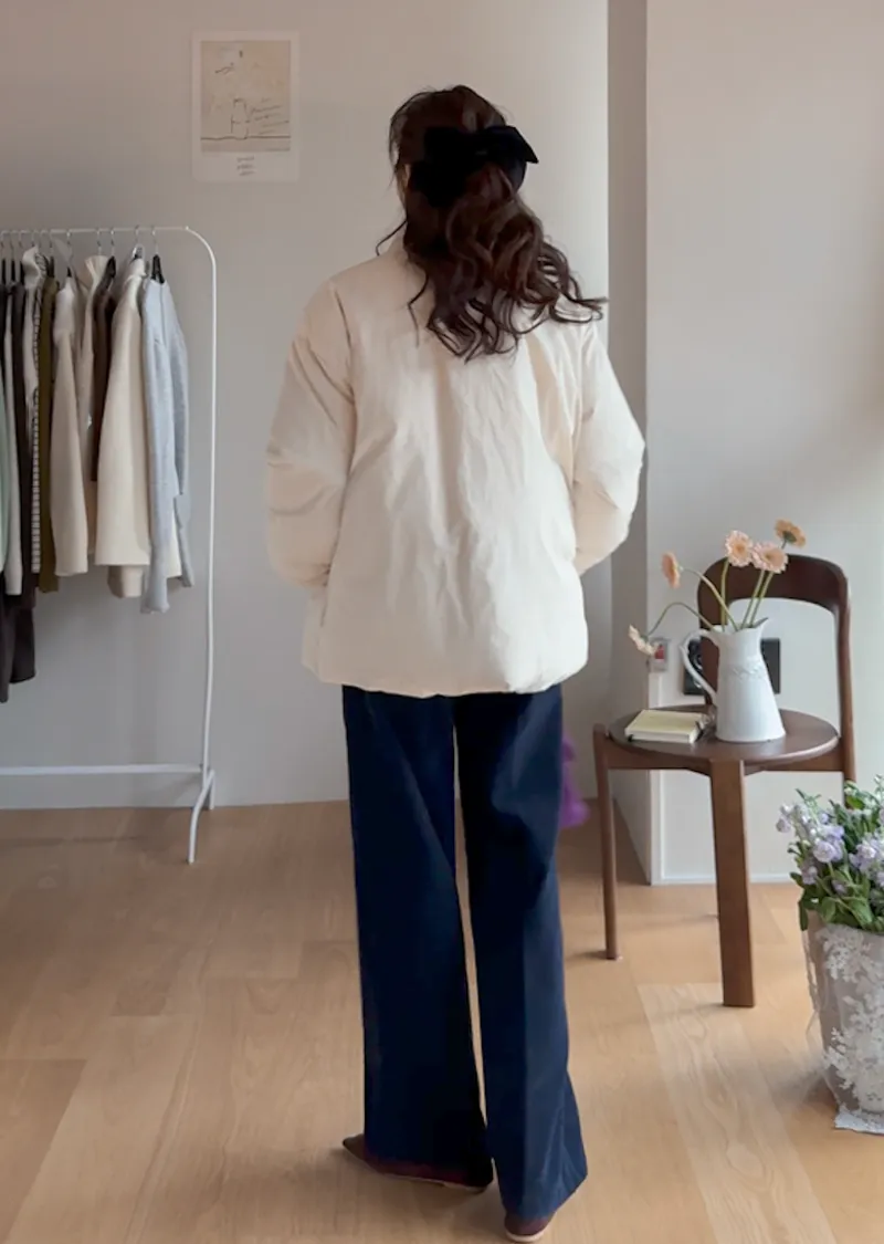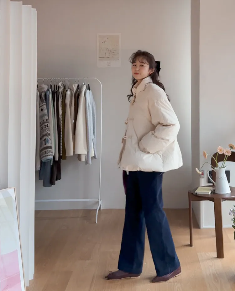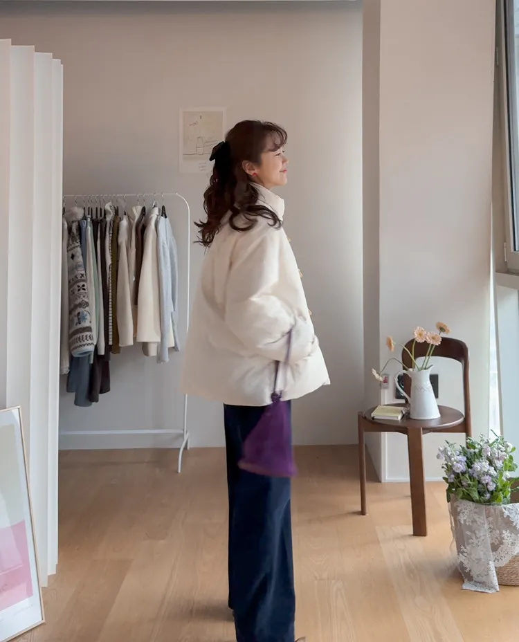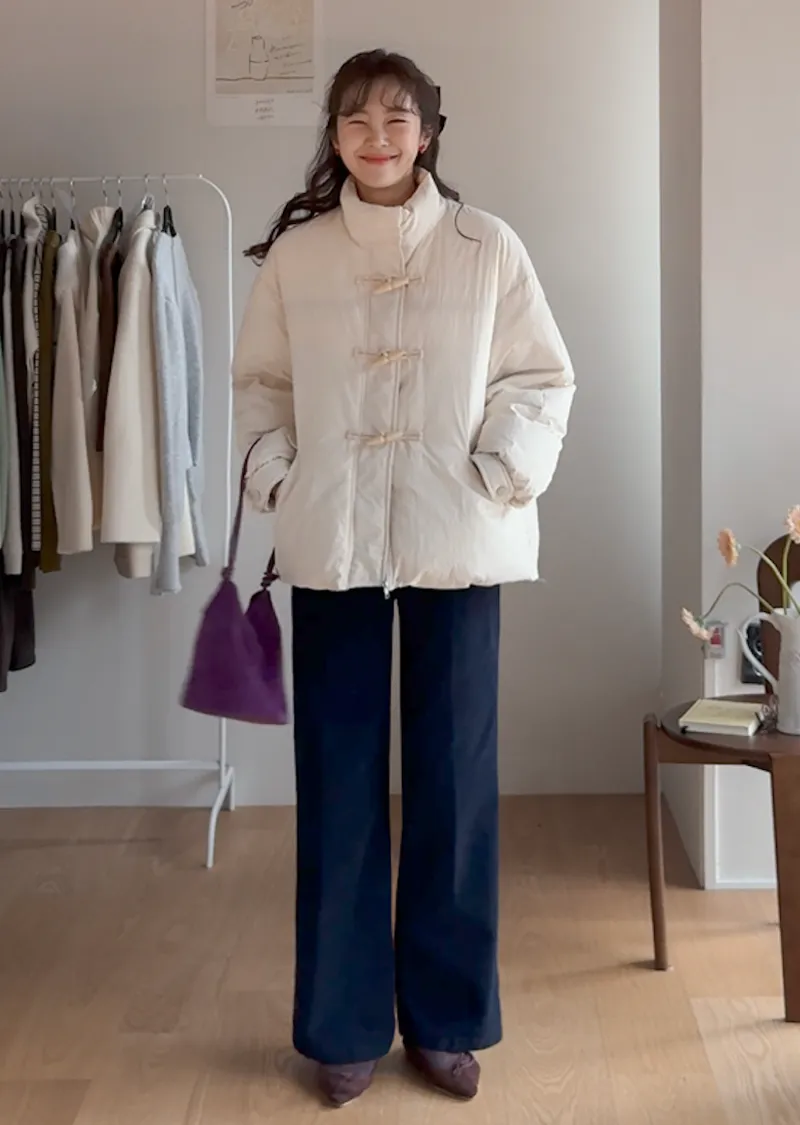 可愛氛圍保暖絨襯舒適角扣外套 乳白色穿搭照